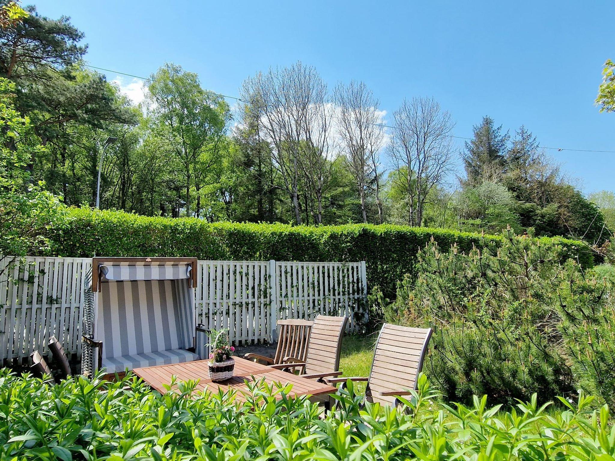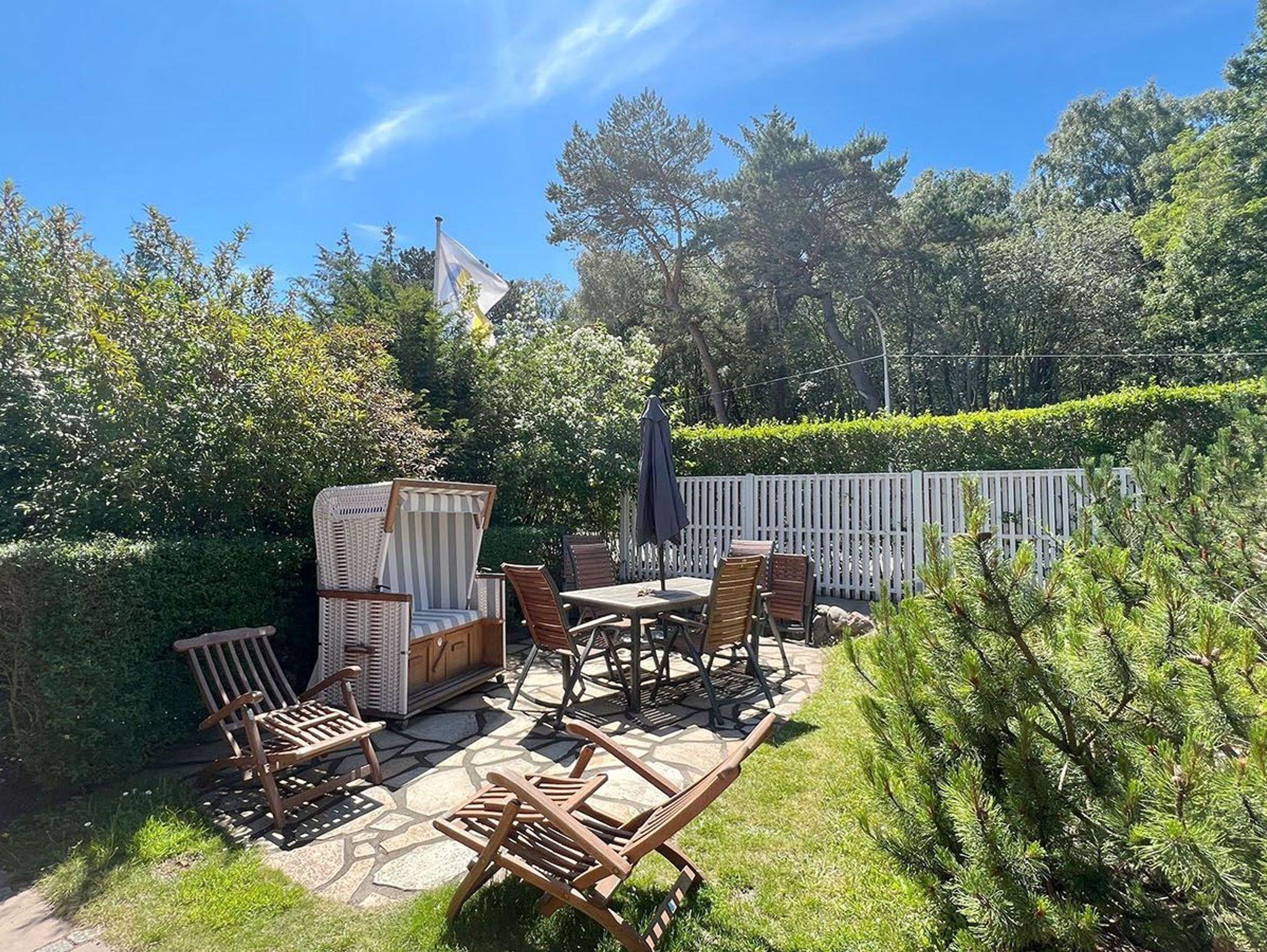 Die 135 qm teilen sich wie folgt auf: Erdgeschoß: Eingangsdiele mit Garderobe, großzügiges Wohnzimmer, Schafzimmer mit Doppelbett und Sekretär, separate Küche, Esszimmer, Duschbad. Obergeschoss: 1 Schlafzimmer mit Doppelbett, 1 Schlafzimmer mit 2 Einzelbetten, Wohndiele, Duschbad. Terrasse mit Gartenmöbeln und Strandkorb, Stellplatz