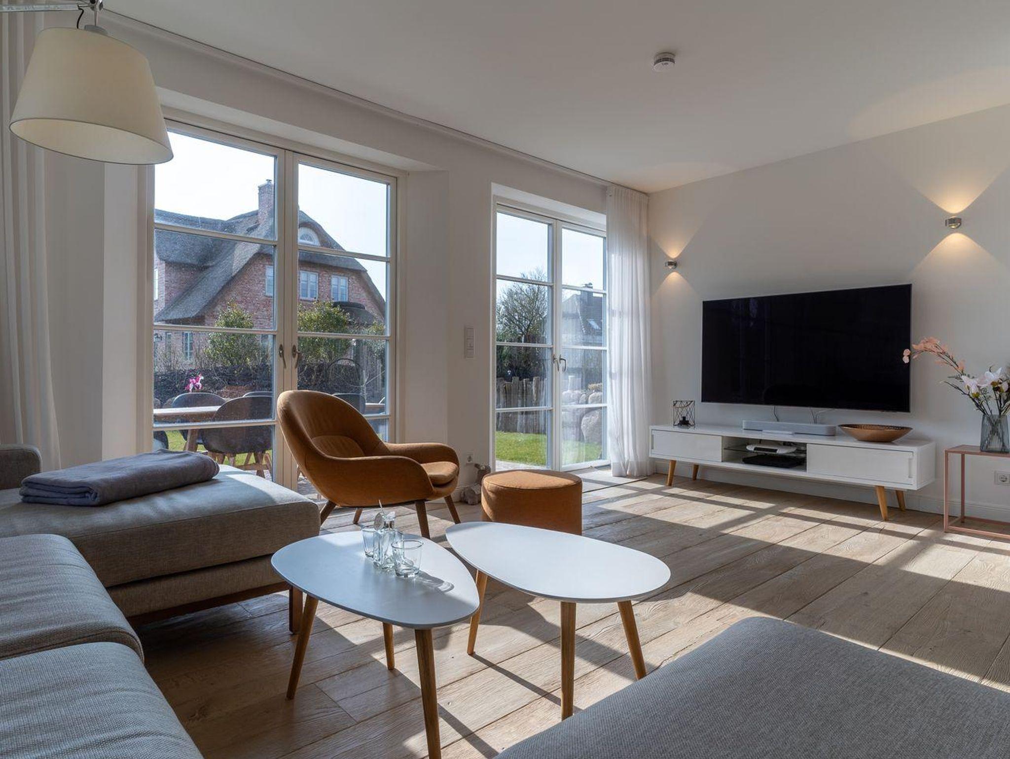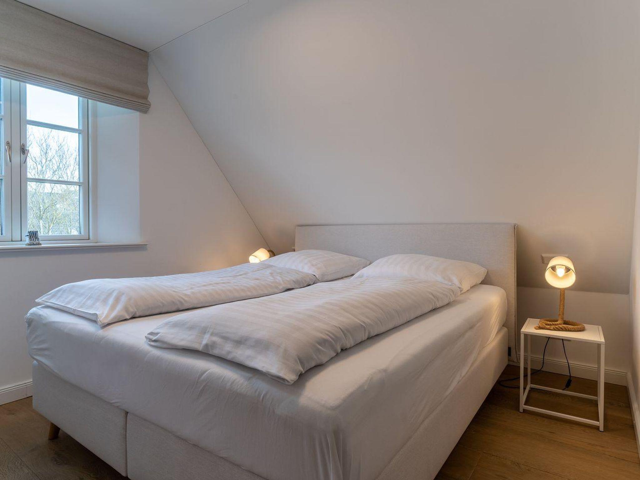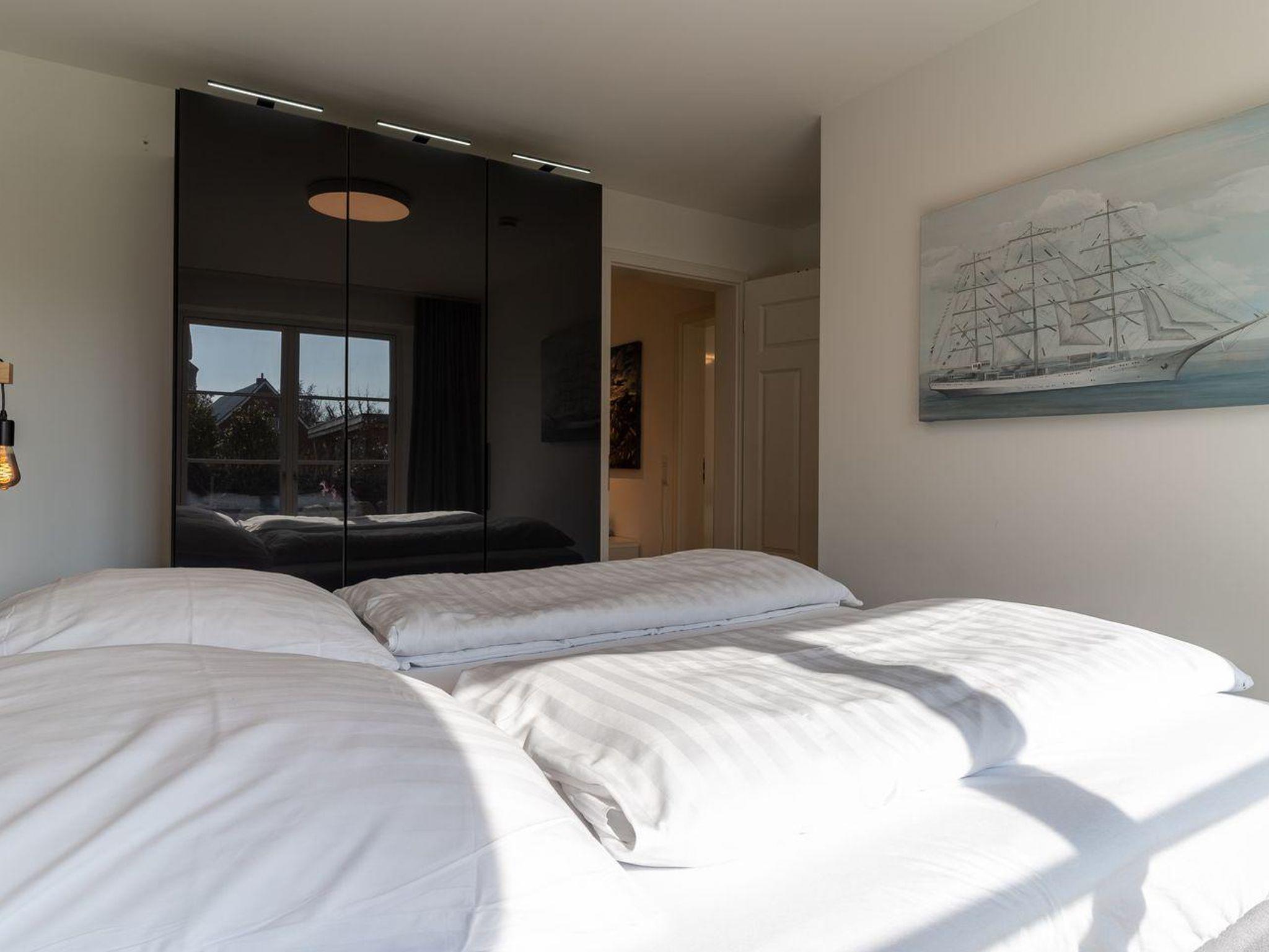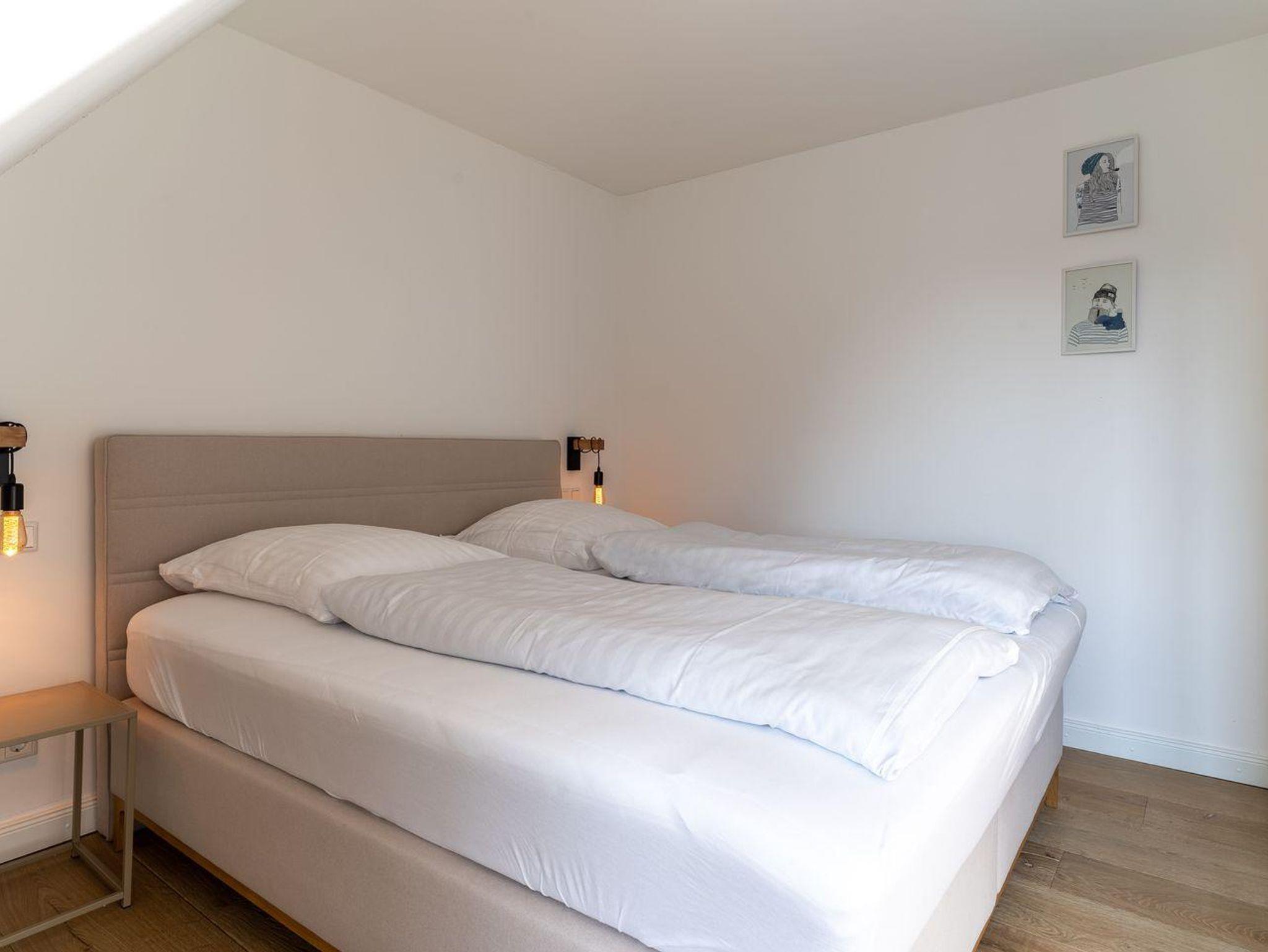 Diese wunderschöne Haushälfte verfügt über ca. 130 m² Wohnfläche und bietet Platz für 6 Personen. Im Erdgeschoss befindet sich der lichtdurchflutete Wohnraum mit TV, Kamin, einer offenen Küche sowie einem stilvollen Essbereich. Die Küche verfügt über hochwertige Elektrogeräte. Über einen ebenerdigen Zugang gelangen Sie vom Wohnraum aus auf die Terrasse mit Gartenmöbeln. Abends erholen Sie sich in einem der drei Schlafzimmer mit Doppelbetten (180x200cm) und Kleiderschränken. In einem der Schlafzimmer befindet sich ein kleiner Arbeitsplatz. Zudem stehen Ihnen gleich zwei Bäder zur Verfügung. Ein Vollbad im Obergeschoss mit ebenerdiger Regendusche und Innensauna sowie ein weiteres Bad mit ebenerdiger Dusche im Erdgeschoss. Im Hauswirtschaftsraum befinden sich eine Waschmaschine und ein Wäschetrockner.