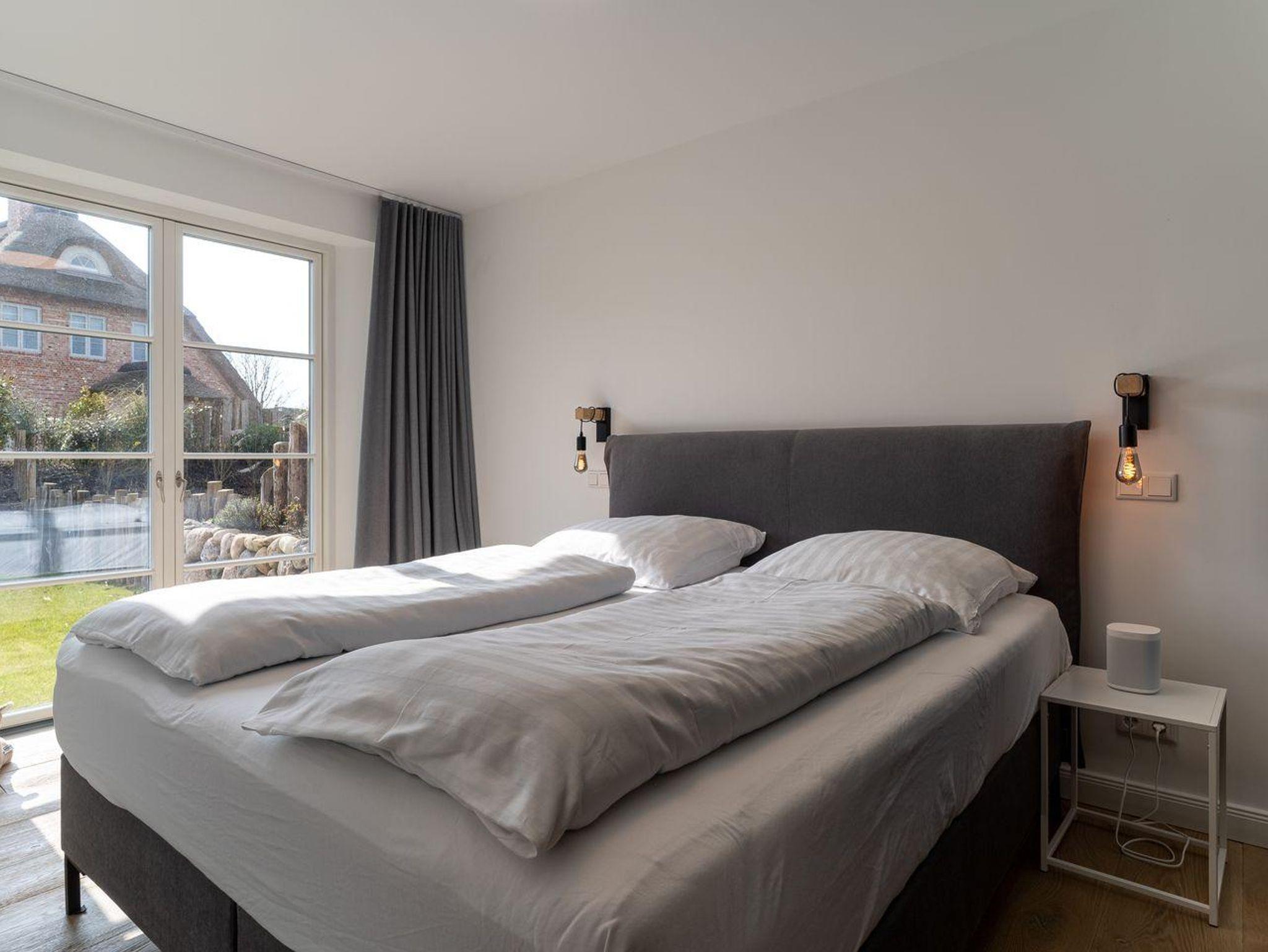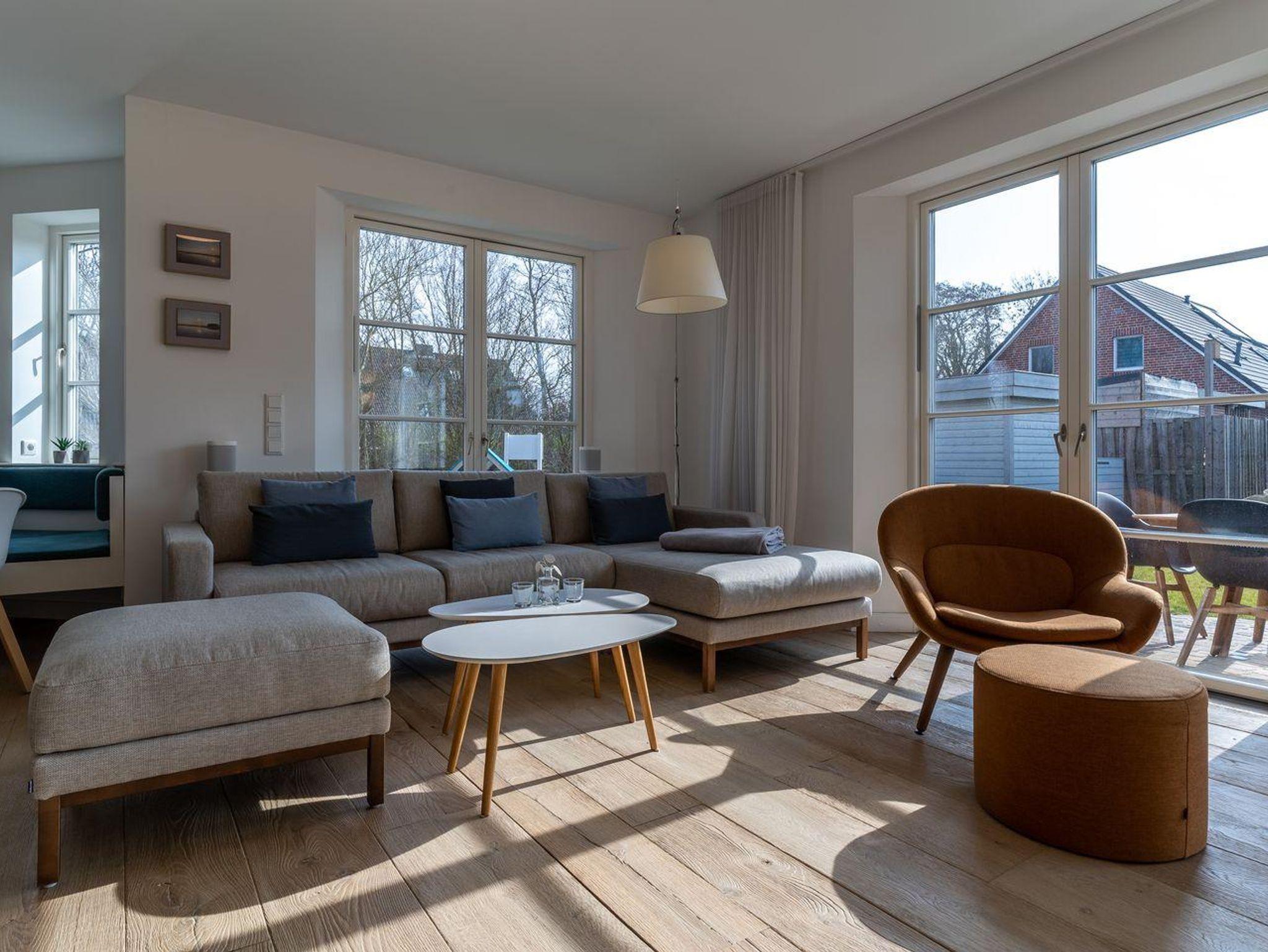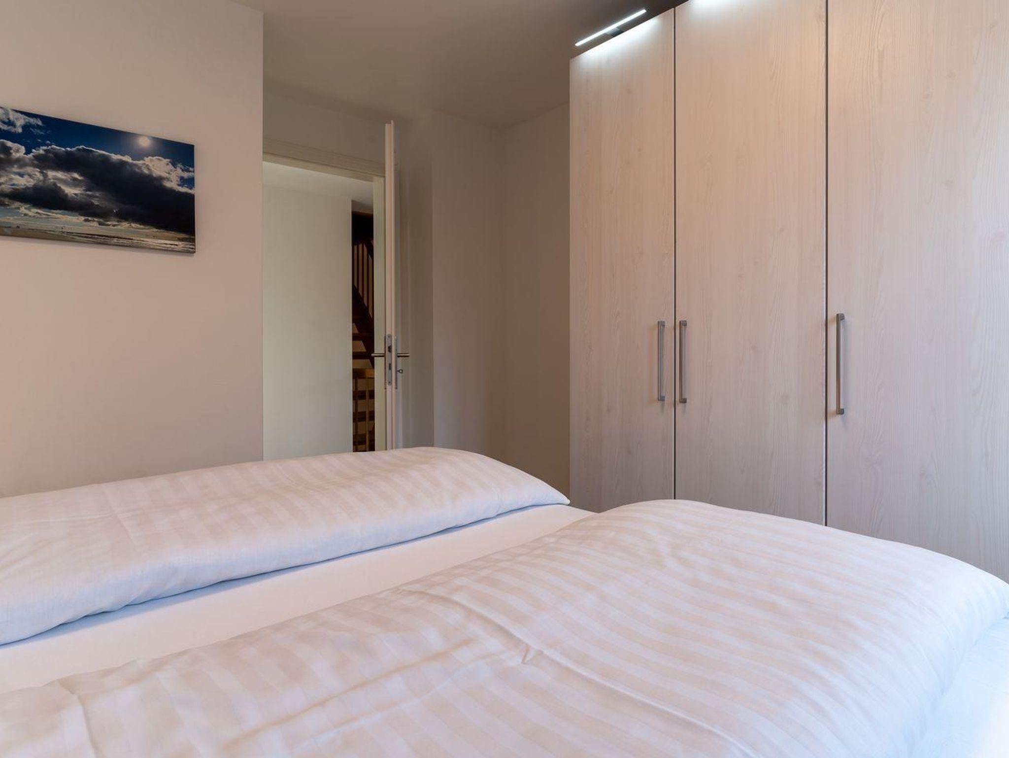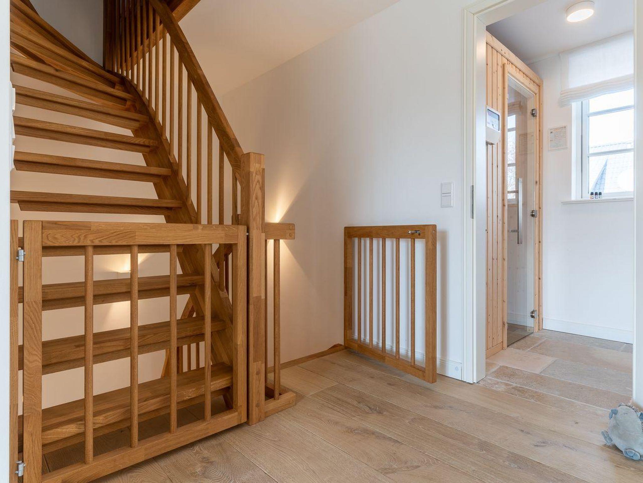 Diese wunderschöne Haushälfte verfügt über ca. 130 m² Wohnfläche und bietet Platz für 6 Personen. Im Erdgeschoss befindet sich der lichtdurchflutete Wohnraum mit TV, Kamin, einer offenen Küche sowie einem stilvollen Essbereich. Die Küche verfügt über hochwertige Elektrogeräte. Über einen ebenerdigen Zugang gelangen Sie vom Wohnraum aus auf die Terrasse mit Gartenmöbeln. Abends erholen Sie sich in einem der drei Schlafzimmer mit Doppelbetten (180x200cm) und Kleiderschränken. In einem der Schlafzimmer befindet sich ein kleiner Arbeitsplatz. Zudem stehen Ihnen gleich zwei Bäder zur Verfügung. Ein Vollbad im Obergeschoss mit ebenerdiger Regendusche und Innensauna sowie ein weiteres Bad mit ebenerdiger Dusche im Erdgeschoss. Im Hauswirtschaftsraum befinden sich eine Waschmaschine und ein Wäschetrockner.
