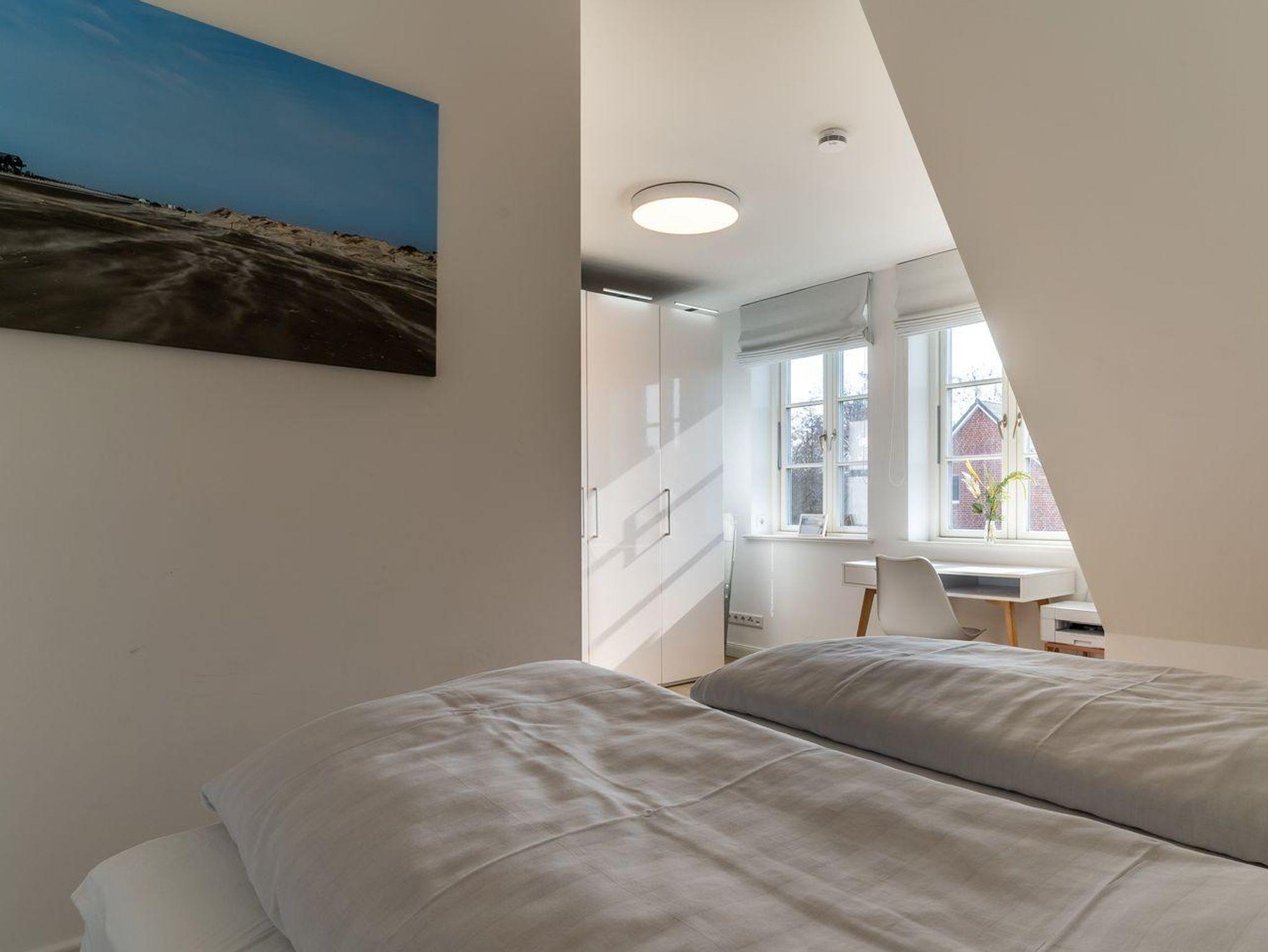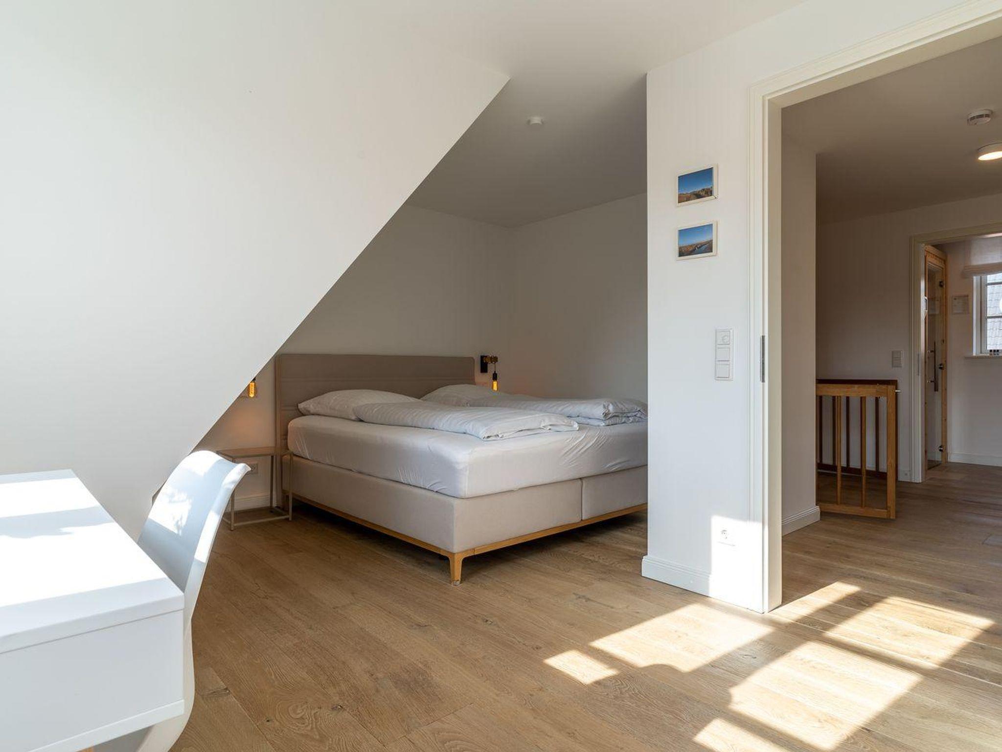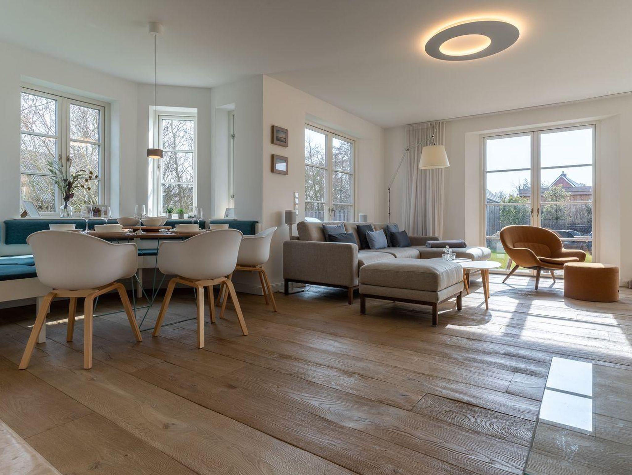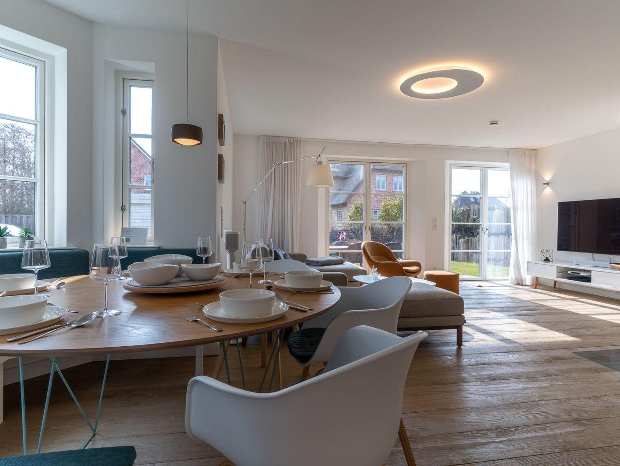 Diese wunderschöne Haushälfte verfügt über ca. 130 m² Wohnfläche und bietet Platz für 6 Personen. Im Erdgeschoss befindet sich der lichtdurchflutete Wohnraum mit TV, Kamin, einer offenen Küche sowie einem stilvollen Essbereich. Die Küche verfügt über hochwertige Elektrogeräte. Über einen ebenerdigen Zugang gelangen Sie vom Wohnraum aus auf die Terrasse mit Gartenmöbeln. Abends erholen Sie sich in einem der drei Schlafzimmer mit Doppelbetten (180x200cm) und Kleiderschränken. In einem der Schlafzimmer befindet sich ein kleiner Arbeitsplatz. Zudem stehen Ihnen gleich zwei Bäder zur Verfügung. Ein Vollbad im Obergeschoss mit ebenerdiger Regendusche und Innensauna sowie ein weiteres Bad mit ebenerdiger Dusche im Erdgeschoss. Im Hauswirtschaftsraum befinden sich eine Waschmaschine und ein Wäschetrockner.