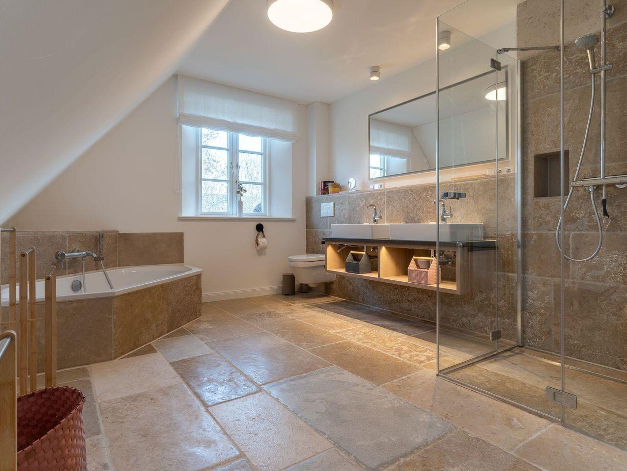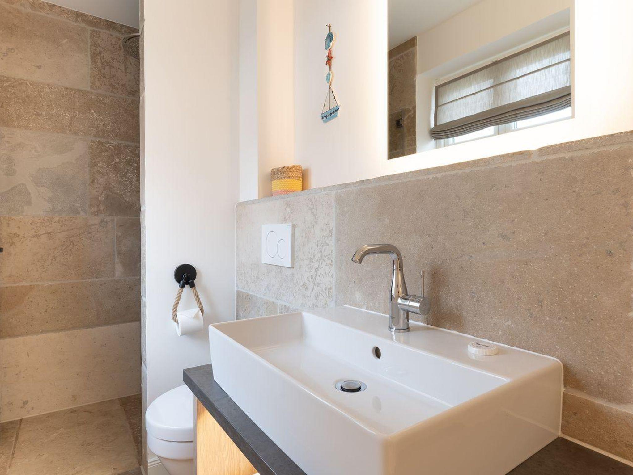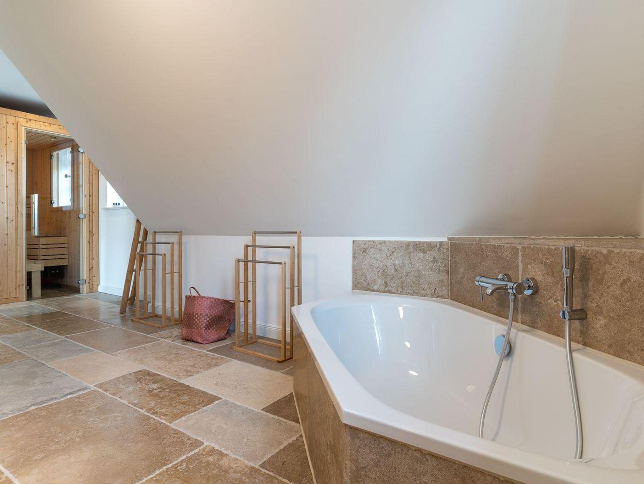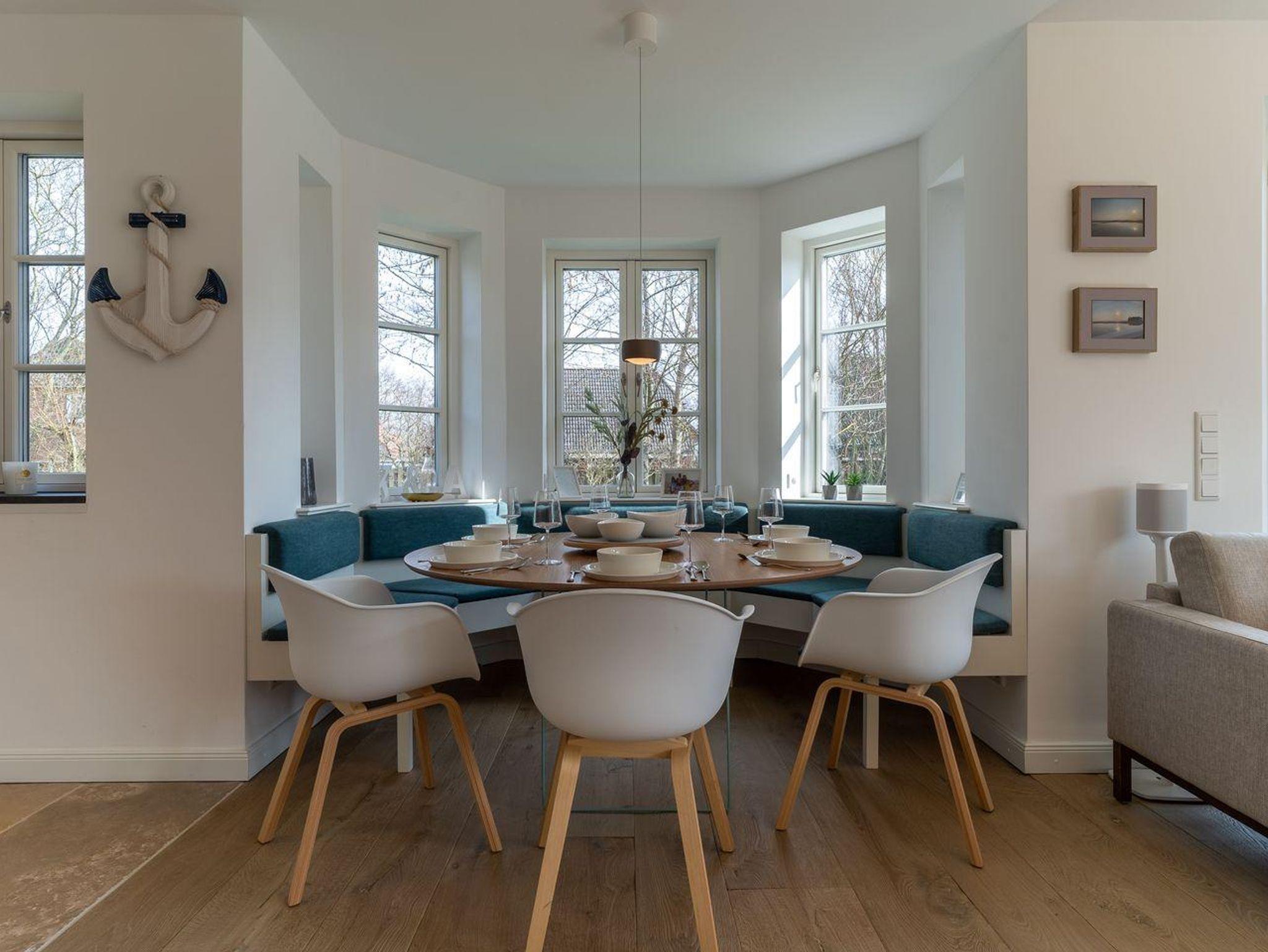 Diese wunderschöne Haushälfte verfügt über ca. 130 m² Wohnfläche und bietet Platz für 6 Personen. Im Erdgeschoss befindet sich der lichtdurchflutete Wohnraum mit TV, Kamin, einer offenen Küche sowie einem stilvollen Essbereich. Die Küche verfügt über hochwertige Elektrogeräte. Über einen ebenerdigen Zugang gelangen Sie vom Wohnraum aus auf die Terrasse mit Gartenmöbeln. Abends erholen Sie sich in einem der drei Schlafzimmer mit Doppelbetten (180x200cm) und Kleiderschränken. In einem der Schlafzimmer befindet sich ein kleiner Arbeitsplatz. Zudem stehen Ihnen gleich zwei Bäder zur Verfügung. Ein Vollbad im Obergeschoss mit ebenerdiger Regendusche und Innensauna sowie ein weiteres Bad mit ebenerdiger Dusche im Erdgeschoss. Im Hauswirtschaftsraum befinden sich eine Waschmaschine und ein Wäschetrockner.