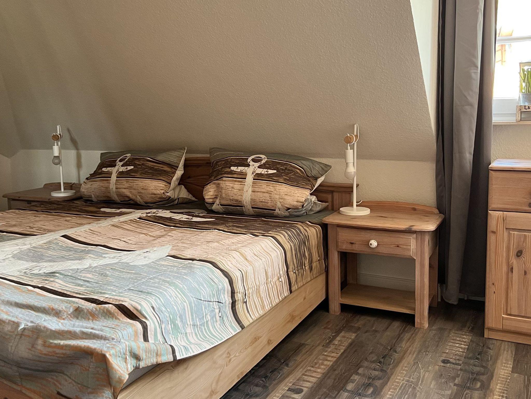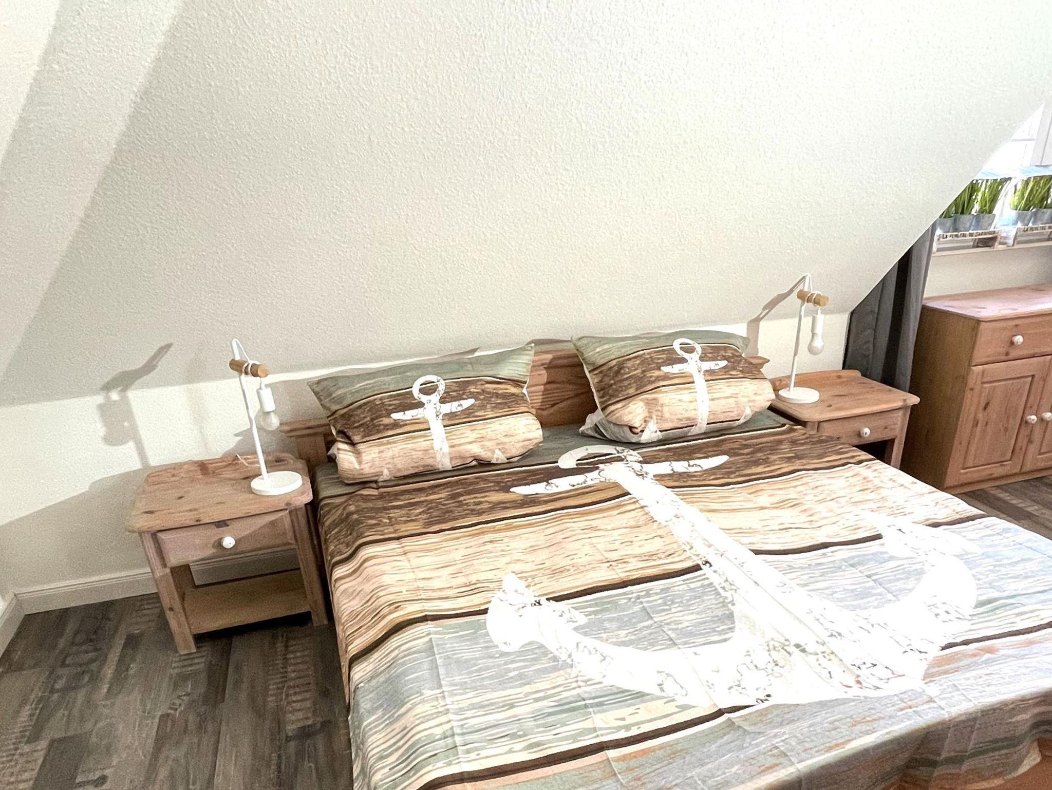 Ein gemütliches Schlafzimmer mit einem einladenden Doppelbett, perfekt für erholsame Nächte.