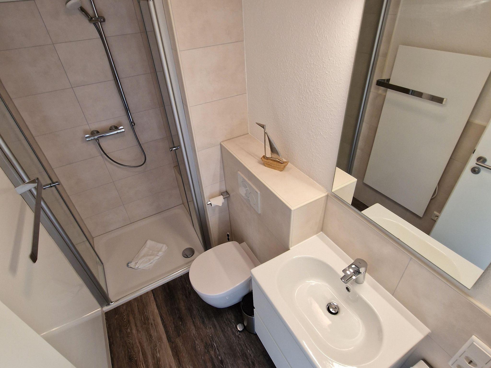 Bad: Dusche, Waschbecken, WC, Duschkabine