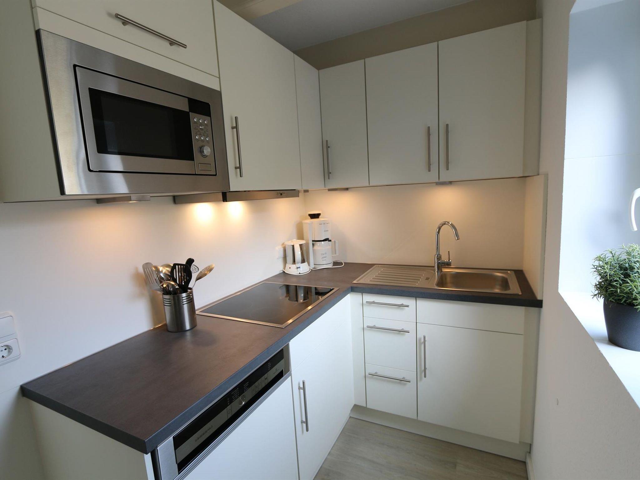 Küchenzeile (Kühlschrank, Mikrowelle, Kaffeemaschine, Wasserkocher)
