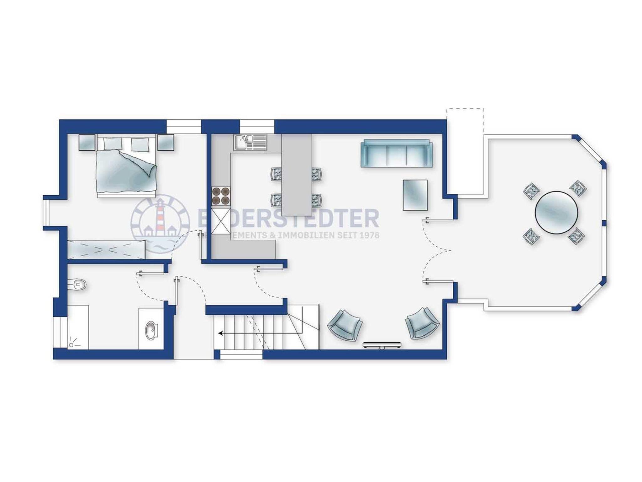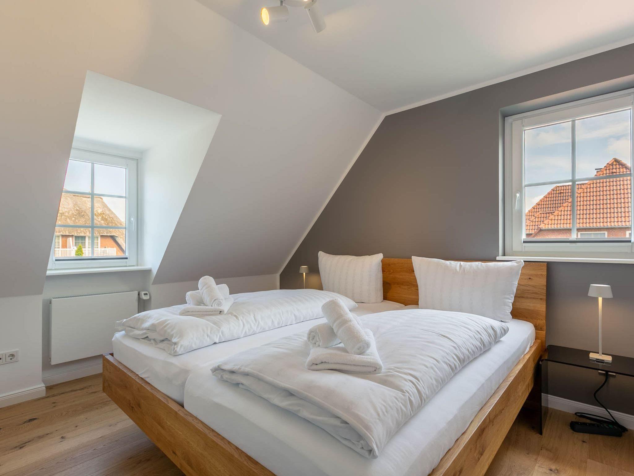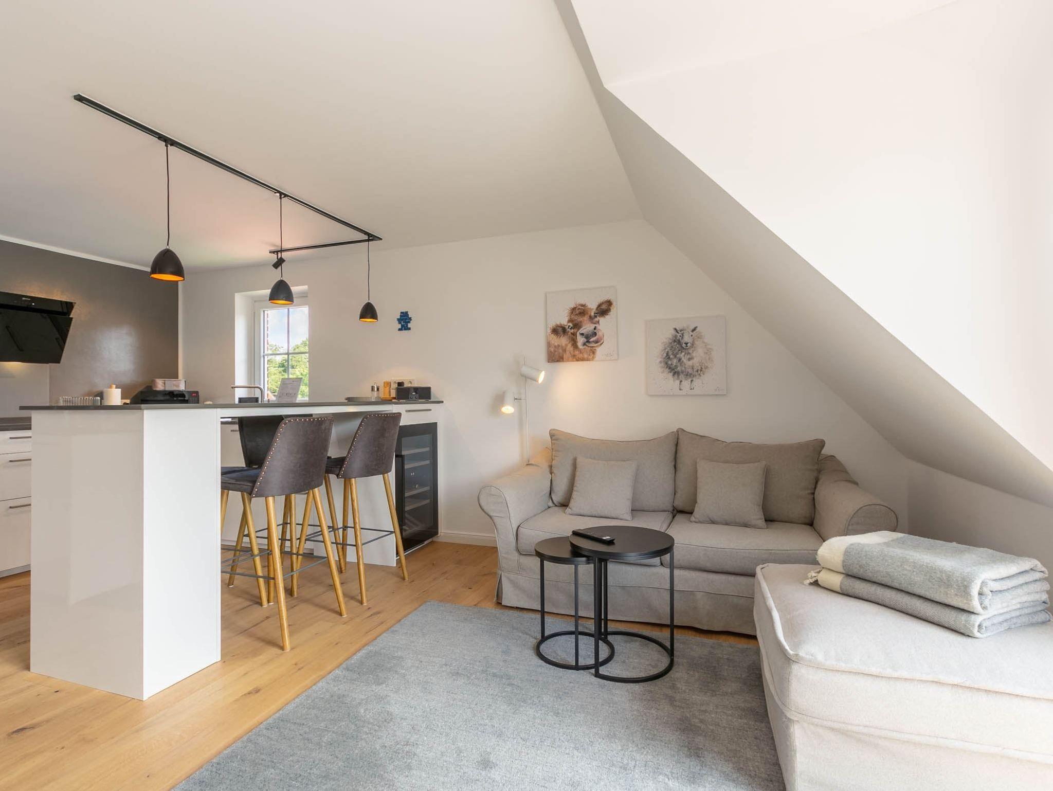 Exklusive 3-Zimmer-Ferienwohnung im Haus Theo Luise mit ca. 70 m² auf 2 Ebenen (OG, DG) für bis zu 5 Personen. In zentrumsnaher Lage im Ortsteil Dorf in St. Peter-Ording. Die Einkaufsstraße des Ortsteils mit allen Restaurants und Geschäften ist nur wenige Schritte zu Fuß entfernt. Dieses Domizil wurde besonders hochwertig und geschmackvoll eingerichtet. Ideal für Familien, die sich im Urlaub verwöhnen möchten. Hunde sind herzlich willkommen