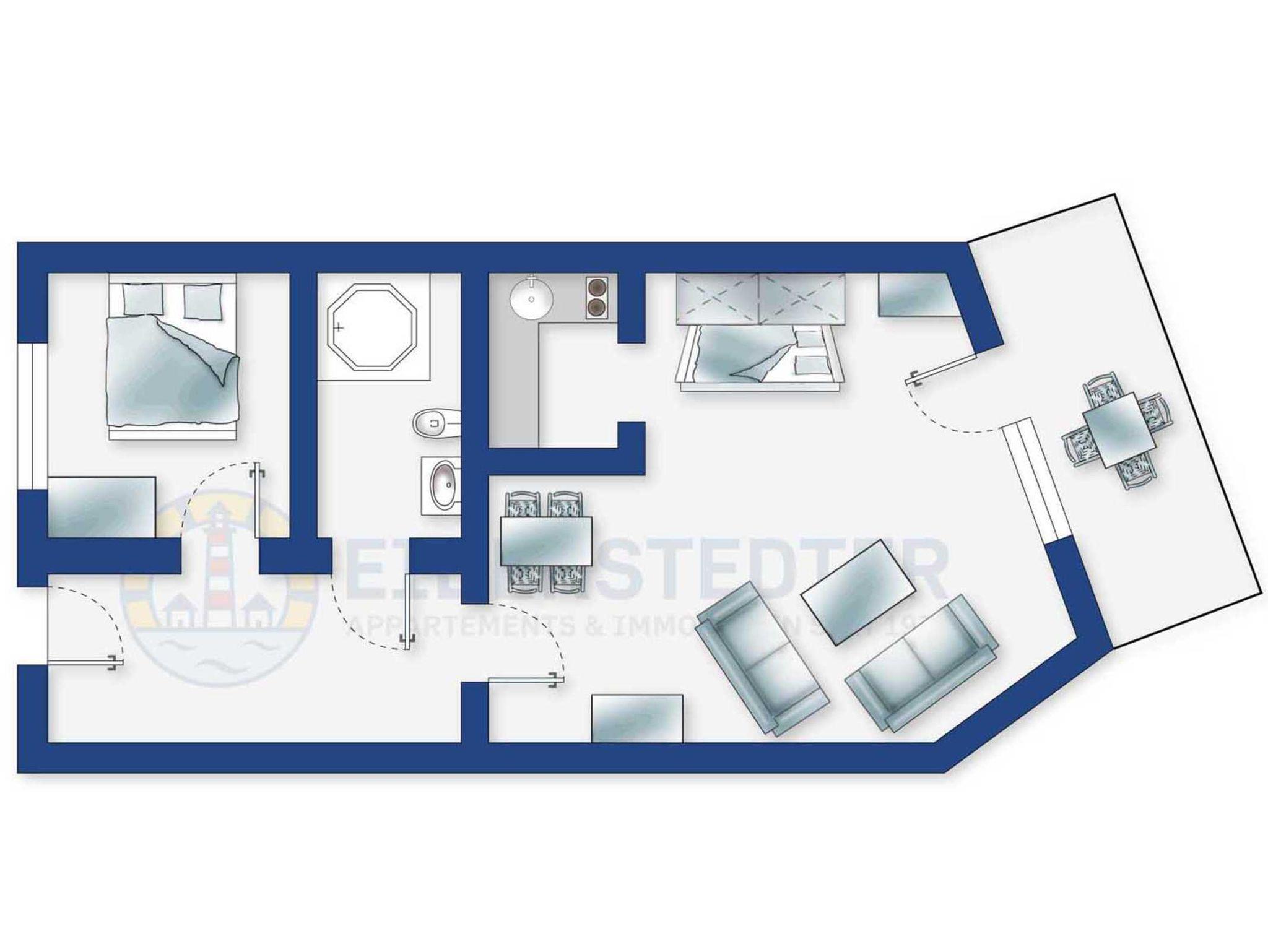 Hell eingerichtete 2-Zimmer-Ferienwohnung Wattläufer mit ca. 42 qm auf 1 Ebene (1. OG) für bis zu 2 Personen. Sehr zentrale und strandnahe Lage im Ortsteil Bad in Sankt Peter-Ording. Alle Geschäfte und Restaurants des Kurzentrums und die Dünentherme sind in nur wenigen Gehminuten erreichbar. Genießen Sie die frische Nordseeluft auf Ihrem schönen Westbalkon.