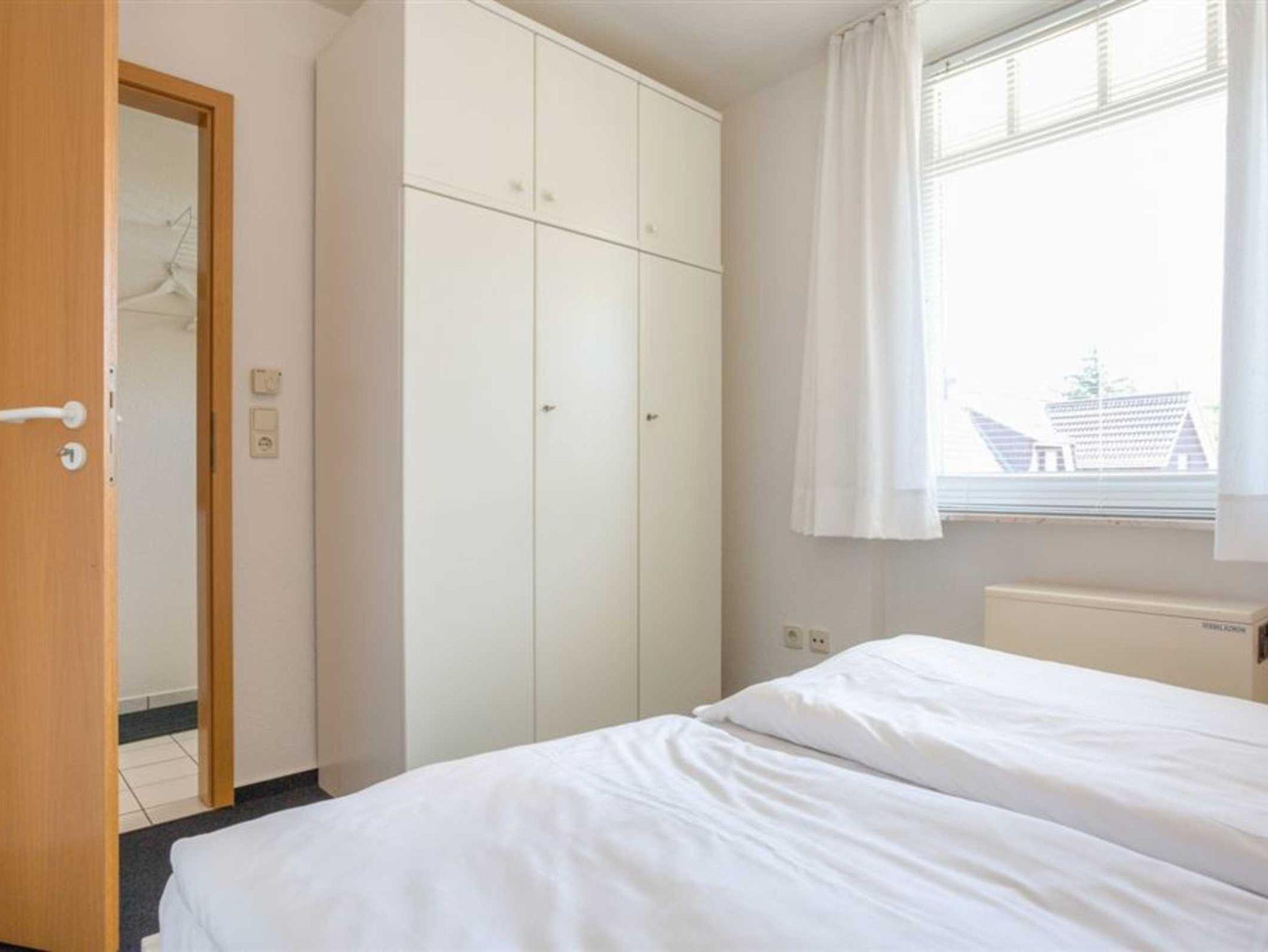 Schlafzimmer mit Doppelbett (2x 80x200cm) und Kleiderschrank.