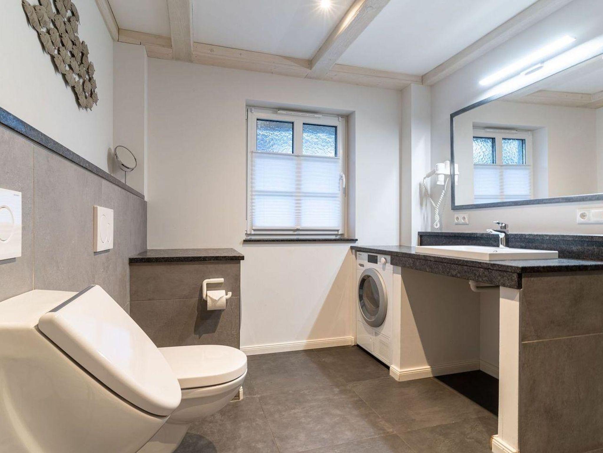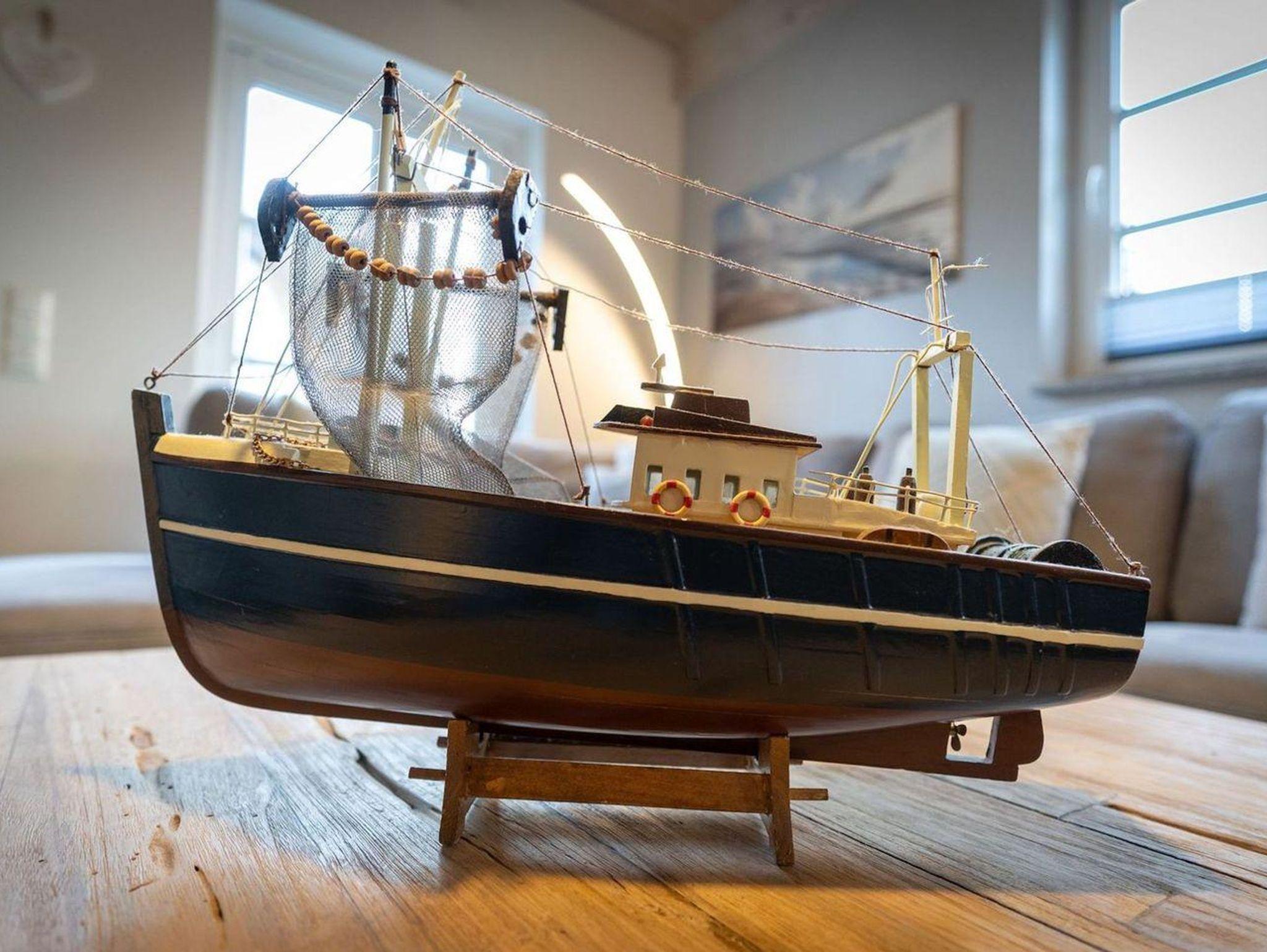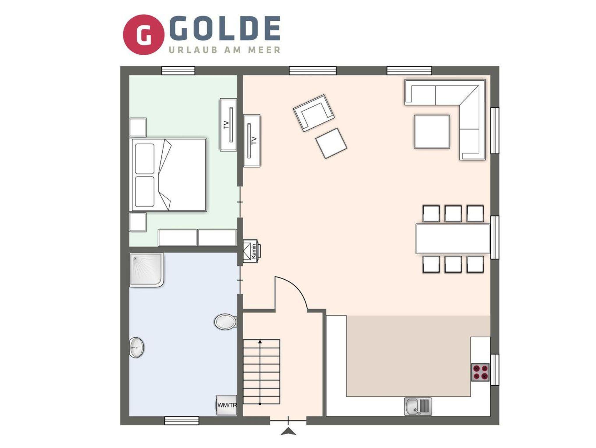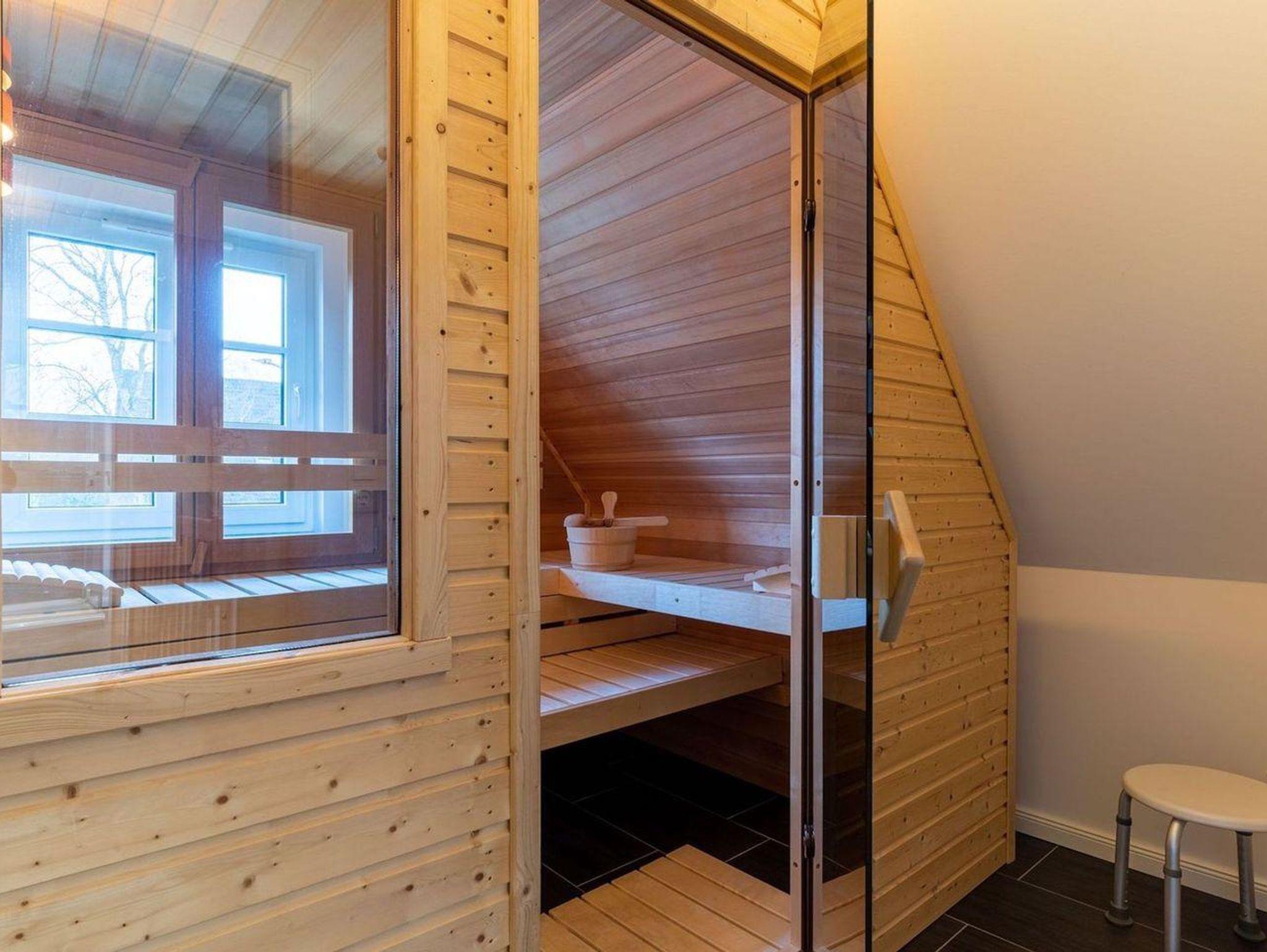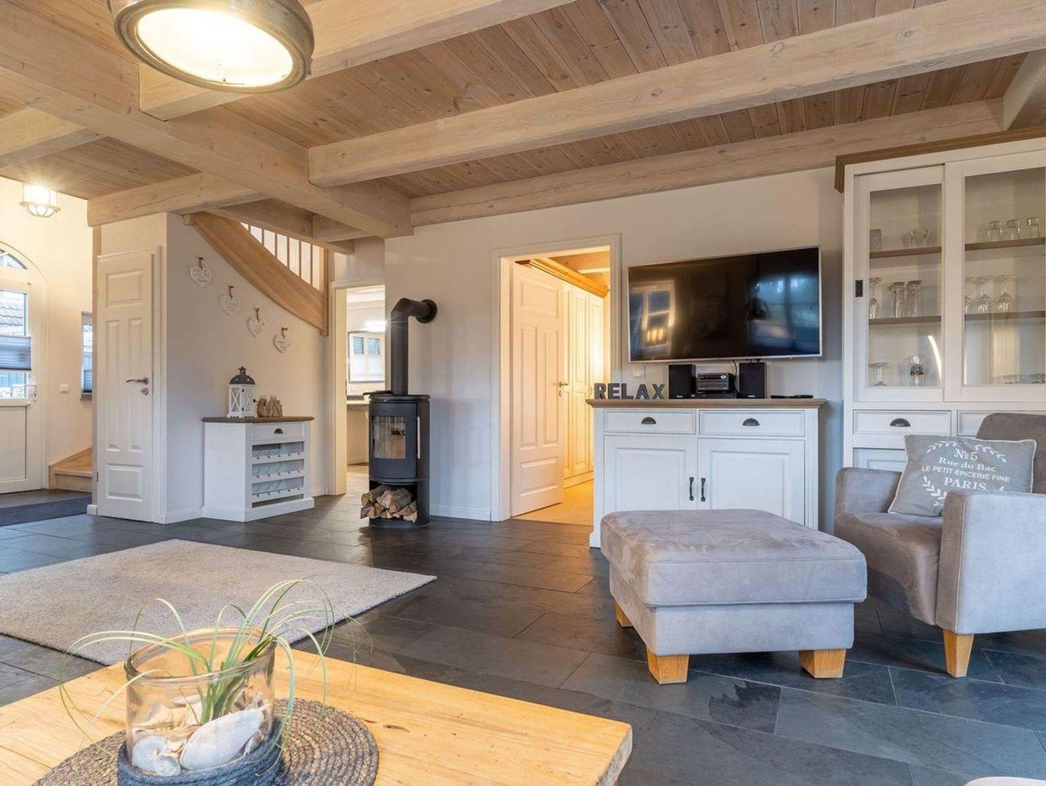 Die wunderschöne Haushälfte unter Reet verfügt über ca. 130 m² und bietet Platz für 1-6 Personen.Im Erdgeschoss befindet sich der lichtdurchflutete Wohnraum mit TV, Kamin, einer offenen Küche sowie einem stilvollen Essbereich.Die Küche ist ausgestattet mit Backofen und Geschirrspüler, sowie einem Esperto-Caffè-Automat, Toaster, Wasserkocher und den üblichen Küchenutensilien.An den Wohnbereich schließen sich ein Flur, ein Duschbad und ein Doppelschlafzimmer an.Das Erdgeschoss ist rollstuhlfreundlich.Über eine Holztreppe gelangt man in das Obergeschoss. Die beiden Schlafzimmer, jeweils mit einem Doppelbett sorgen für ruhevolle Erholung.Im ersten Stock befindet sich ausserdem ein weiteres Duschbad sowie eine Sauna.