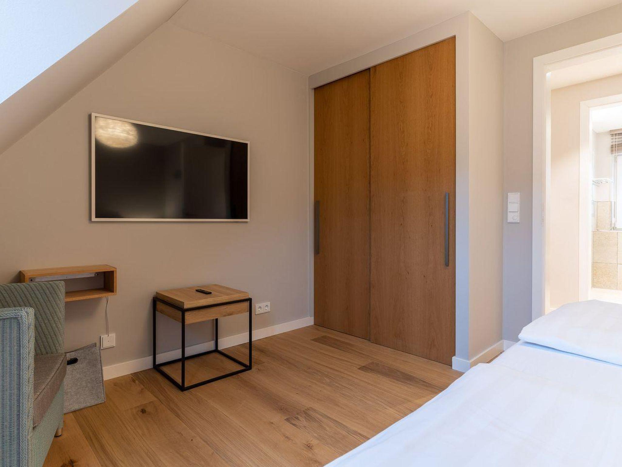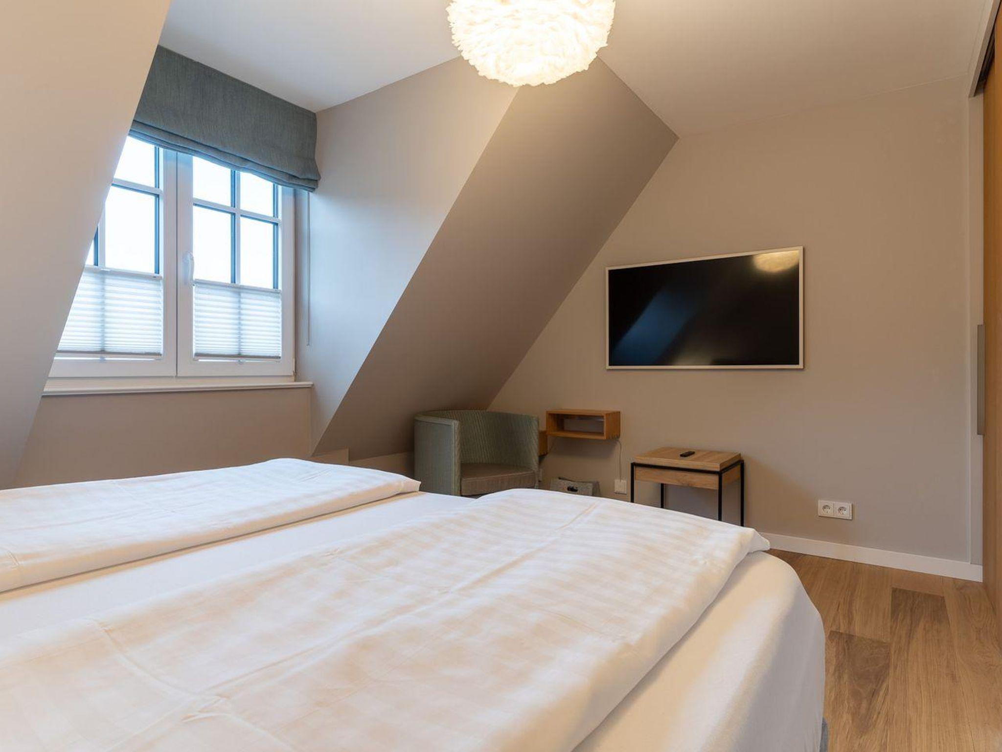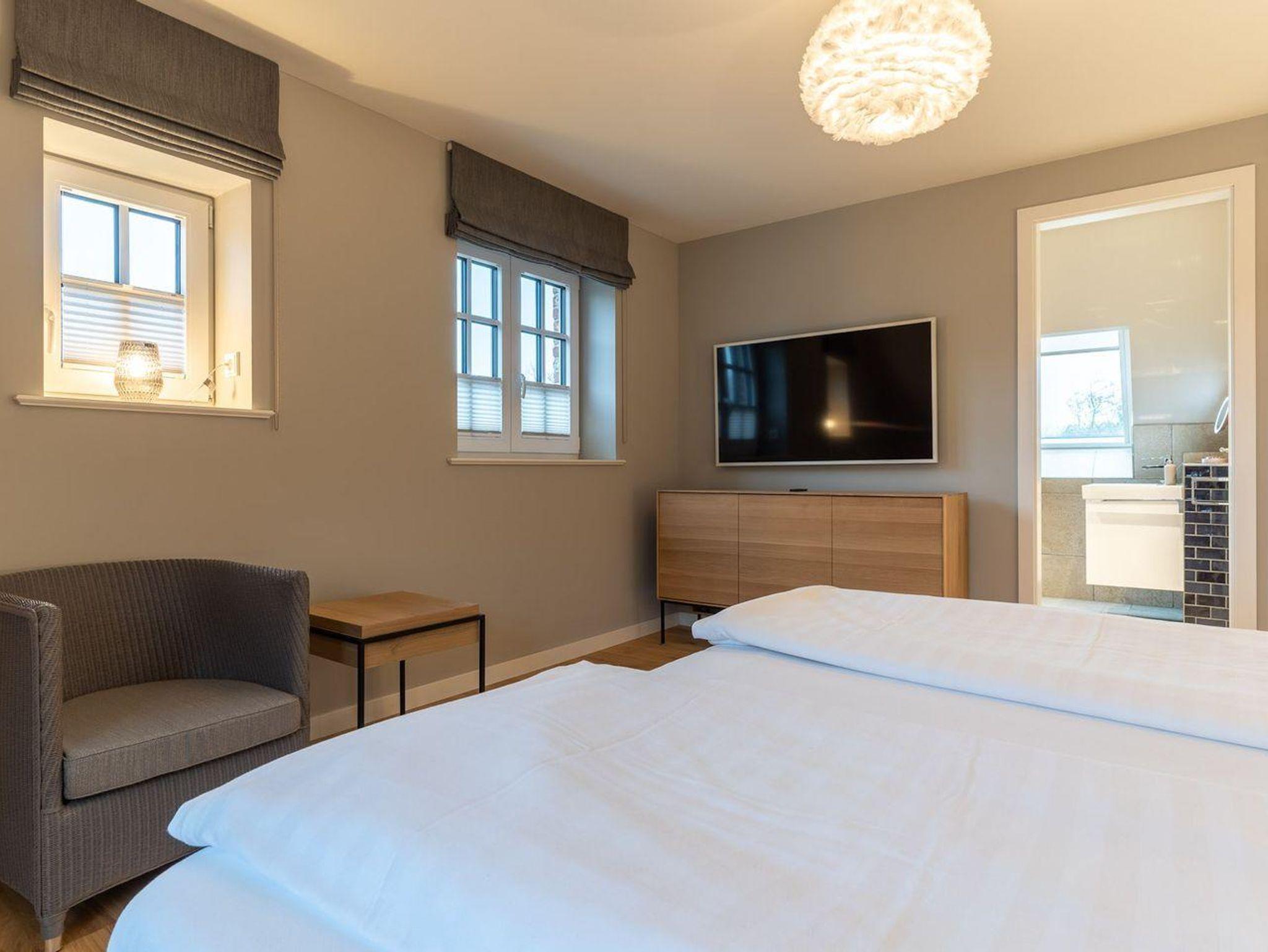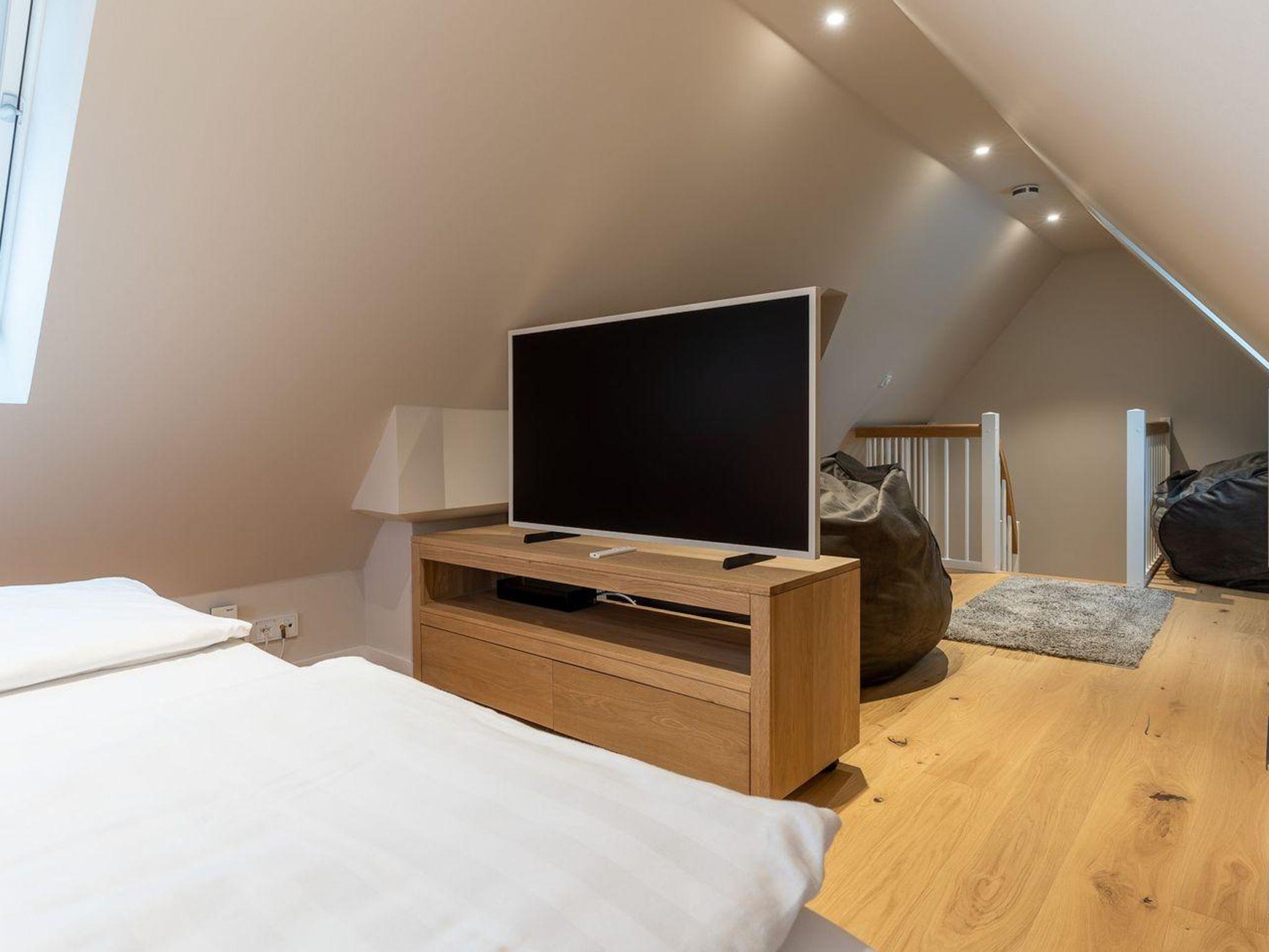 Das Wohnzimmer sowie die Schlafzimmer sind mit einem TV ausgestattet.