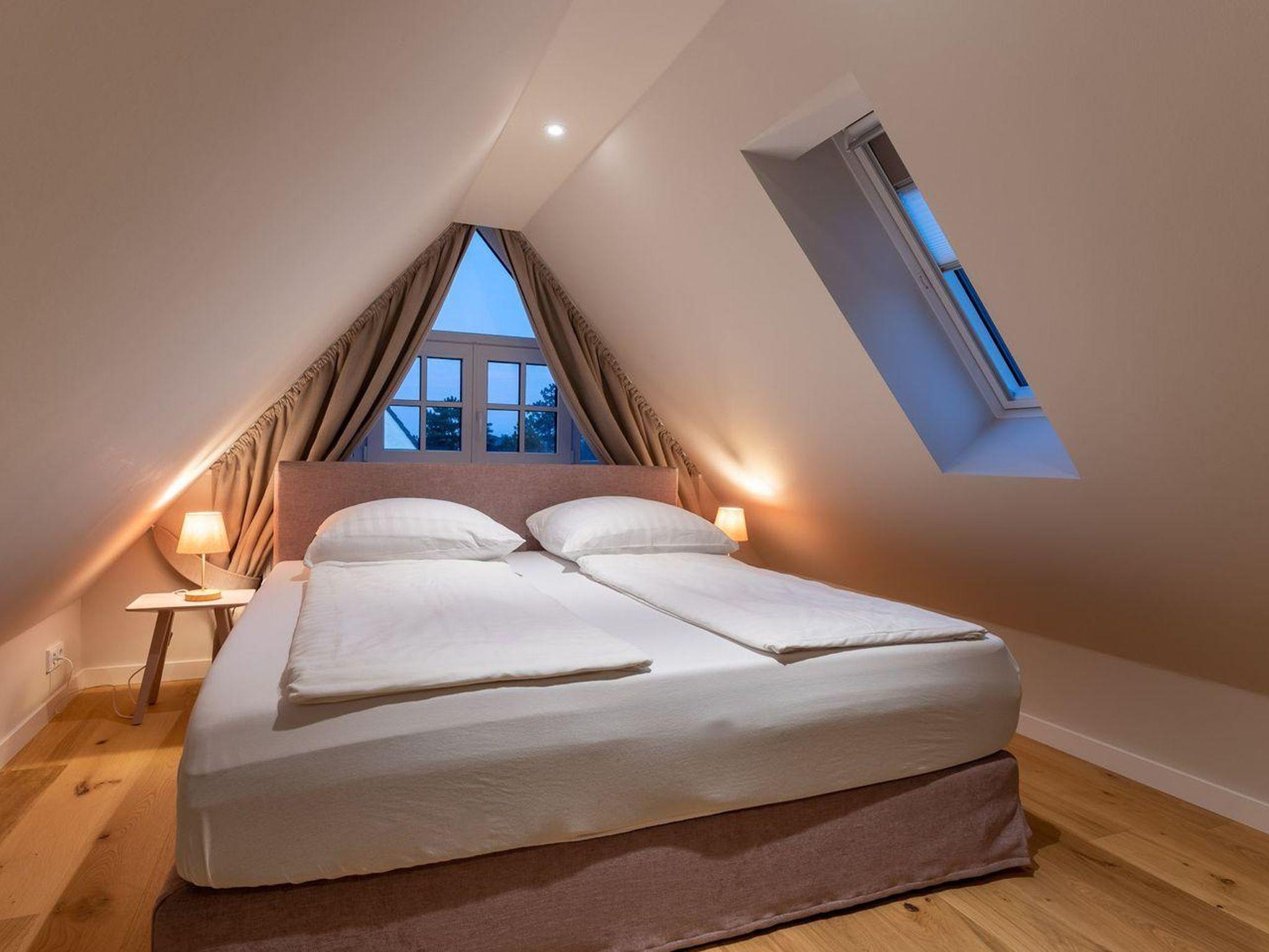Über eine weitere Holztreppe geht es vom Flur ins Dachgeschoss. In dem großzügigen Dachgeschoss steht Ihnen noch ein weiteres Doppelbett zur Verfügung.