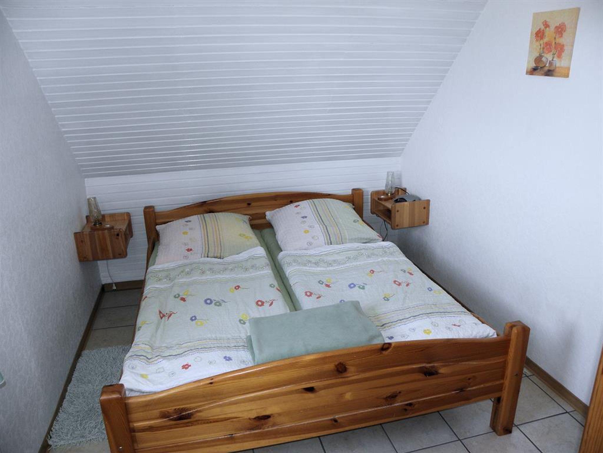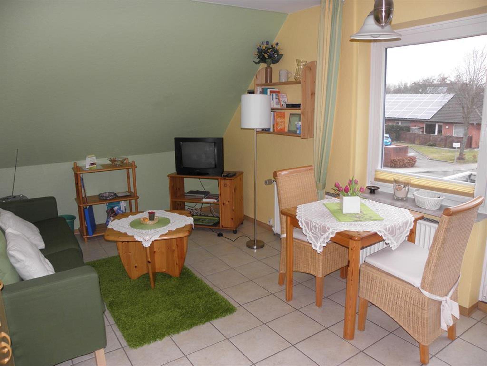 Unsere helle Ferienwohnung im Obergeschoss bietet Platz für zwei Personen und ist ideal für einen entspannten Aufenthalt: