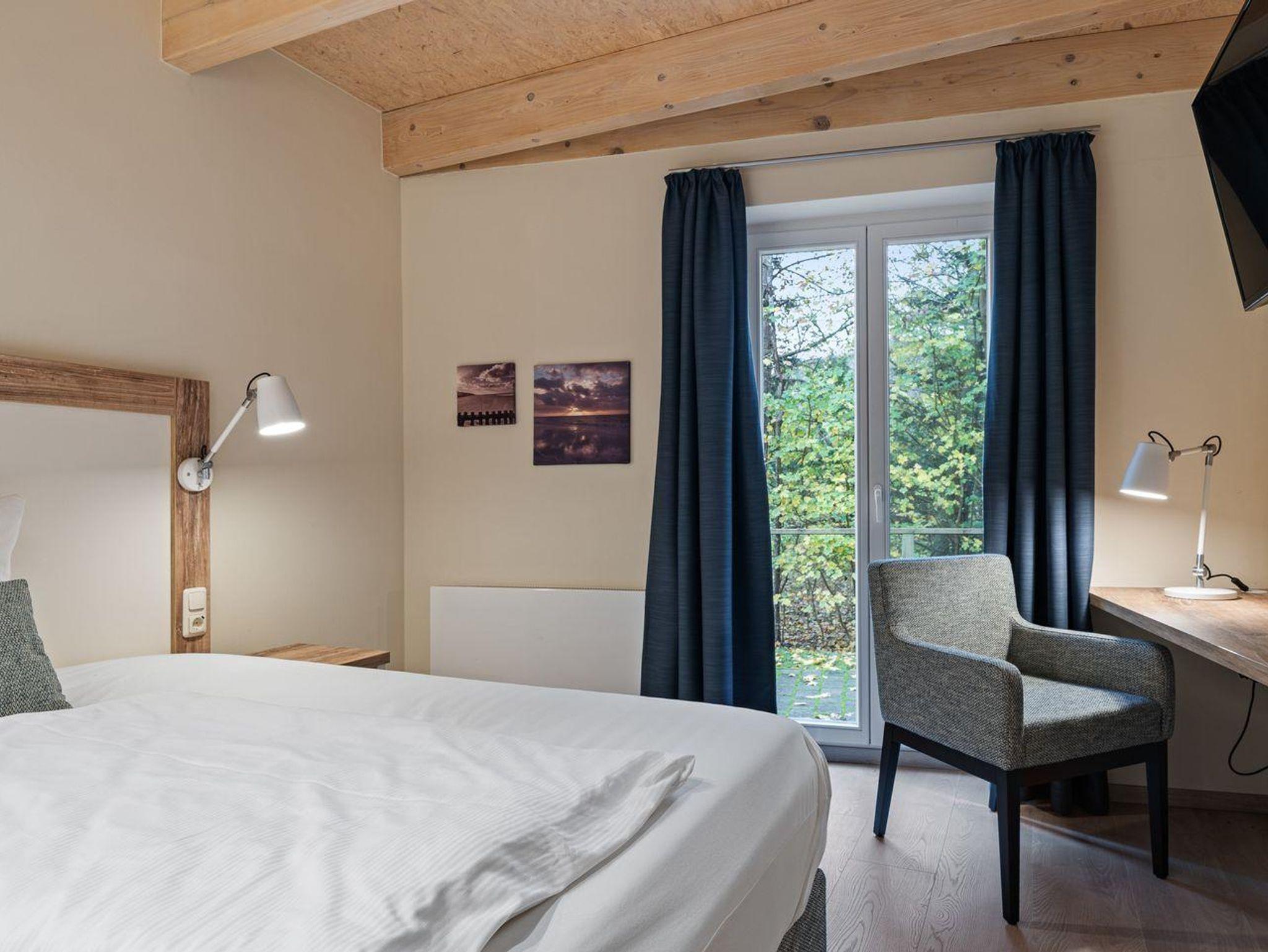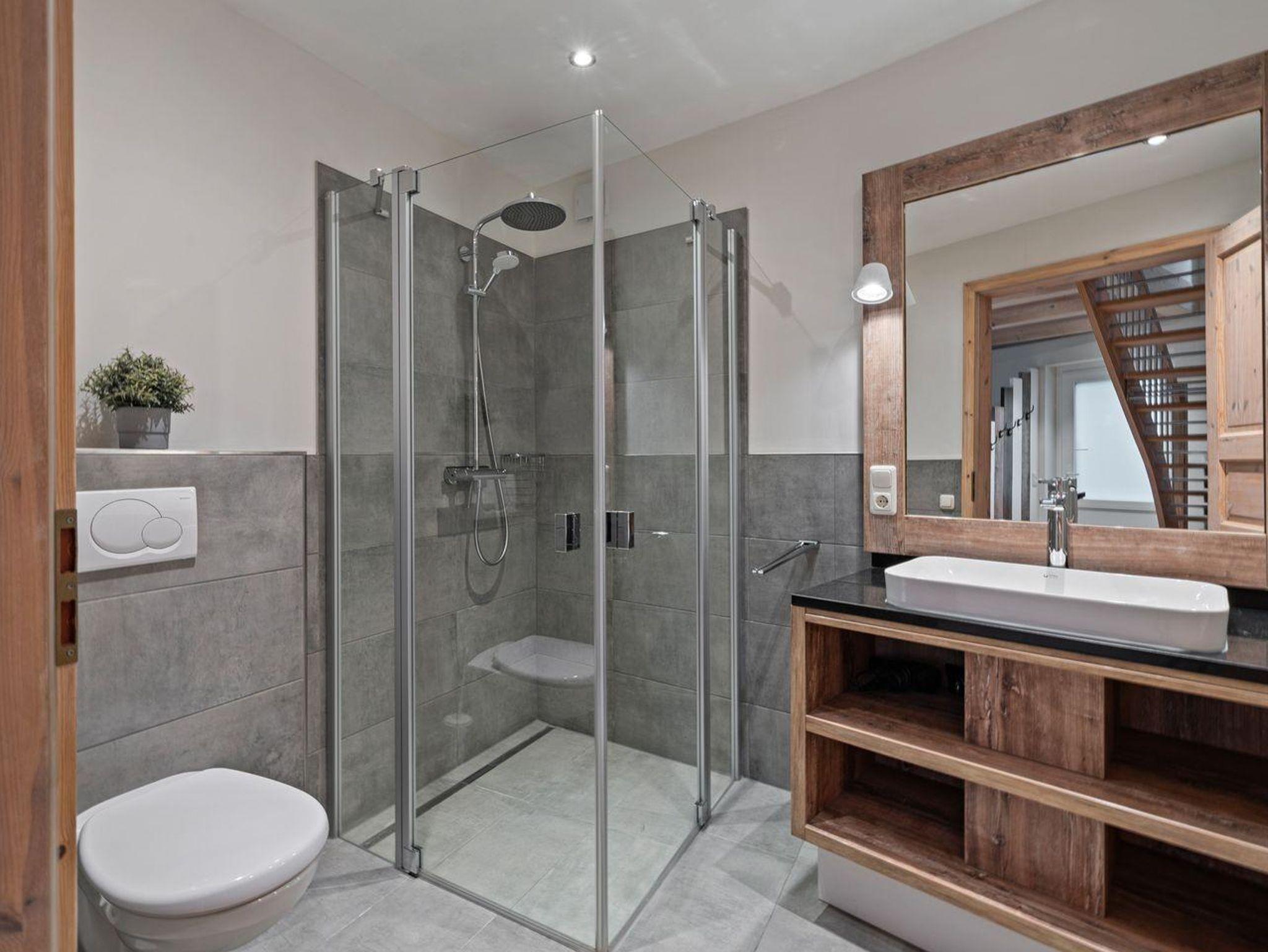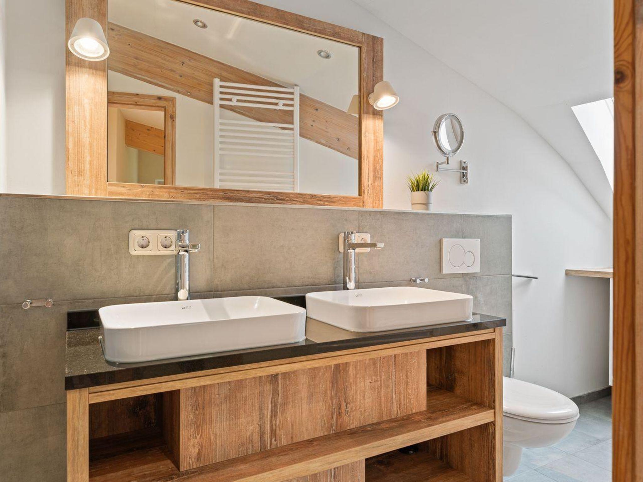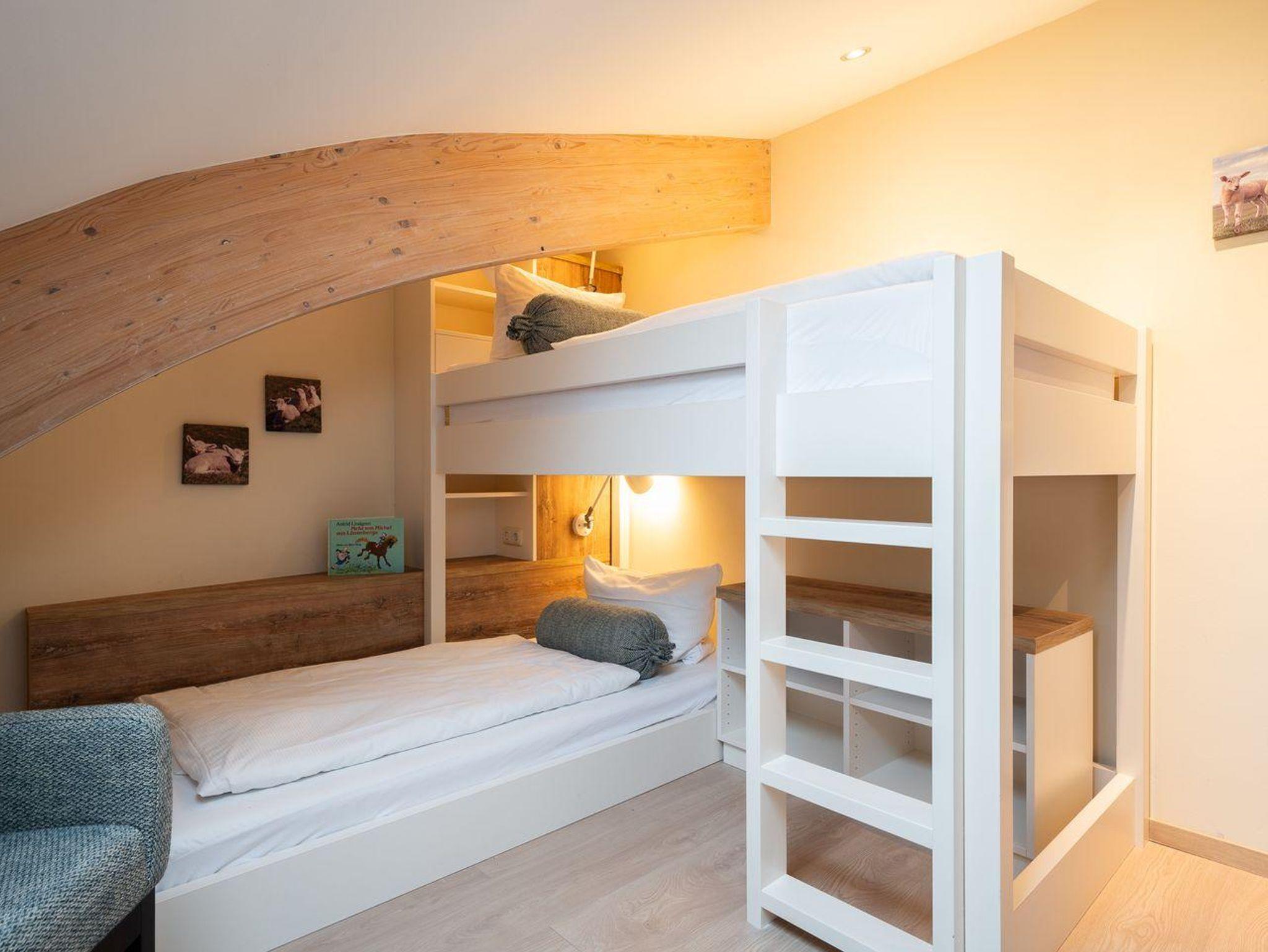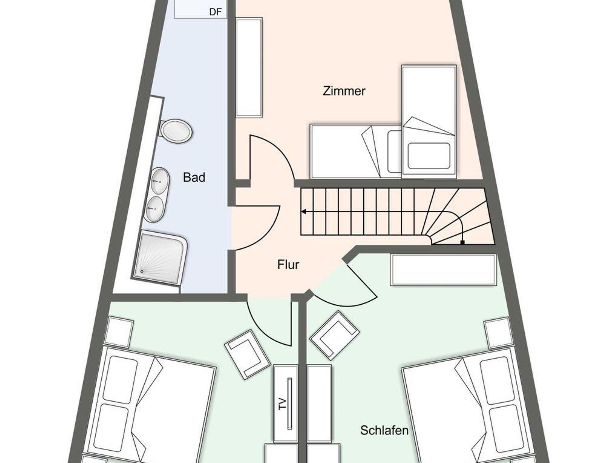 An den Wohnbereich schließt sich ein Duschbad an sowie ein Schlafzimmer mit Boxspringbett (180 x 200cm).Vom Wohnzimmer gelangen Sie auf eine gemütliche Terrasse. Über eine Treppe aus dem Wohnraum gelangt man in das Obergeschoss. Hier sind zwei großzügige Schlafzimmer mit jeweils einem Boxspringbett (180 x 210cm) + (180 x 200cm) + (1x mit TV). Das dritte Schlafzimmer hat ein gemütliches Etagenbett (2x 90x200cm). Außerm ist noch ein weiteres Duschbad vorhanden.