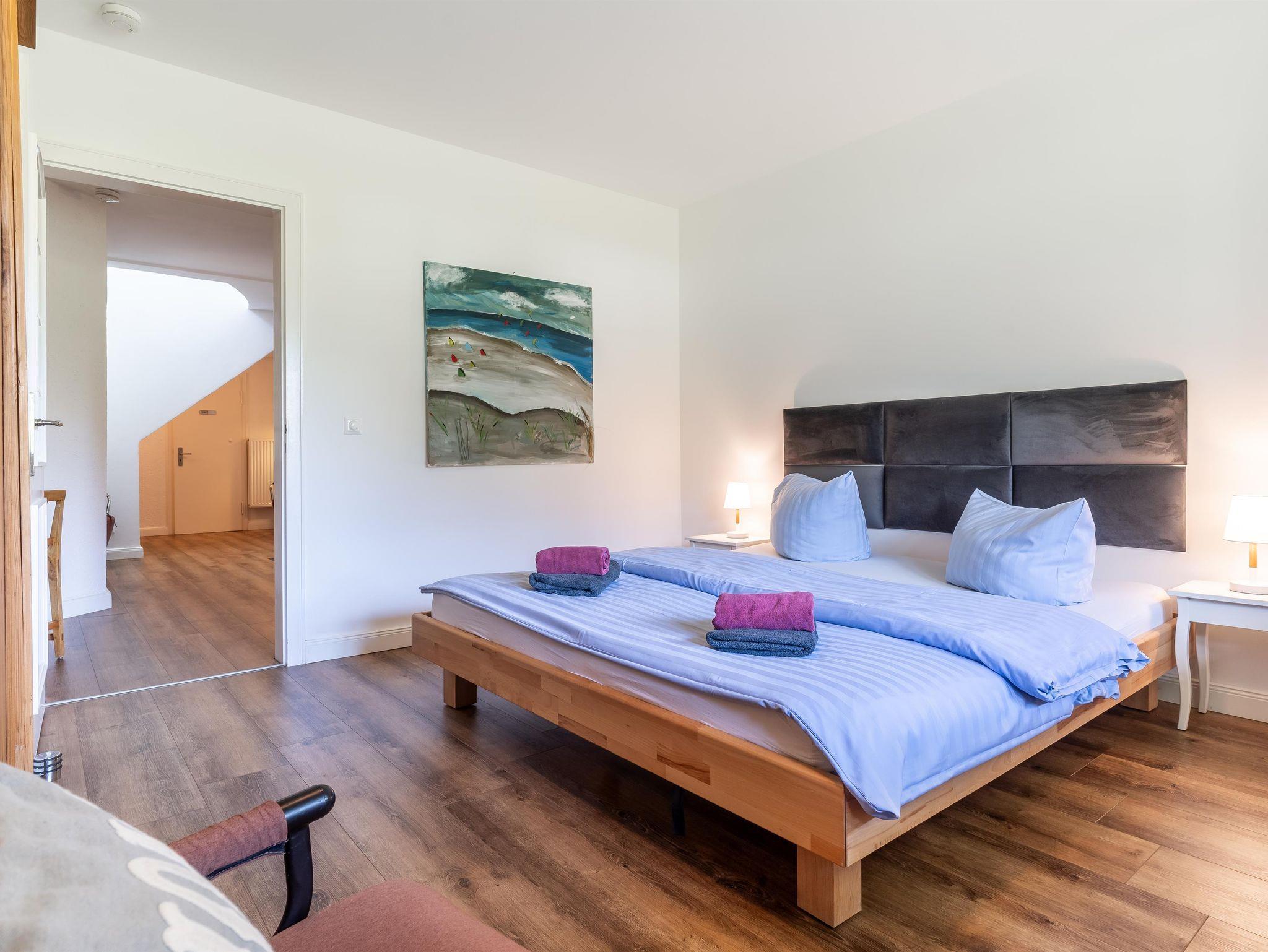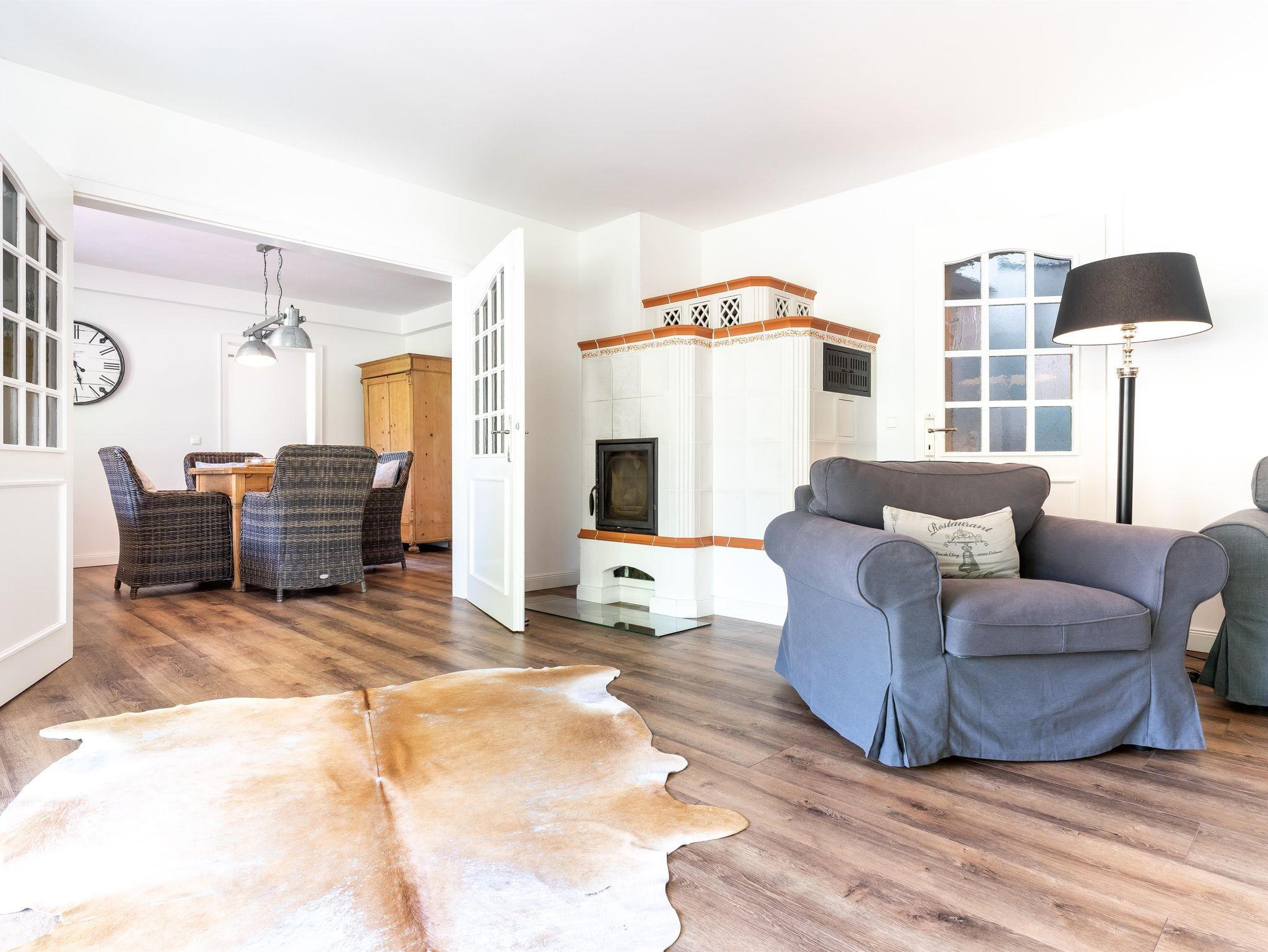 Die Wohnung ist mit hellem hochwertigen Vinyl ausgelegt und mit antiken Bauernmöbeln neben selbstgemalten Bildern geschmackvoll eingerichtet. Durch die Gauben erhält das Appartment einen gemütlichen Charakter. Ein kleiner Teepavillon im Garten lädt zum Verweilen oder Sonnen ein.