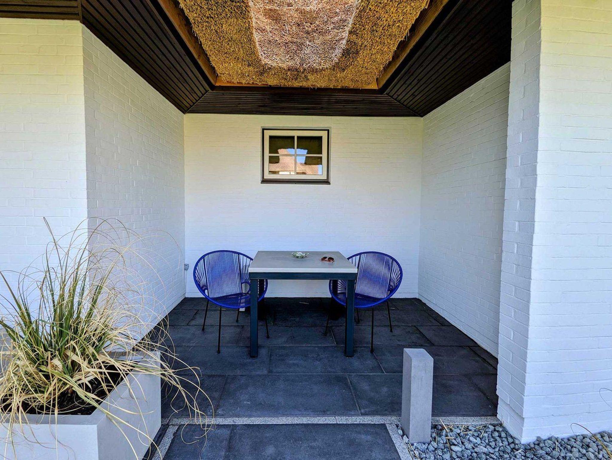 Hier sitzen Sie windgeschützt und unter dem wertigen Reetdach des Hauses.
