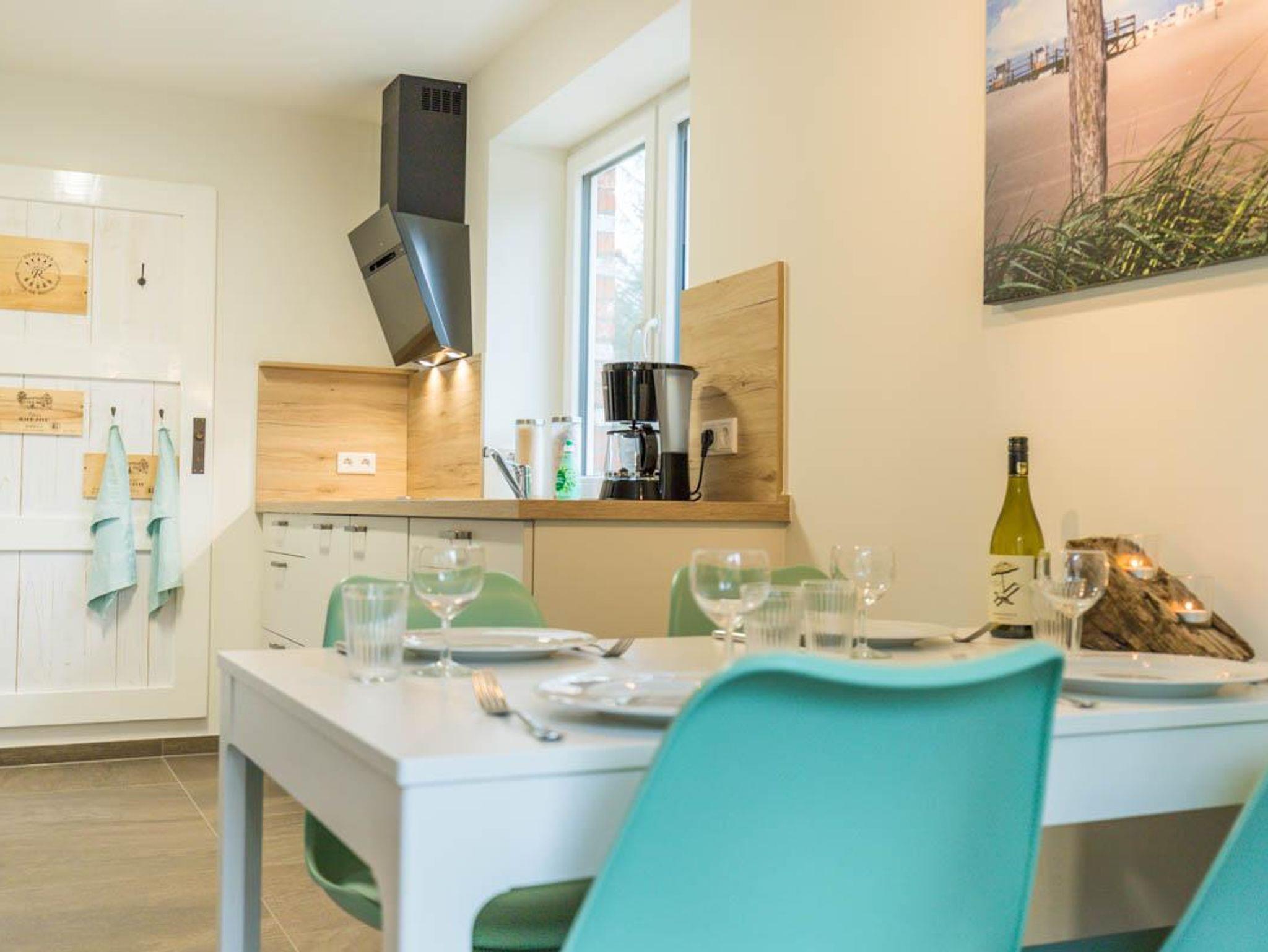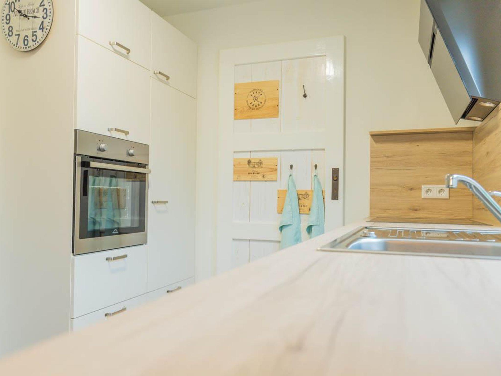 In der großen offenen Wohnküche, ausgestattet mit hochwertigen Elektrogeräten, incl. Cerankochfeld, Backofen, Microwelle, Spülmaschine und Kühl-/Gefrierschrank, lassen sich kleine und große Gerichte hervorragend zubereiten.
