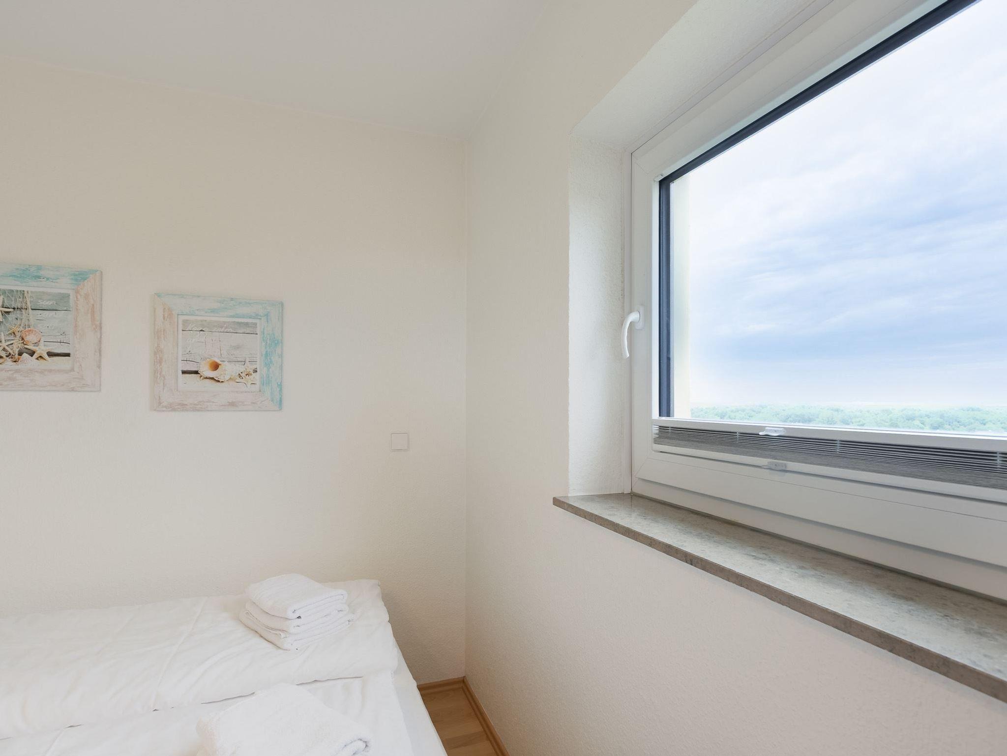 2. Schlafzimmer mit Schlafsofa (90x200cm), Kleiderschrank und phänomenalem Nordseeblick.