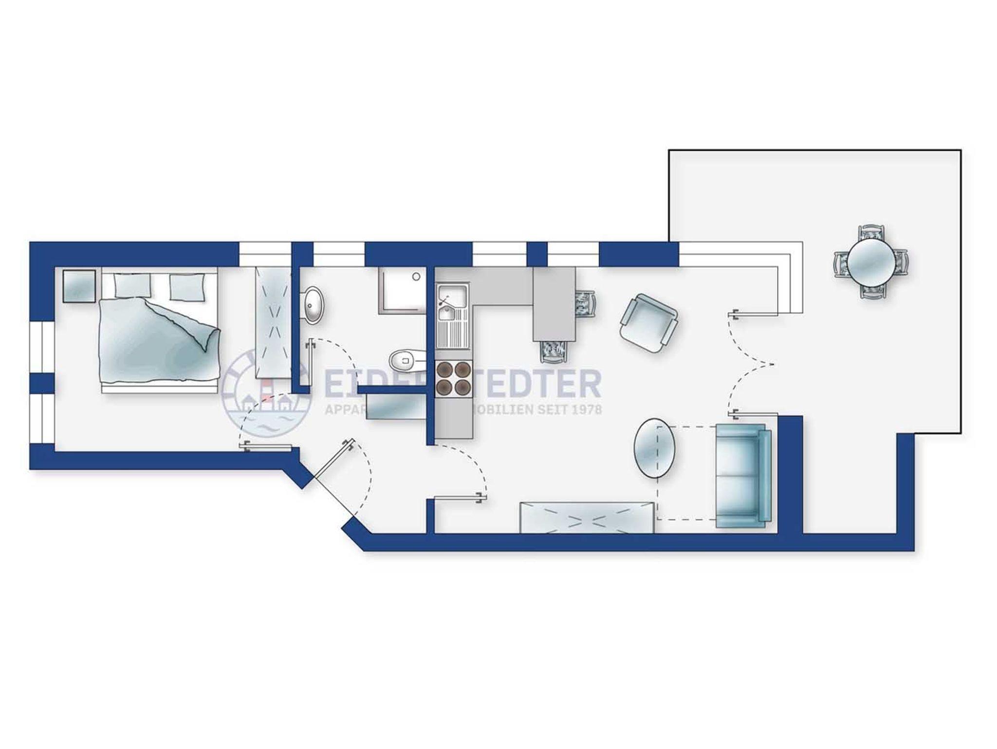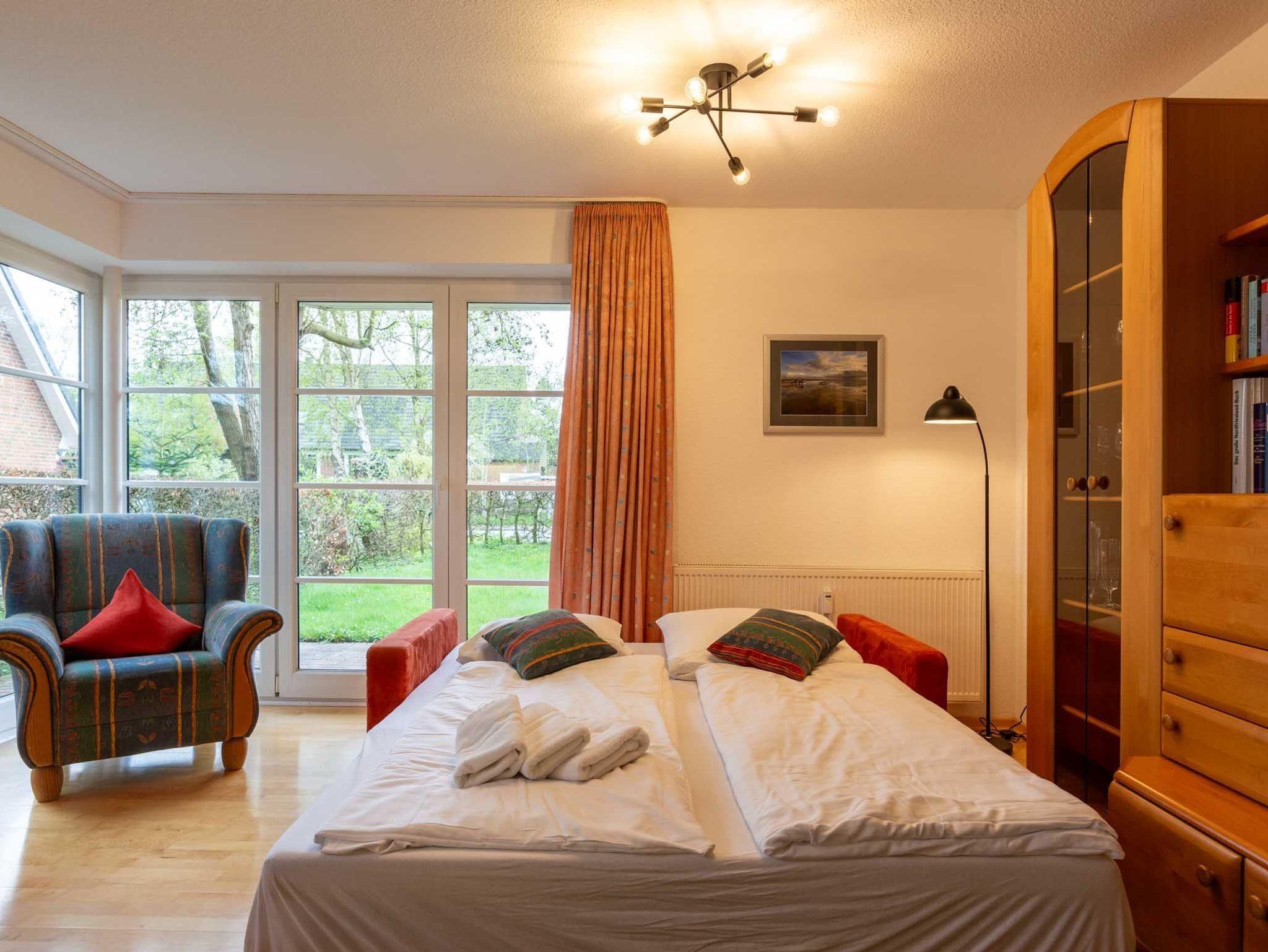 Gemütliche 2-Zimmer-Ferienwohnung Dünentraum mit ca. 44 m² auf 1 Ebene (EG) für bis zu 4 Personen (Wohlfühlbelegung: max. 2 Erwachsene). In ruhiger, zentrumsnaher Lage im Ortsteil Dorf in St. Peter-Ording. Zur Wohnung gehört eine Garten-Terrasse nach Süden. Hunde sind willkommen.