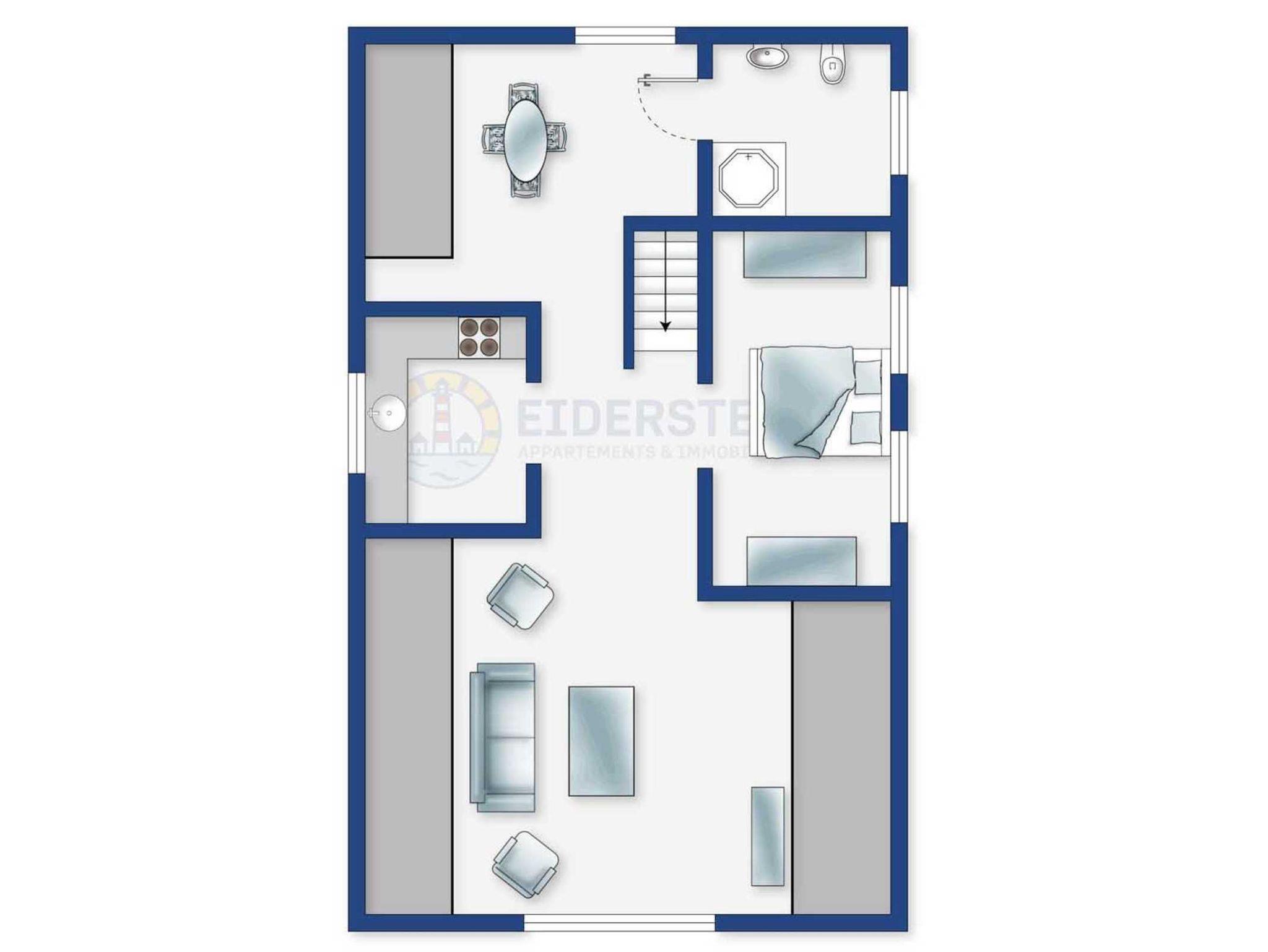 Gemütlich eingerichtete 2-Zimmer-Ferienwohnung im Haus Sturmmöwe mit ca. 45 qm auf 1 Ebene (OG) für bis zu 3 Personen. In ruhiger Lage und nur einen kurzen Fußweg von den Geschäften auf der Dorfstraße entfernt. Auf dem Grundstück des Hauses ist ein schöner Garten mit gemeinschaftlicher Grillecke. Gartenmöbel stehen im gemeinschaftlichen Blockhaus zur Verfügung.