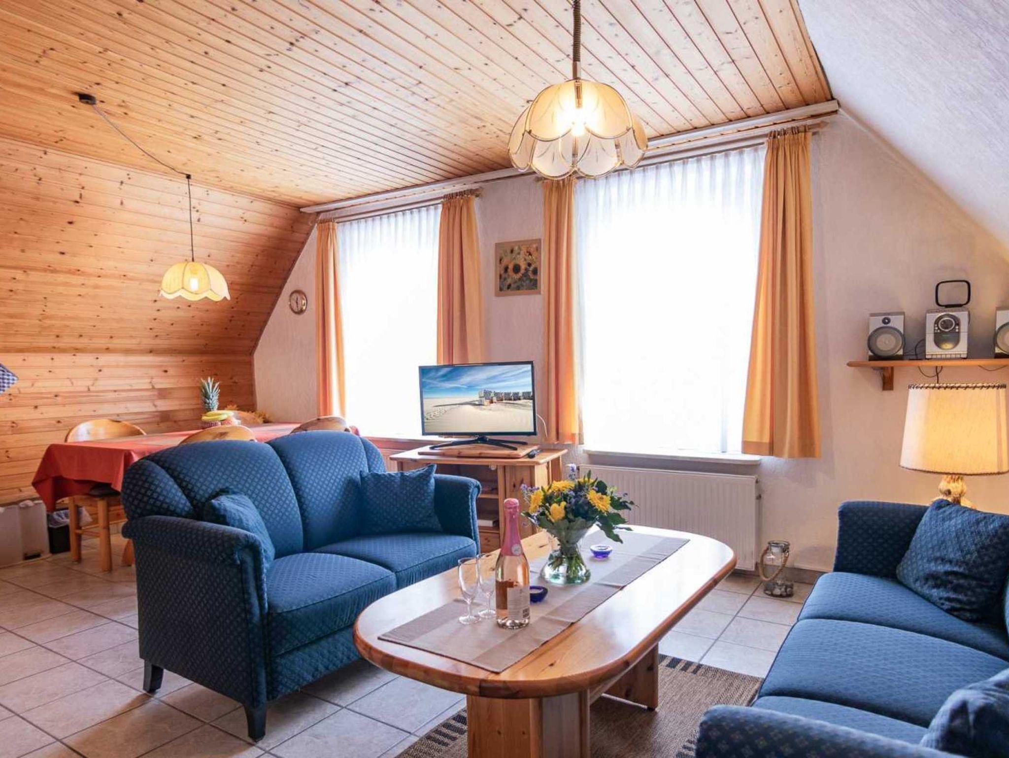 Komfortable 3-Zimmer-Ferienwohnung im Haus Sturmmöwe mit ca. 55 qm auf 2 Ebenen (EG, OG) für bis zu 4 Personen. In ruhiger Lage und nur einen kurzen Fußweg von den Geschäften auf der Dorfstraße entfernt. Auf dem Grundstück des Hauses ist ein schöner Garten mit gemeinschaftlicher Grillecke. Gartenmöbel stehen im gemeinschaftlichen Blockhaus zur Verfügung.