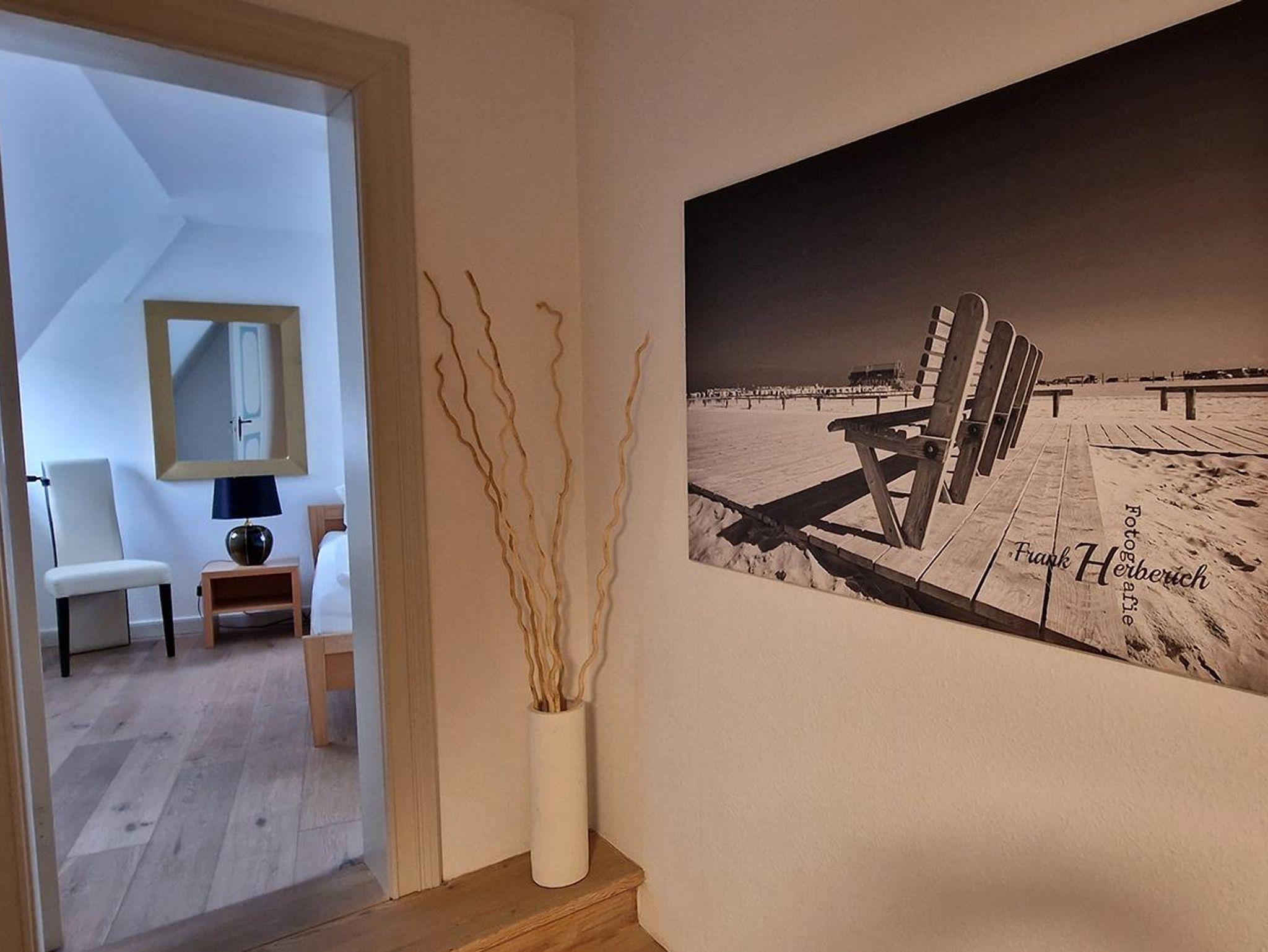 Die Einrichtung des Hauses ist von einer dem Friesenhaus angepassten Eleganz und erlesenen Qualität. Antiquarische Fliesen in der Diele, moderne Fliesen in den 2 Bädern, Holzfußböden in den 3 Schlafzimmern, dem Wohnzimmer und in den Räumen des Dachgeschosses, sowie massive lackierte Füllungstüren. Der ebenfalls neu gestaltete Außenbereich mit Strandkorb und Gartenmöbeln auf einer Terrasse aus Natursteinen ist durch eine mannshohe Ligusterhecke abgeschirmt. Die Wege und der Parkplatz wurden mit Klinker und Natursteinen gepflastert.