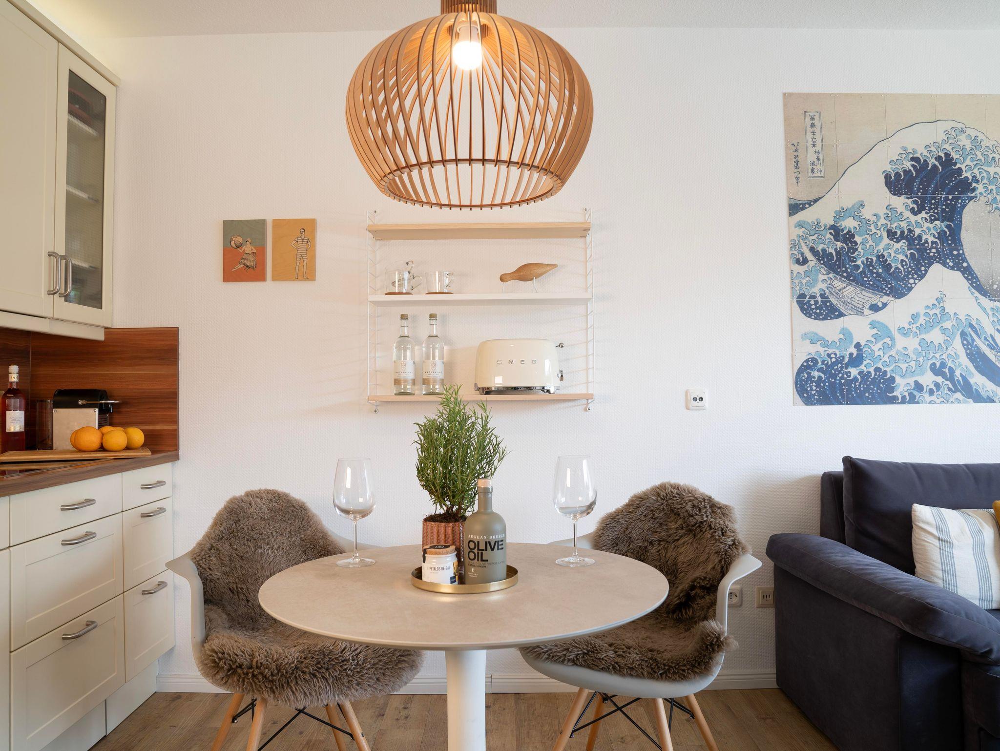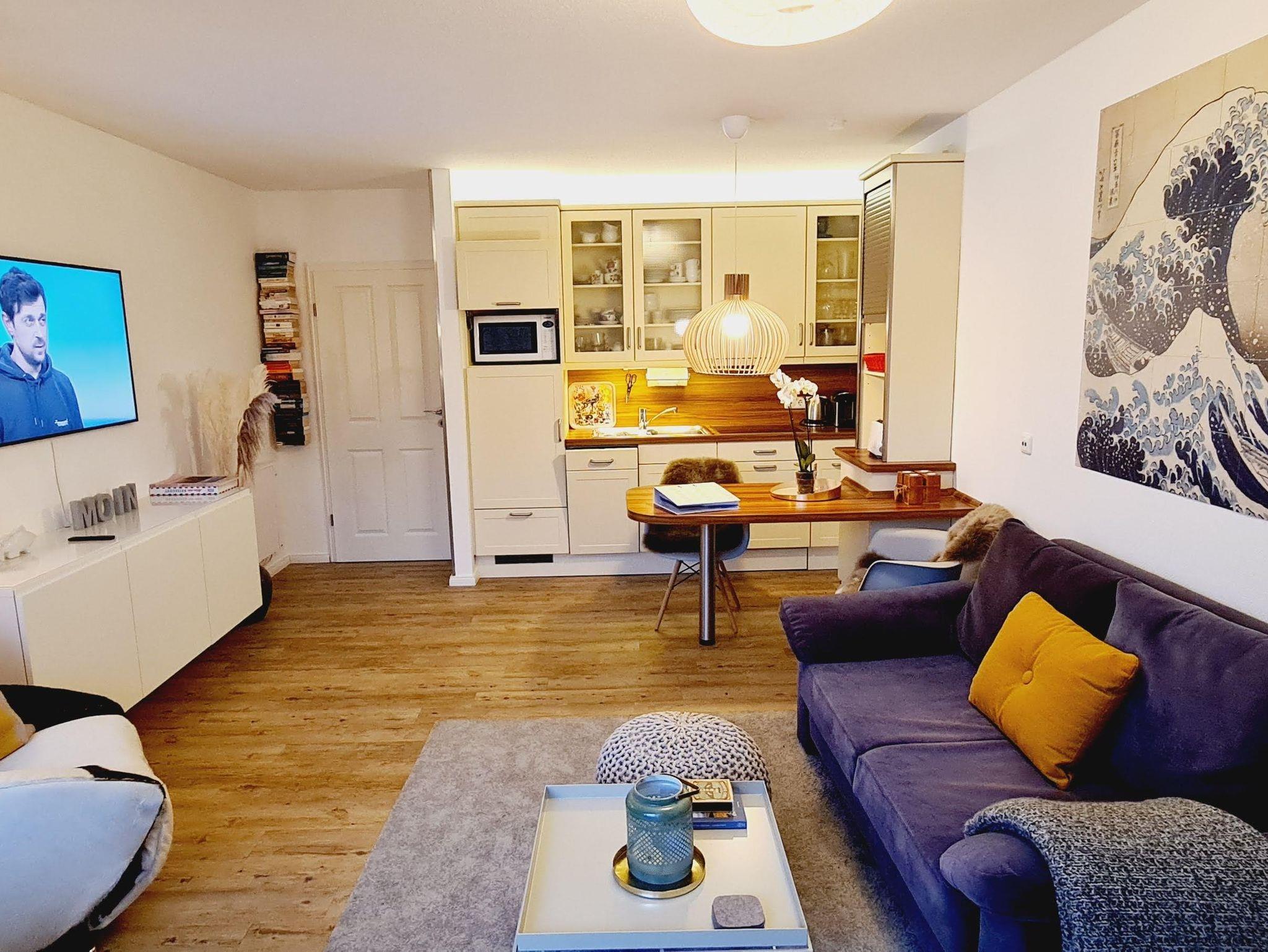 Die perfekte Base in absoluter Nähe zum atemberaubenden Badestrand von SPO! 500 m vom Ordinger Beach entfernt, in der ersten Reihe direkt hinter dem Deich. Kommen Sie zur Ruhe, lassen Sie die Gedanken durchpusten. Klares, nordisches Design, Individualität und Stil schaffen eine entspannte Atmosphäre. Das moderne Wohnambiente im Wohnzimmer mit offener Küche und eigenem Sonnenbalkon laden zum gemütlichen Beisammensein ein. Ruhe und guten Schlaf finden Sie durch eine Außenjalousie am Schlafzimmer und genug Platz für zwei im 1,80 großen Doppelbett mit hochwertigen Matratzen. Das Bett ist frisch bezogen, wenn Sie kommen!