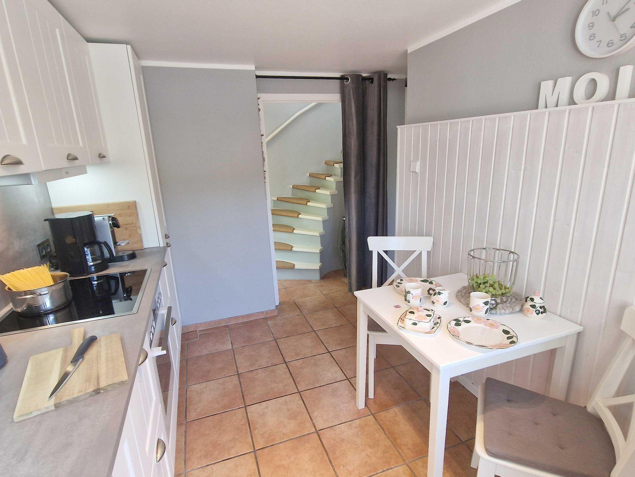 Die separate, sehr gut ausgestattete Küche verfügt über einen weiteren kleinen Frühstückstisch.