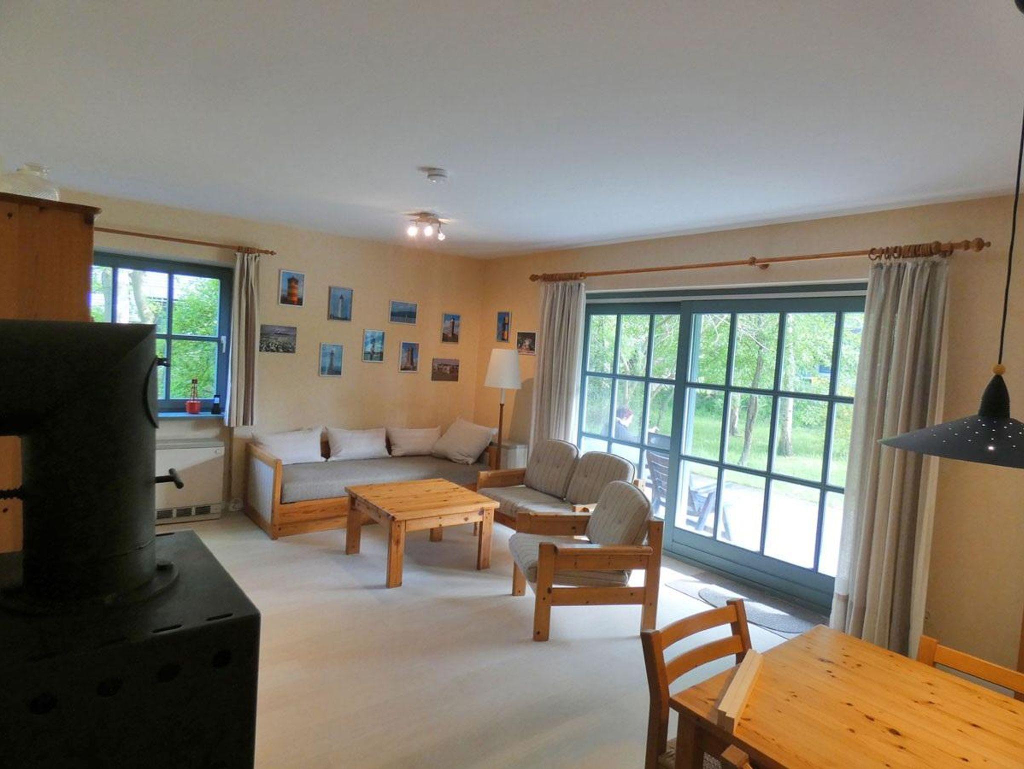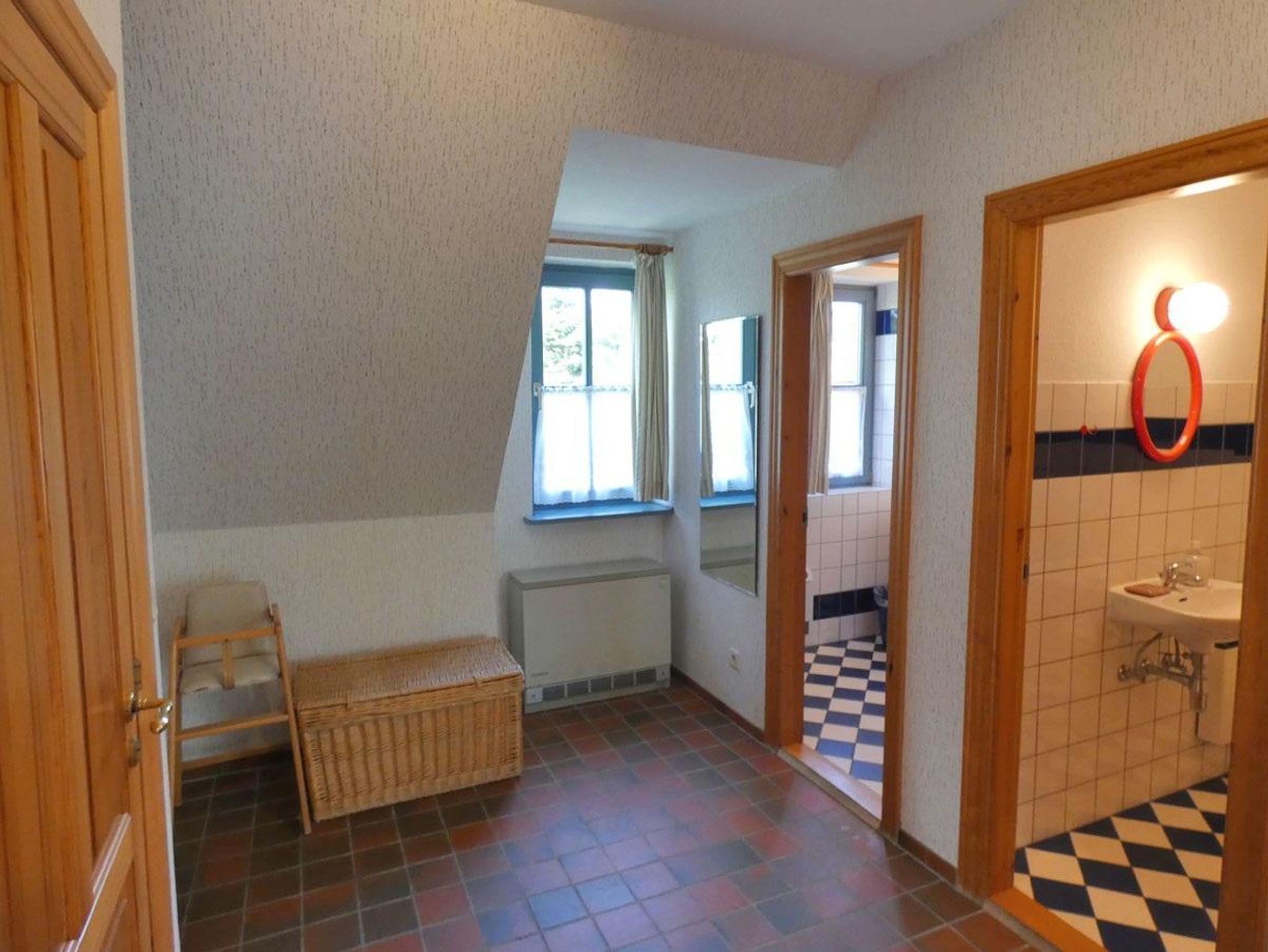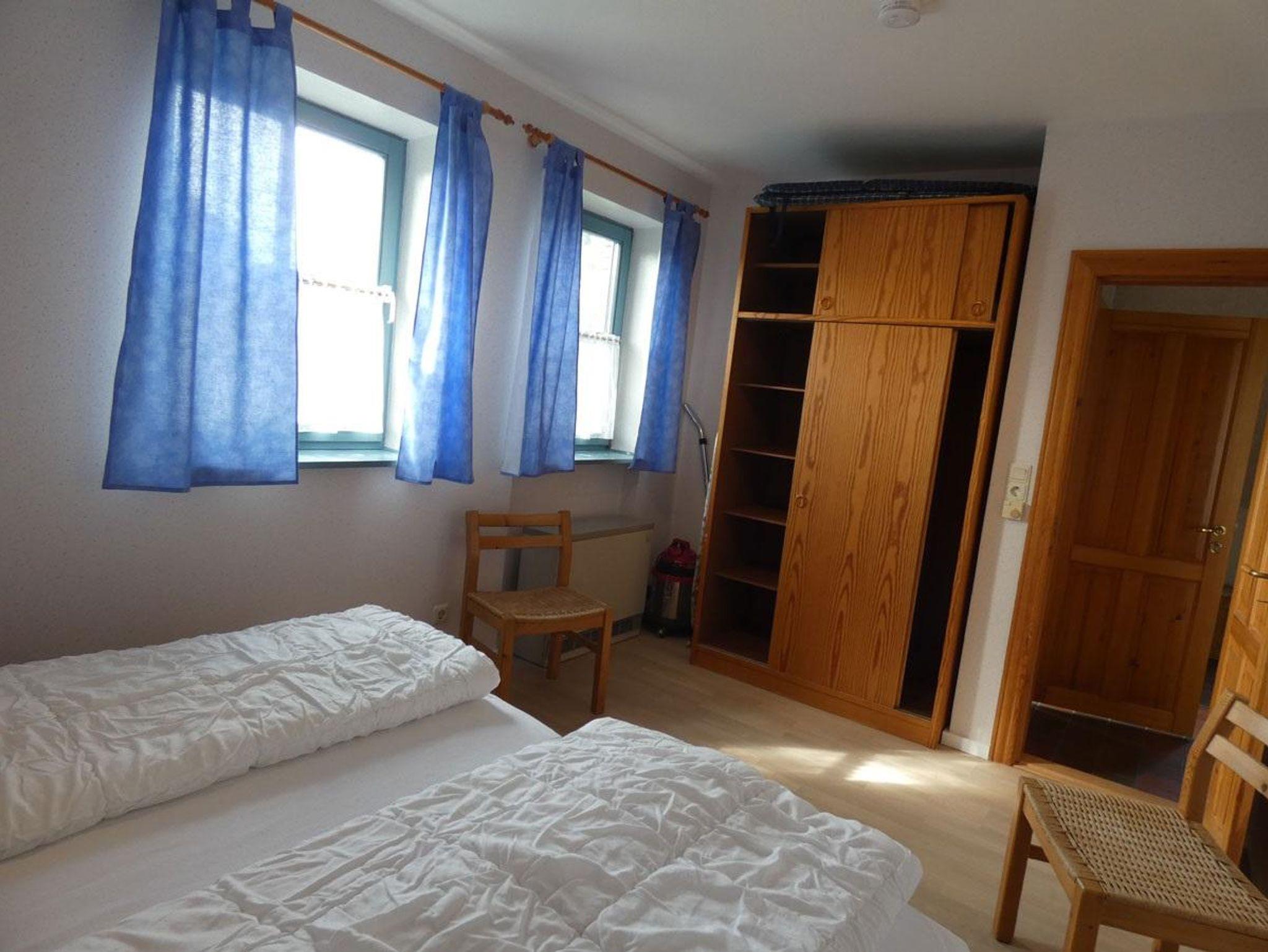 Die Wohnung Rico im Obergeschoß verteilt sich über 2 Etagen auf 75qm. Im Obergeschoß finden Sie einen Wohnschlafraum mit Schlafcouch, Sitz- und Essecke, dänischem Kaminofen, sowie eine sonnige Fensterfront mit Ausgang zum Balkon vor. Die Ferienwohnung ist im skandinavischen Stil mit einer separaten Küche, Insektenschutzfenstern, einem Duschbad, sowie einem separatem WC ausgestattet. Ein Schlafzimmer mit einem Doppelbett läst zum Schlummern ein. Ein weiterer Schlafraum mit 2 Einzelbetten und Kindergitter (ein dritter Schlafplatz wäre hier möglich), einem Couchtisch und zwei Sesseln ist über die Wendeltreppe im Dachgeschoß erreichbar. Bettwäsche und Handtücher sind auf Anfrage mietbar.