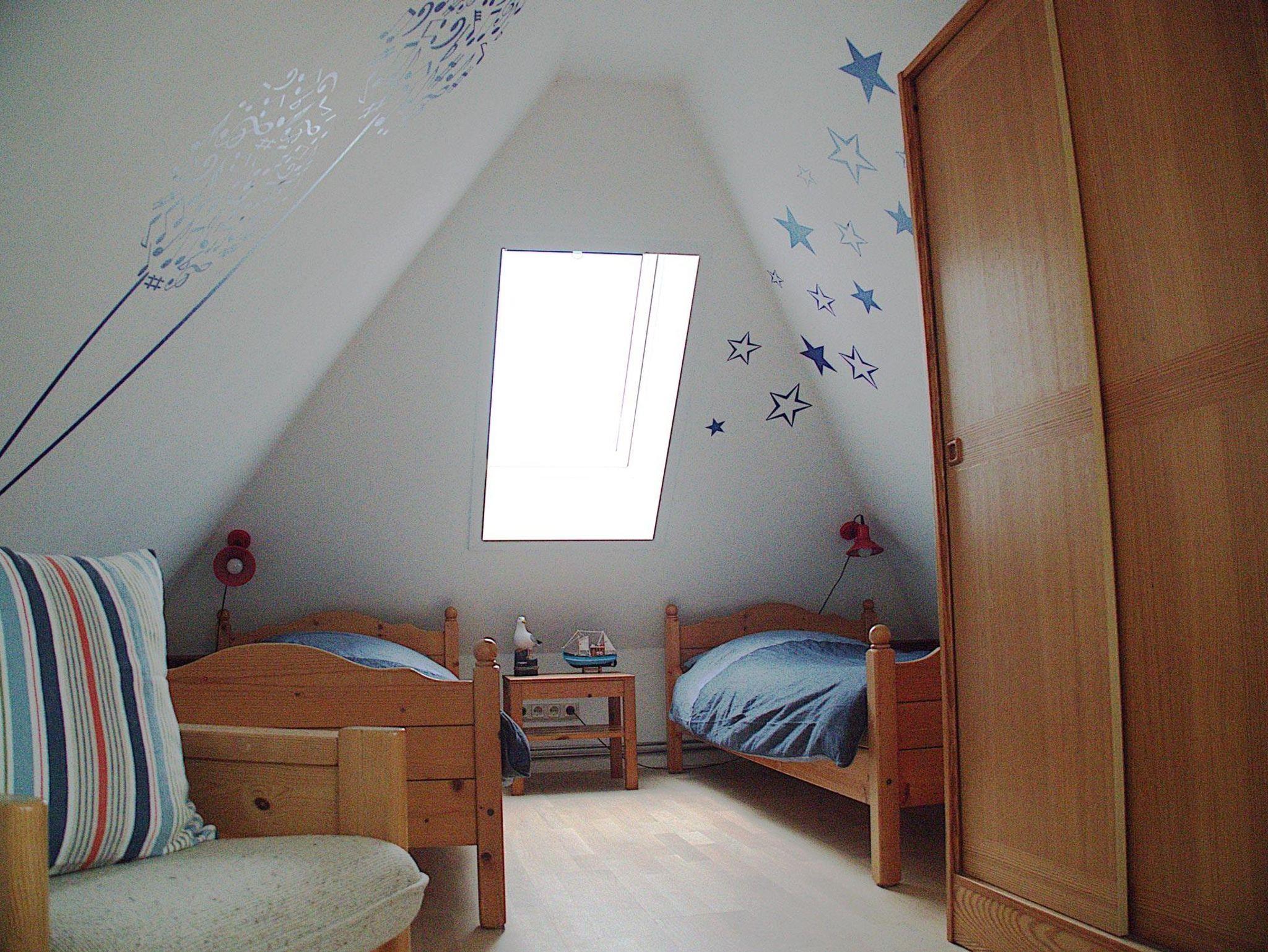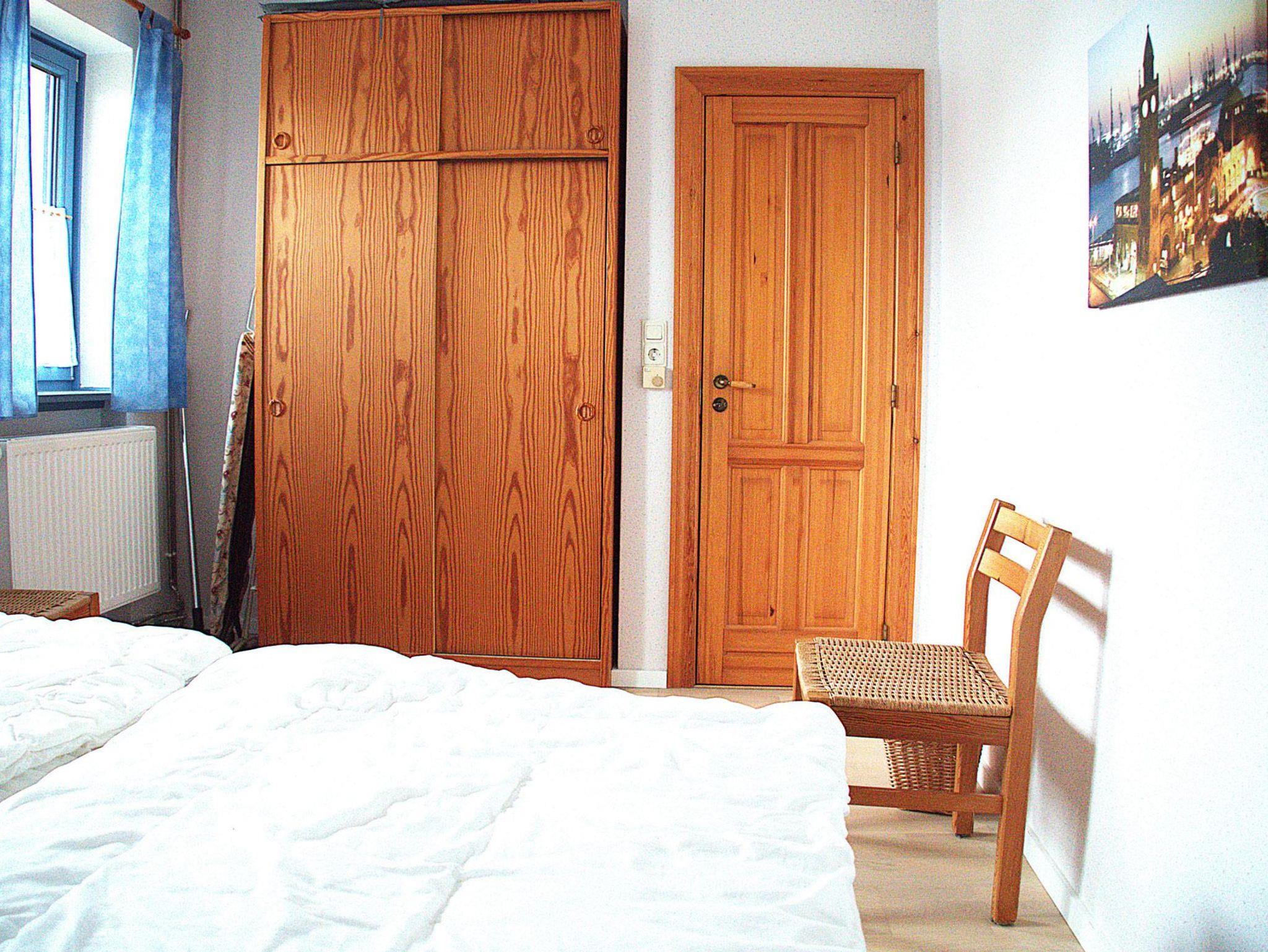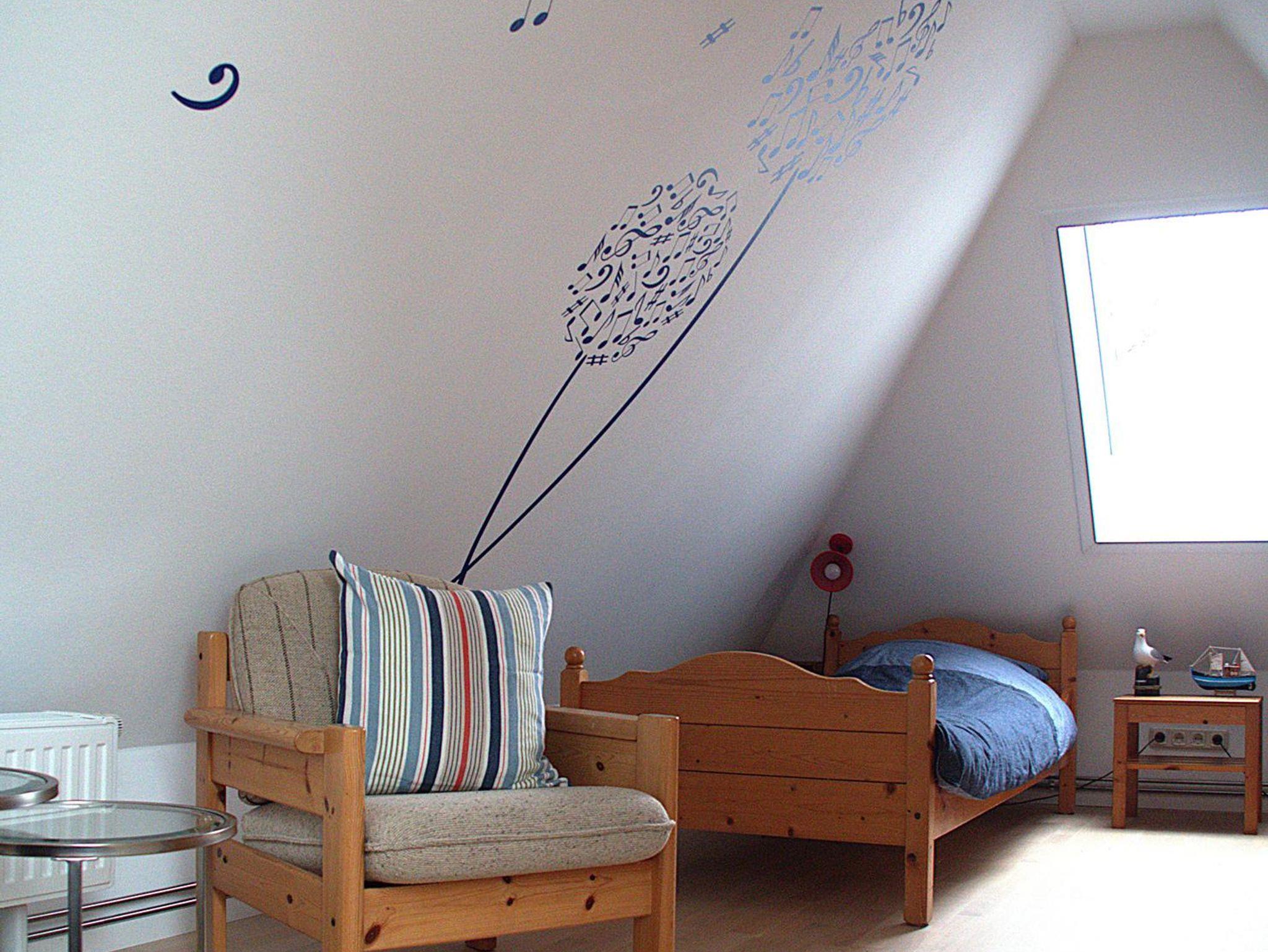 Die Wohnung Rico im Obergeschoß verteilt sich über 2 Etagen auf 75qm. Im Obergeschoß finden Sie einen Wohnschlafraum mit Schlafcouch, Sitz- und Essecke, dänischem Kaminofen, sowie eine sonnige Fensterfront mit Ausgang zum Balkon vor. Die Ferienwohnung ist im skandinavischen Stil mit einer separaten Küche, Insektenschutzfenstern, einem Duschbad, sowie einem separatem WC ausgestattet. Ein Schlafzimmer mit einem Doppelbett läst zum Schlummern ein. Ein weiterer Schlafraum mit 2 Einzelbetten und Kindergitter (ein dritter Schlafplatz wäre hier möglich), einem Couchtisch und zwei Sesseln ist über die Wendeltreppe im Dachgeschoß erreichbar. Bettwäsche und Handtücher sind auf Anfrage mietbar.