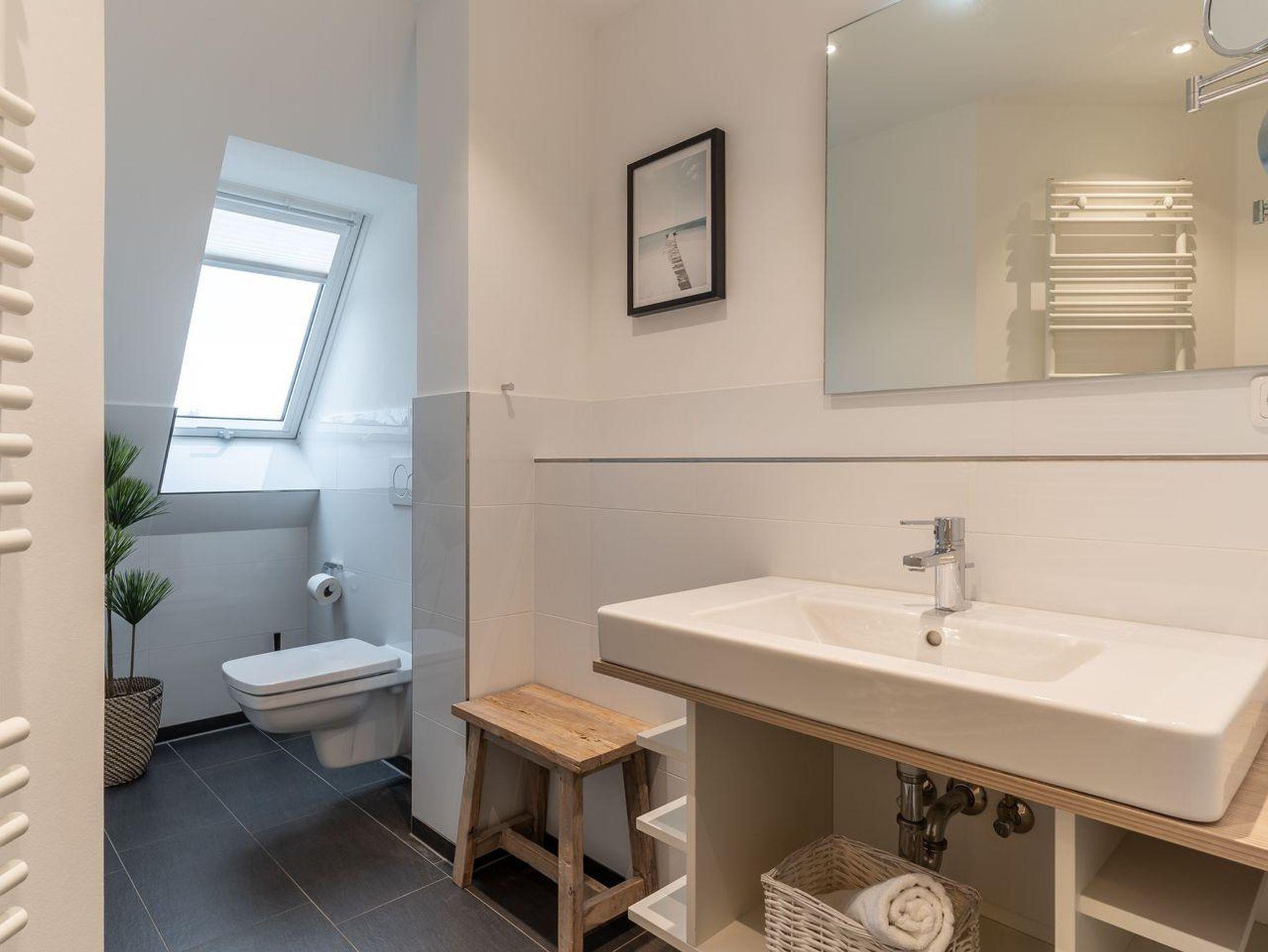 Fußläufig ist der Seedeich in wenigen Schritten erreicht und Spazierwege durch den Dünengürtel führen zum Sandstrand Abschnitt Ording. Das Kurzentrum im Ortsteil Bad mit Geschäften, Restaurants und Cafés, der Dünentherme und Therapieeinrichtungen ist mit dem Fahrrad in 5-10 Minuten zu erreichen.