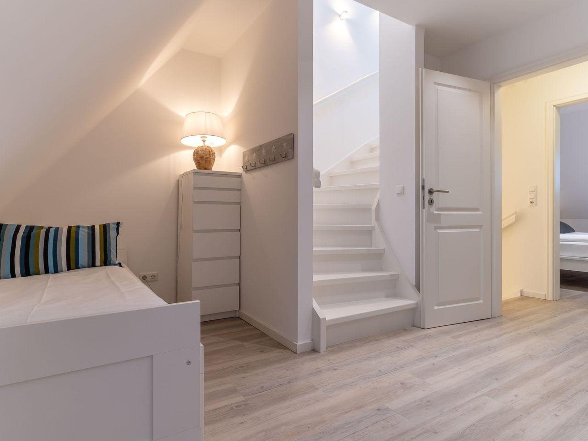 Die luxuriöse Mittelhausscheibe mit Garten, gemütlicher Terrasse und traumhaften Blick über den Deich befindet sich direkt am Ordinger Hauptstrand. Das Haus verfügt über ca. 84 m² Wohnfläche und teilt sich wie folgt auf: Im Erdgeschoss befindet sich der Wohnraum mit einer offenen Wohnküche und einem gemütlichen Essbereich. Ein Elektrokamin im Wohnraum bietet ruhevolle Entspannung. Die Küche ist mit hochwertigen Geräten und edlem Geschirr voll ausgestattet. Im Erdgeschoss ist ebenso ein Gäste WC, ein Flur mit Garderobe, ein Abstellraum unter der Treppe und Hauswirtschaftsraum mit Waschmaschine. Über eine Holztreppe gelangt man in das Obergeschoss mit zwei großzügigen Schlafzimmern, eines mit einem Doppelbett und das Andere mit 2 Einzelbetten. Ebenso ist im OG noch ein geräumiges Duschbad. Über eine weitere Holztreppe geht es vom Doppelzimmer der Einzelbetten ins Dachgeschoss mit gemütlichem Schlafsofa für 2 Personen. Hier kann man mit einem traumhaftem Weitblick bis zum Wasser herrlich entspannen oder übernachten. Mit viel Liebe zum Detail wurde großen Wert auf die Inneneinrichtung gelegt. Das ganze Haus verfügt über große Fenster und somit ist jeder Raum herrlich lichtdurchflutet.