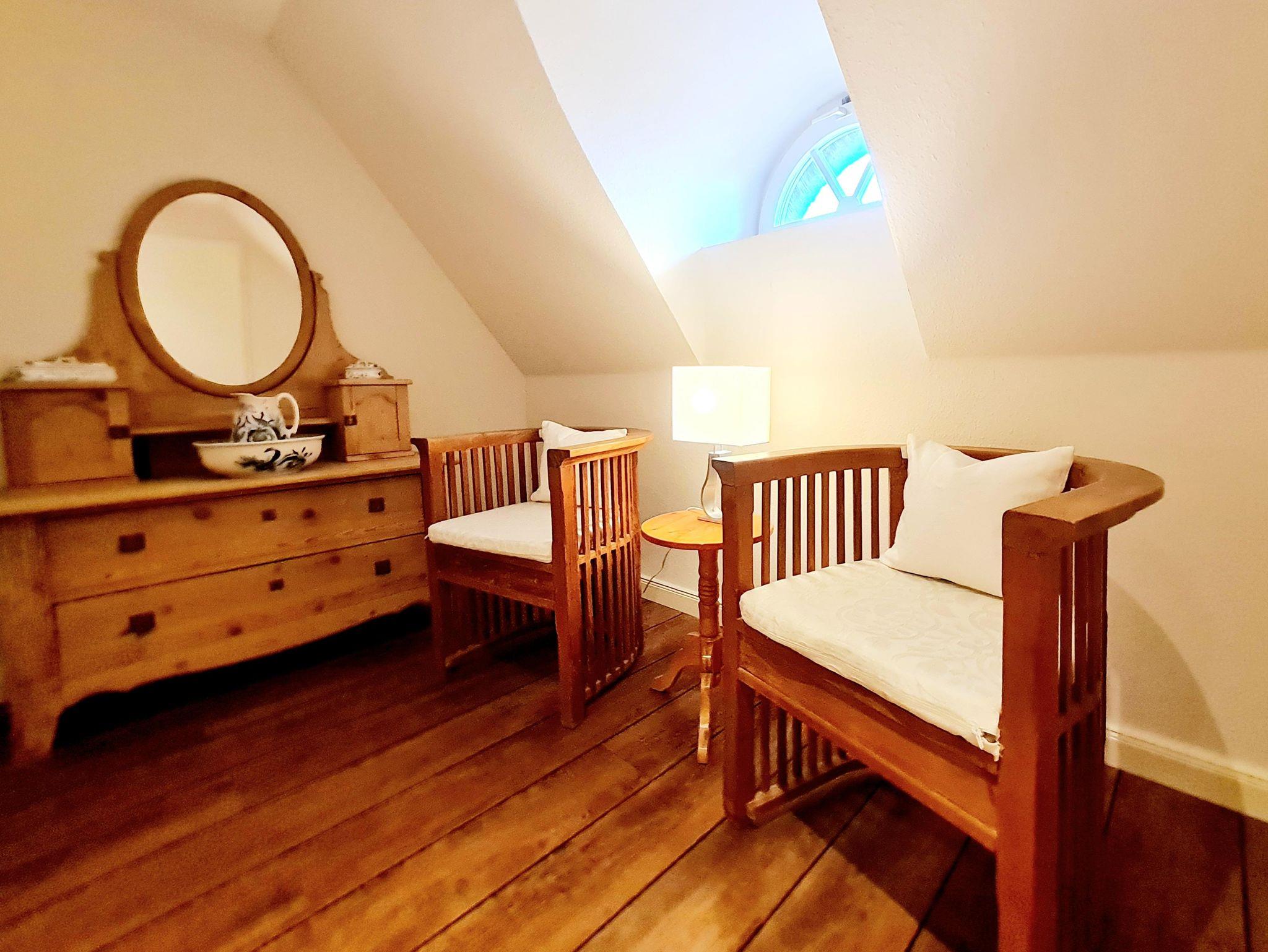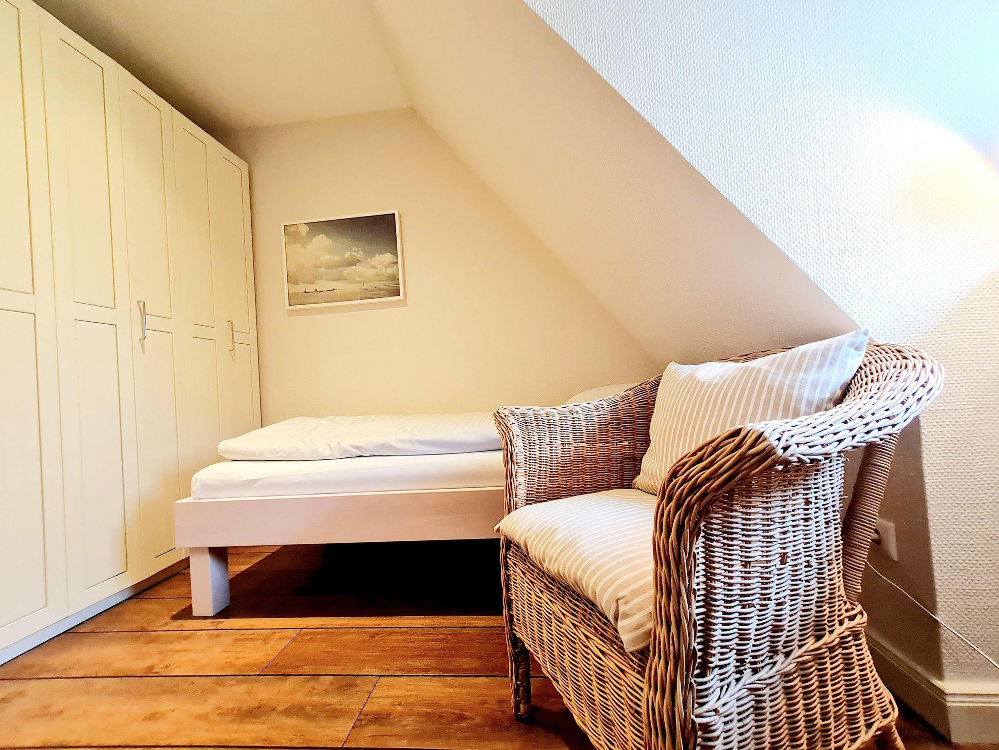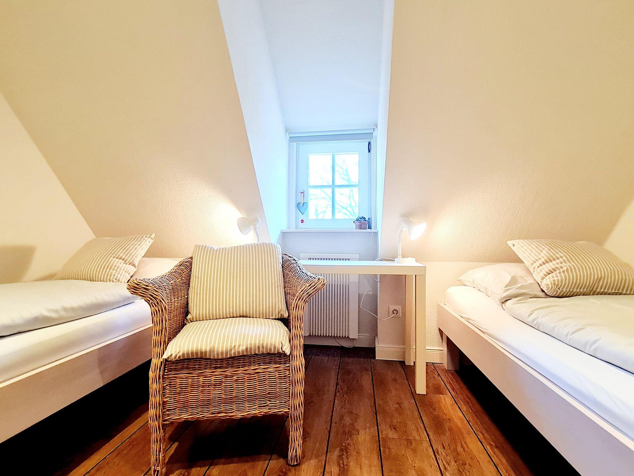 Das Schlafzimmer mit 2 Einzelbetten lädt zu gemütlichen Träumen unter Reet ein.
