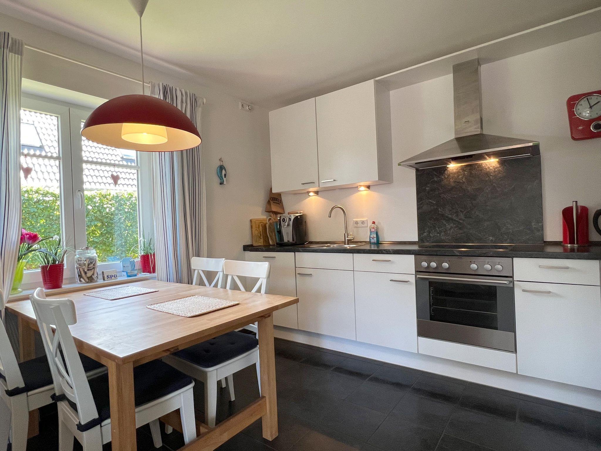 Die schöne, offene Küchenzeile ist u.a. mit Cerankochfeld, Backofen, Spülmaschine und einer Senseo-Kaffeemaschine bestückt. Ein zweiten Kühlschrank und ein Gefrierschrank finden sie im Abstellraum.