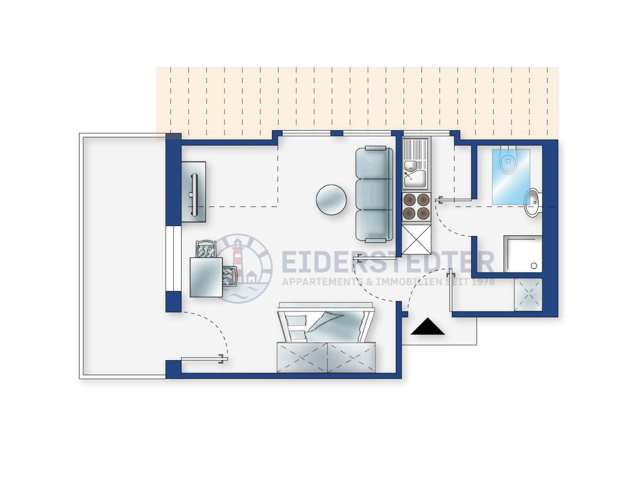 Gemütliches Studio-Appartement mit ca. 25 m² auf 1 Ebene (1. OG) für bis zu 2 Personen. In absolut zentraler Lage an der Einkaufsstraße im Ortsteil Dorf in St. Peter-Ording. Alle Einkaufsmöglichkeiten und Restaurants befinden sich buchstäblich vor der Haustür. Zum Norseedeich und Strandübergang sind es nur wenige Gehminuten. Ideal für alle, die im Urlaub aktiv sein möchten.