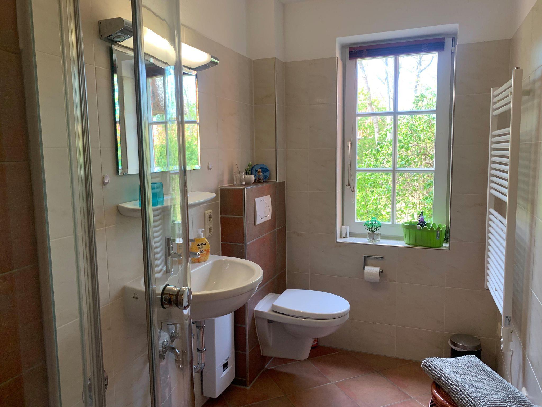 Bad: Dusche, Waschbecken, WC, Duschkabine, Spiegel