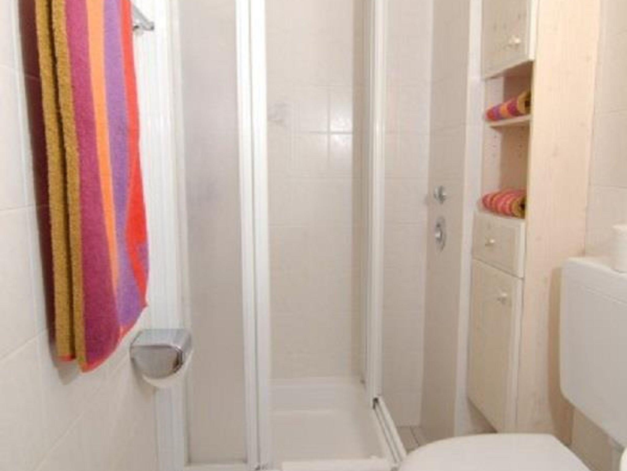 Bad: Dusche, Waschbecken, WC, Spiegelschrank, Schrank