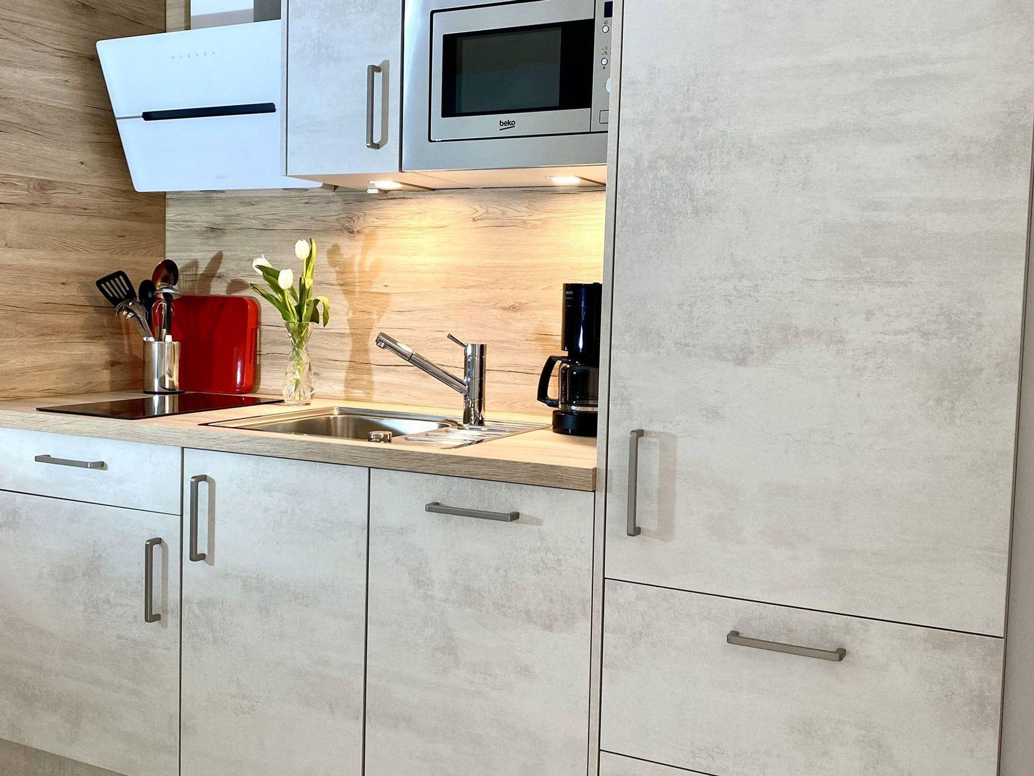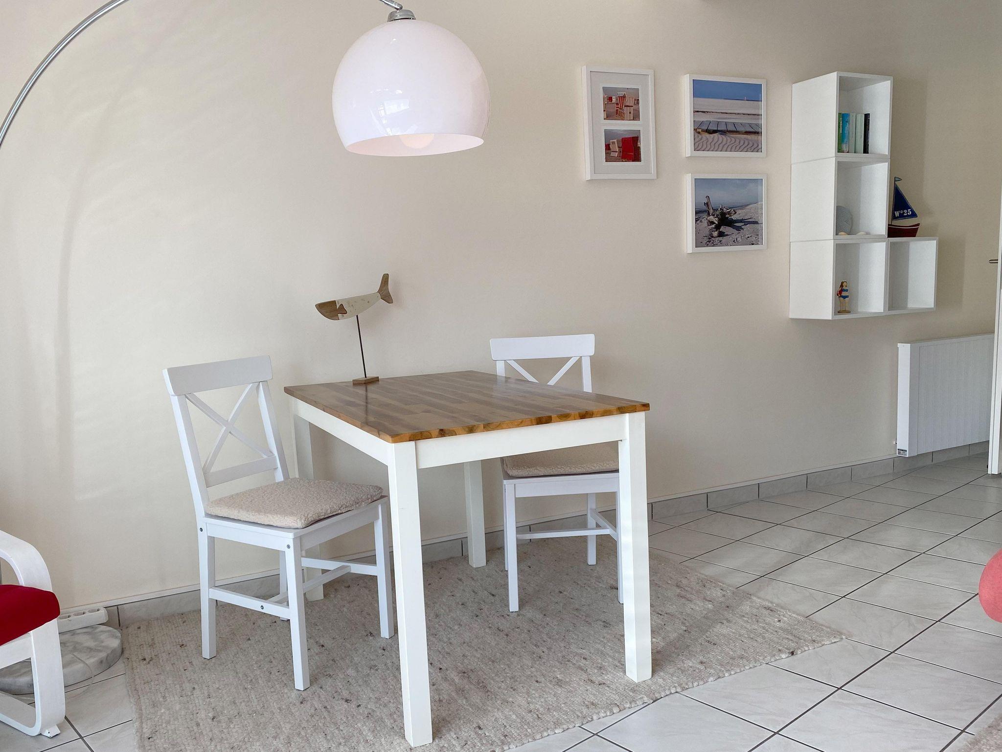 Die 2-Raum-Wohnung Utlande Nr. 34 bietet Ihnen eine farbliche schön gestaltete Unterkunft für bis zu 2 Personen im 1. OG. Der Fußboden ist in der gesamten Wohnung mit schönen Fliesen verlegt. Die Küchenecke lädt mit 4-Plattenherd und Backofen zum Kochen und Backen ein. Die Spülmaschine hilft Ihnen danach weiter. Es erwartet Sie ein renoviertes, modernes Bad. Auf dem großzügigen Süd-Balkon können Sie etwas Nordseeluft schnuppern.