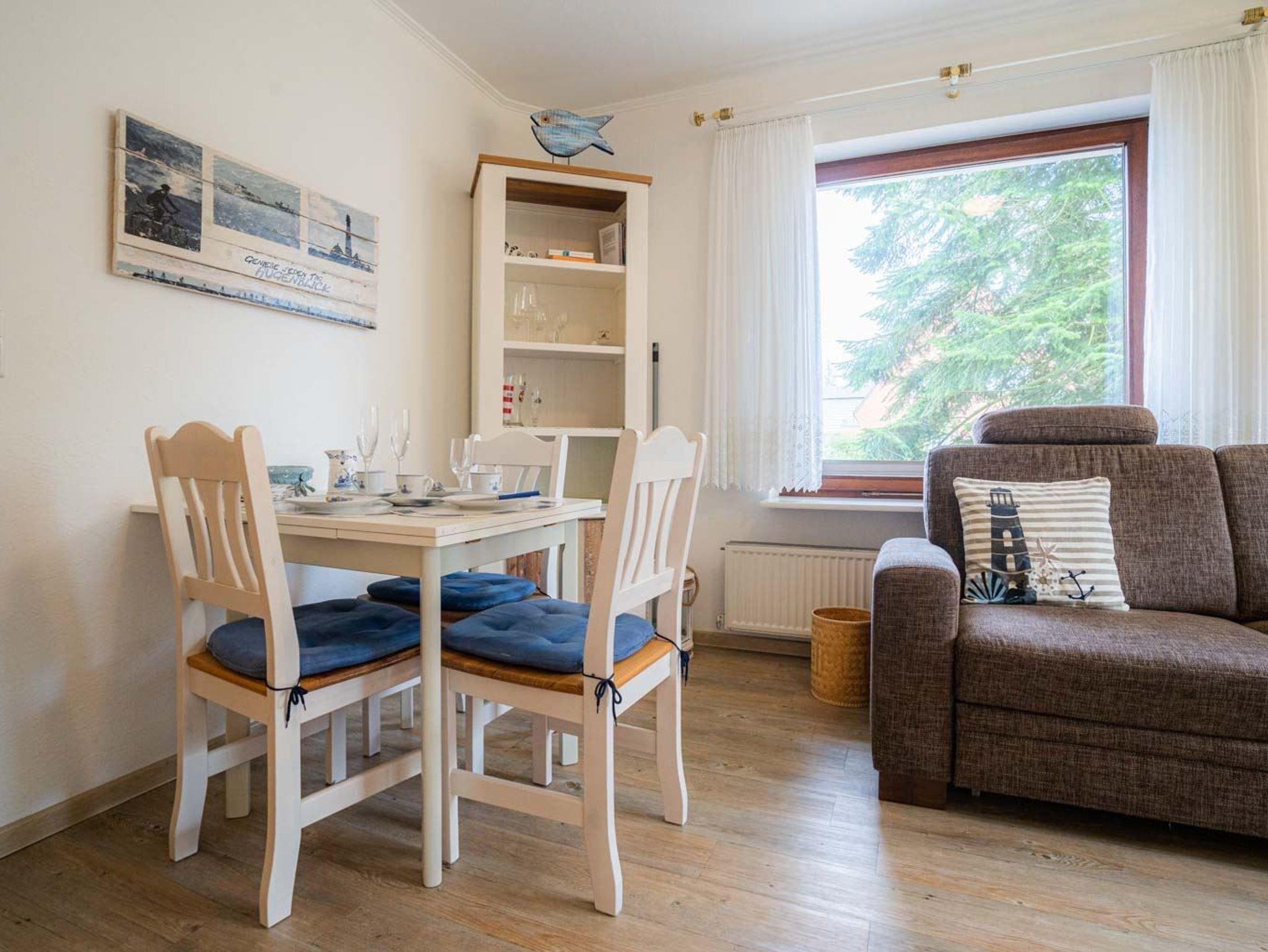 Gemütliche, einfache 2-Zimmer-Ferienwohnung Lotsenkajüte im Haus Seewolf mit ca. 41 m² auf 1 Ebene (EG) für bis zu 3 Personen. In ruhiger Lage nahe der Einkaufsstraße im Ortsteil Dorf in St. Peter-Ording. Alle Geschäfte, Restaurants und Bäckereien sind fußläufig bequem erreichbar. Zwei Hunde sind nach Anmeldung herzlich willkommen.