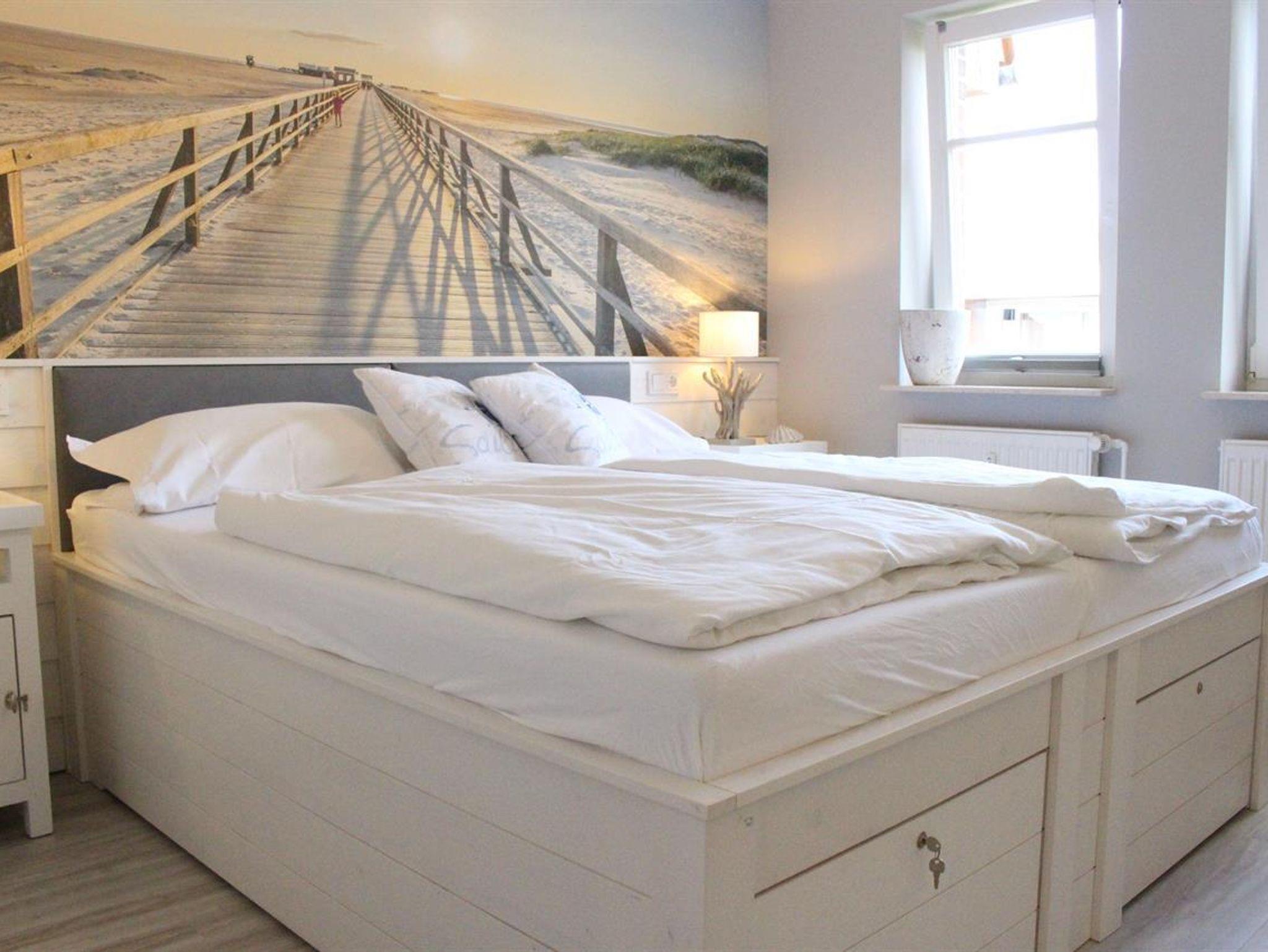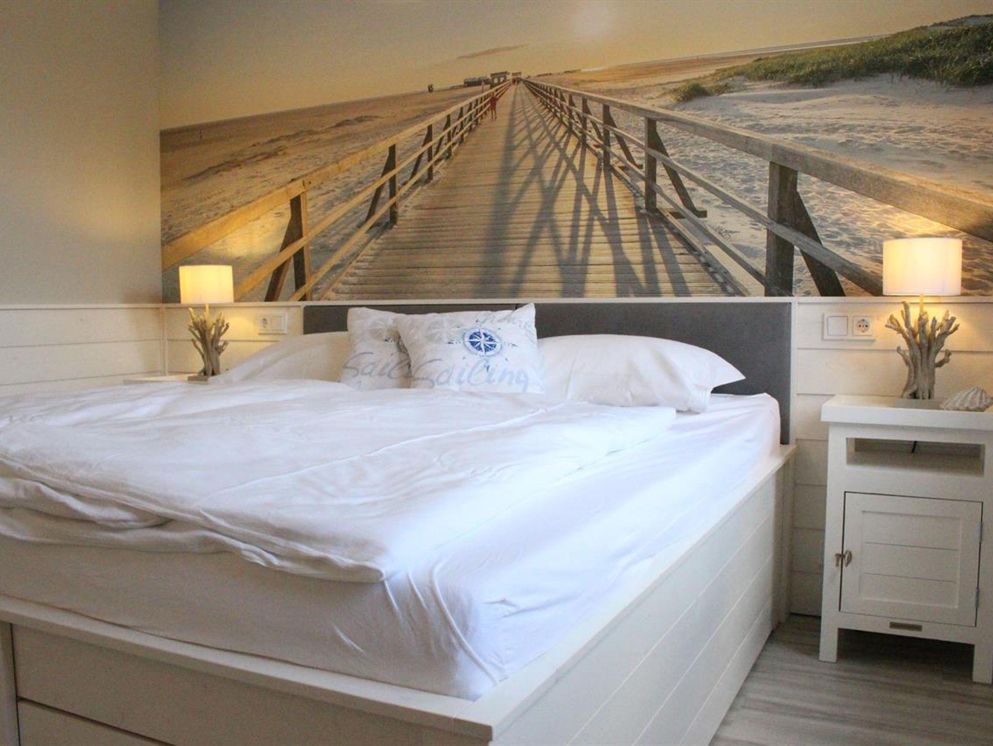 Das Schlafzimmer soll Ihnen das Gefühl geben, als wären sie noch am Strand. Riechen Sie noch die frische, jodhaltige Nordseeluft ? Glücksgefühle sollen sich einstellen, um einen erholsamen Schlaf zu haben…