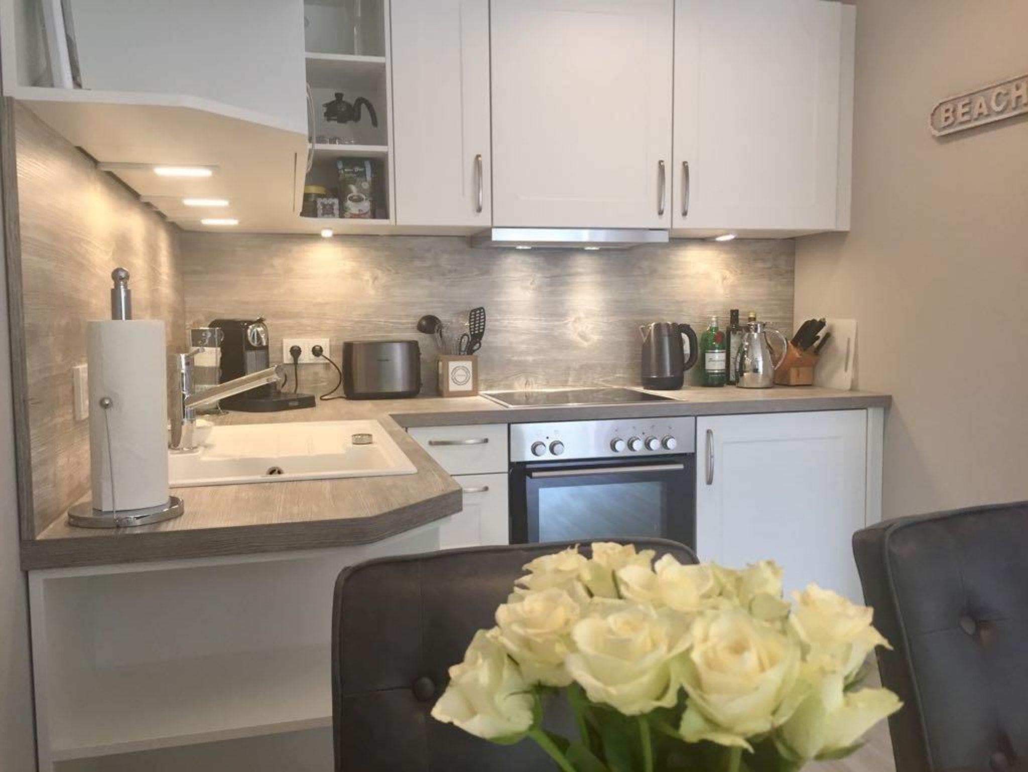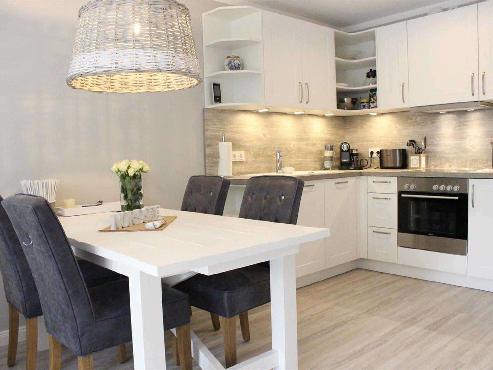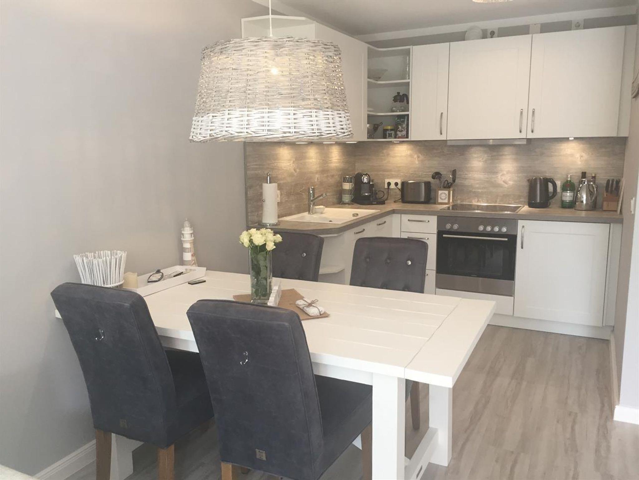 Es gibt eine neue, moderne Einbauküche ( Baujahr 2017),der Herd hat ein 4-Platten-Ceranfeld, eine extra leise Dunstabzugshaube, eine sehr leise Geschirrspülmaschine, Kühlschrank mit Tiefkühlfach, eine Nespresso Maschine, dem Trend und der Umwelt zuliebe kann man natürlich frischen Kaffee filtern, Wasserkocher, Toaster, Geschirr, Besteck, Gläser für jeden Anlass, Haushalts- und Kochutensilien, Kochtöpfe, Pfanne, Messerblock uvm.
