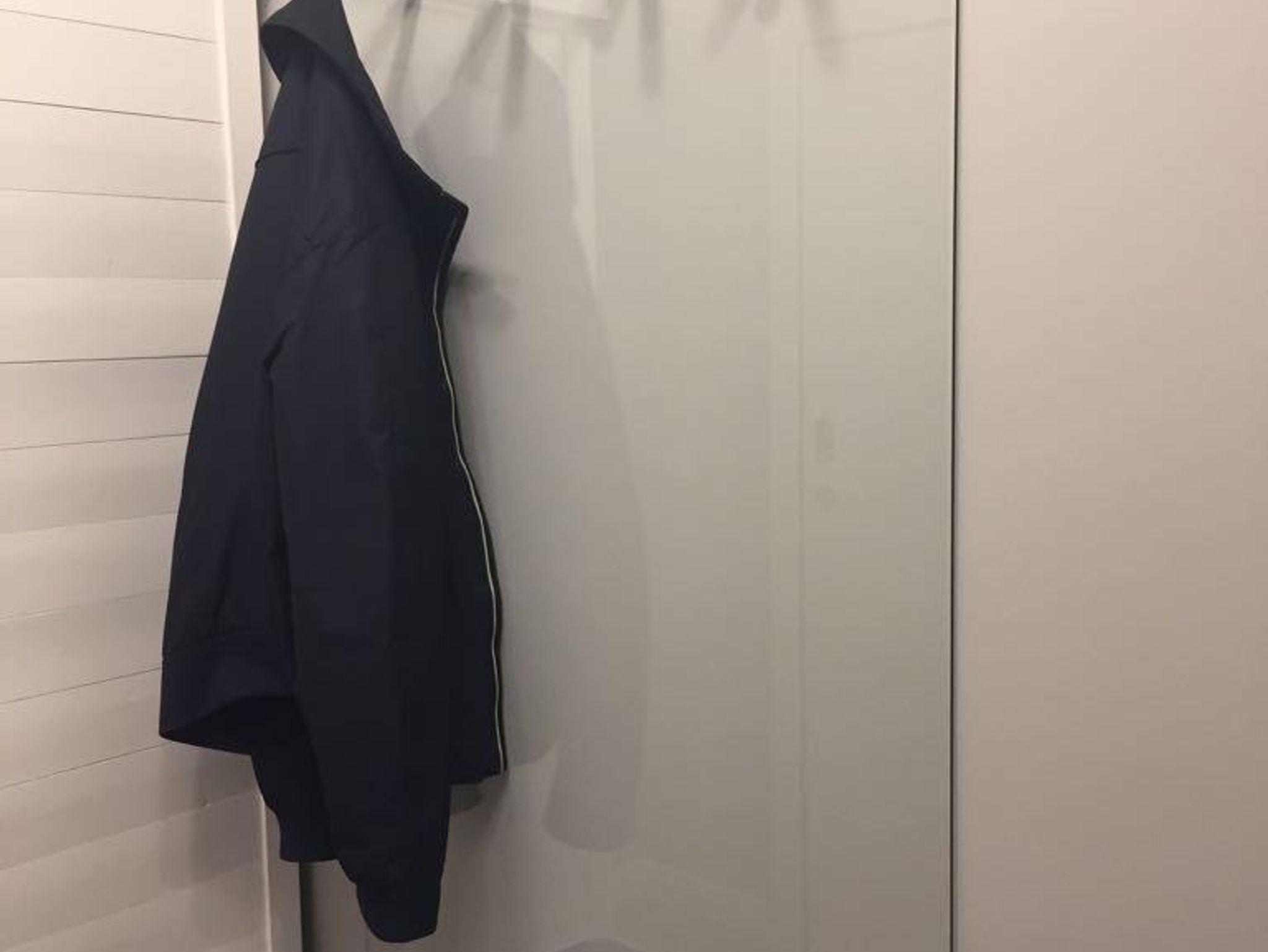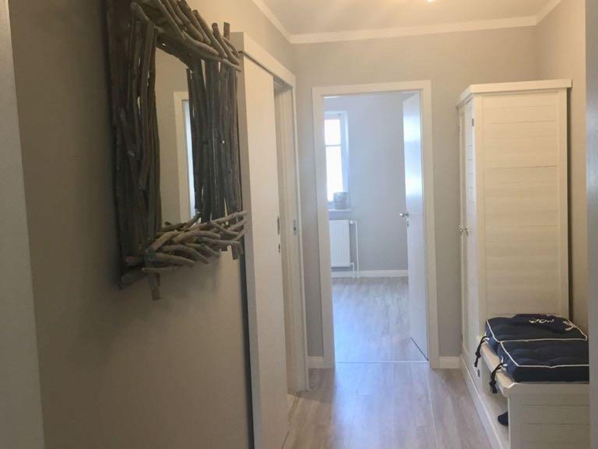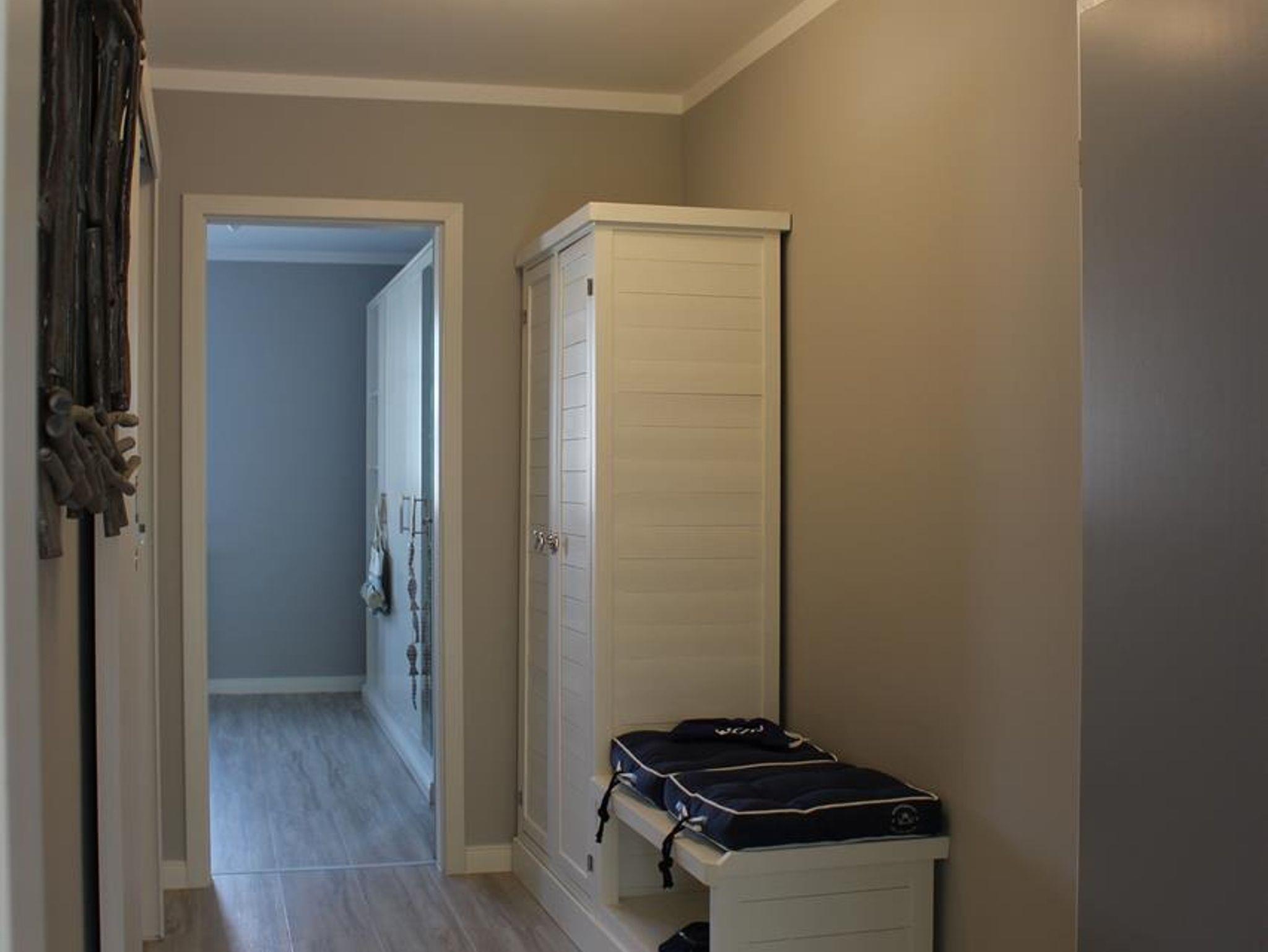Im Flur sind eine Garderobe, Spiegel, Deckenlampe, ein Schrank von ocean house , ein Schirmständer und Staubsauger zu finden.