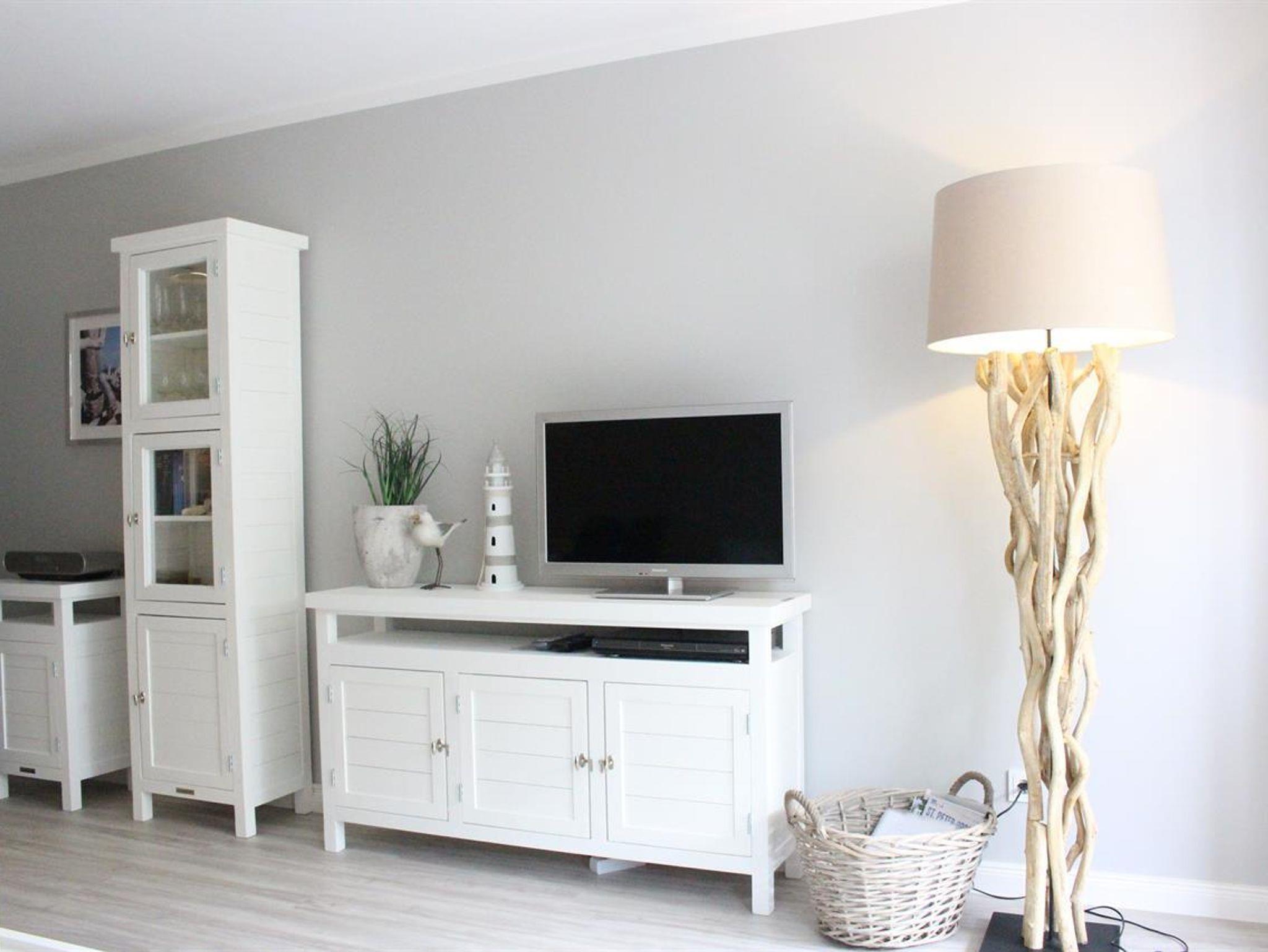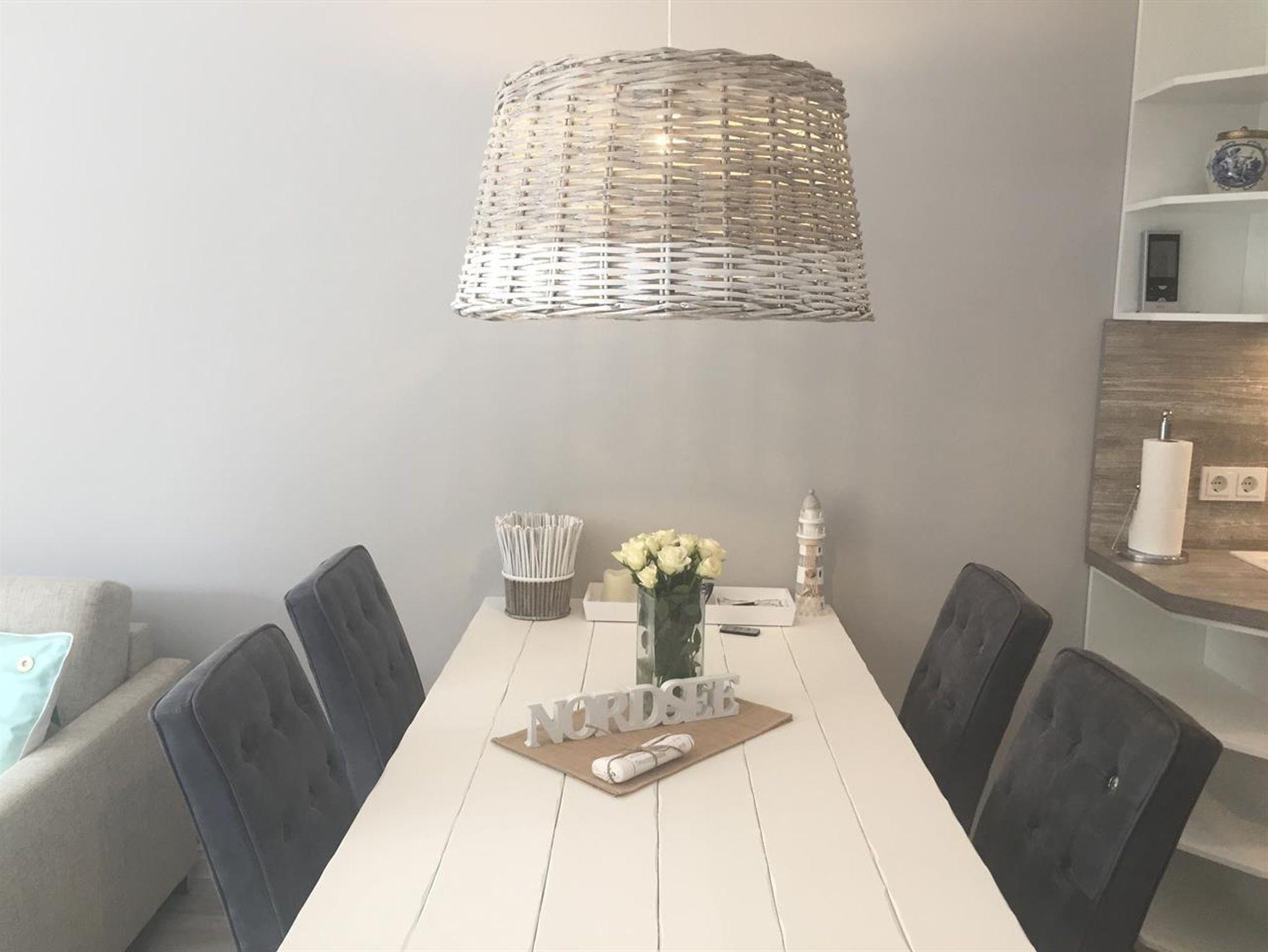 Im Wohnzimmer finden sie eine bequeme Schlafcouch (140 x 200 cm), einen Couchtisch, eine Stehlampe aus 'drift wood', eine große Deckenlampe, ein Sideboard und Regal von ocean house, einen großen Esstisch mit 4 Stühlen von Riviera Maison, Plissee's, ein Kabel-TV mit Flachbildschirm, ein Blu-ray/DVD-Player, eine DVD-Sammlung und ein Radio mit CD-Player (Sie können natürlich Ihre persönliche Musik via Bluetooth ab spielen)