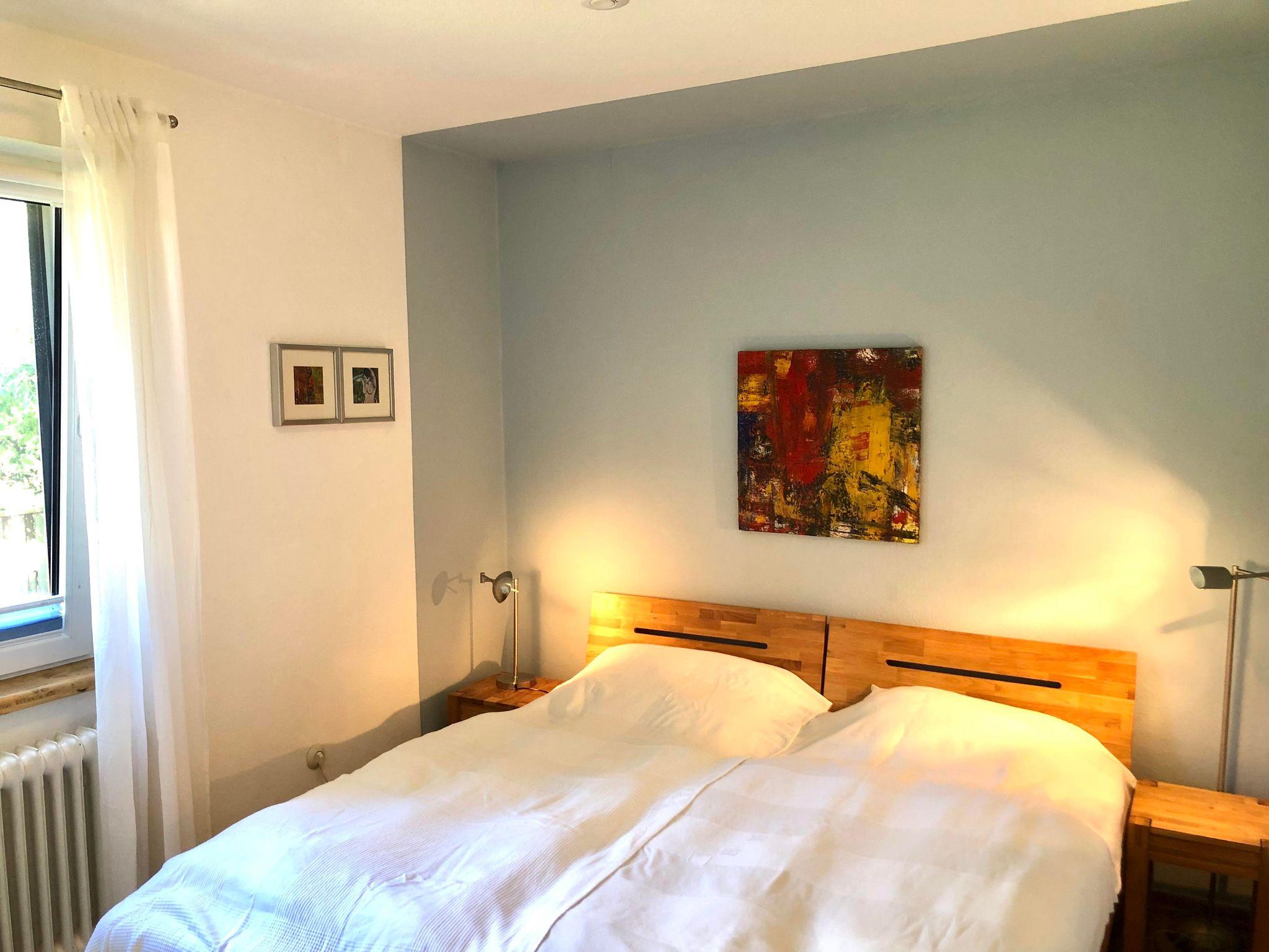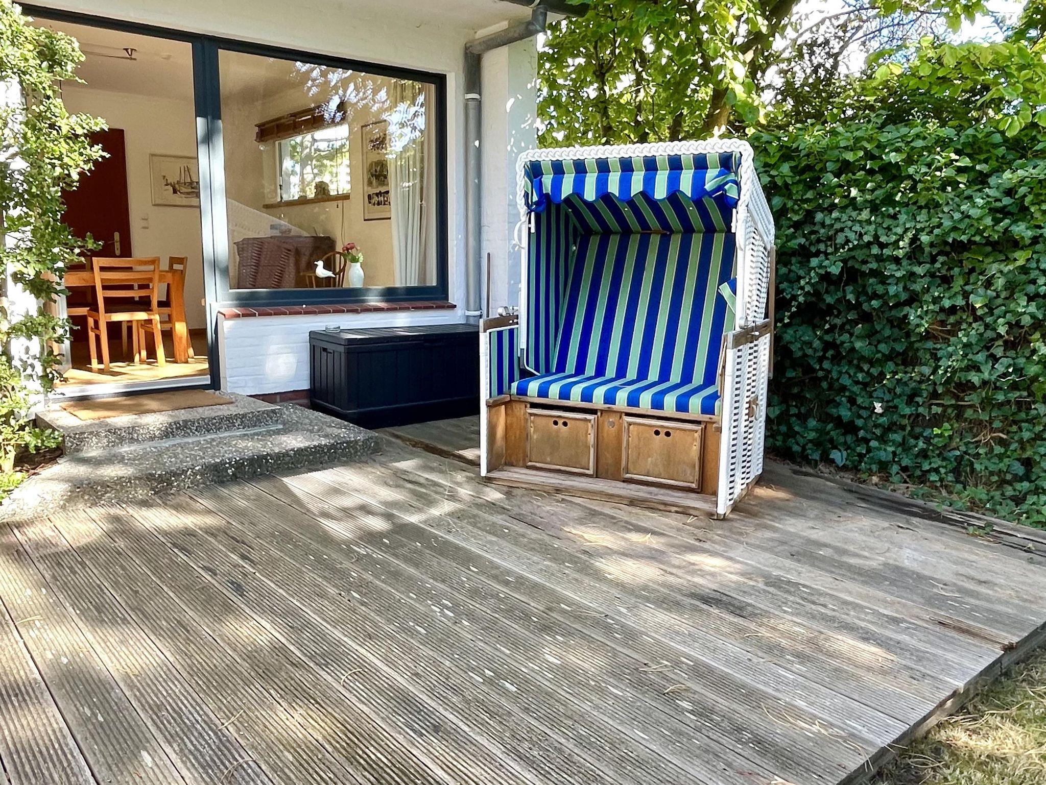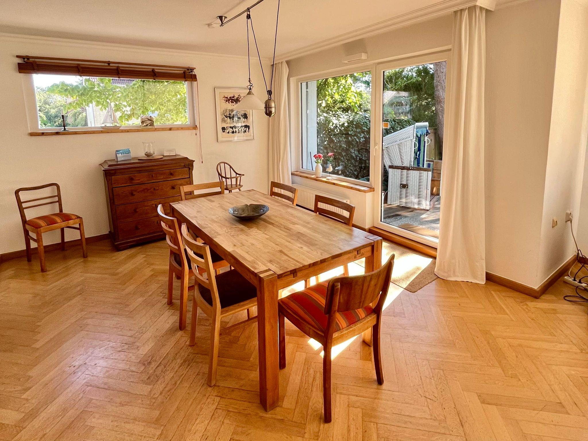 Die Whg. im EG - mit einem großen Wohnzimmer (inklusive Schlafsofa), zwei Schlafzimmern, Küche und Badezimmer - ist über 90 m2 groß. Zur Wohnung gehört eine große Terasse und es kann ein Stück des davor liegenden Gartens genutzt werden. Die Wohnung ist komfortabel ausgestattet: Einbauküche mit Backofen, extra Gefrierschrank, Spülmaschine, Waschmaschine, geräumiges Wannenbad, Föhn und Kosmetikspiegel; Kabel-TV, WLAN-Internetzugang, DVD-Player, Radio mit CD-Player, Terassenmöbel und Strankorb. Kinderbett und Hochstuhl werden auf Wunsch bereit gestellt.