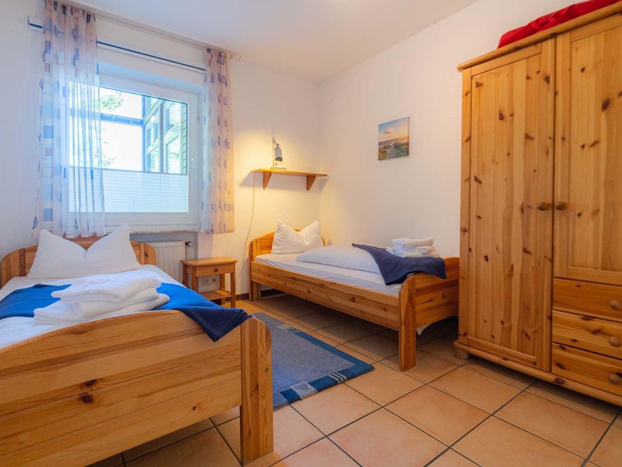 2. Schlafzimmer mit 2 Einzelbetten (je 90x200cm), Kleiderschrank und Hocker.