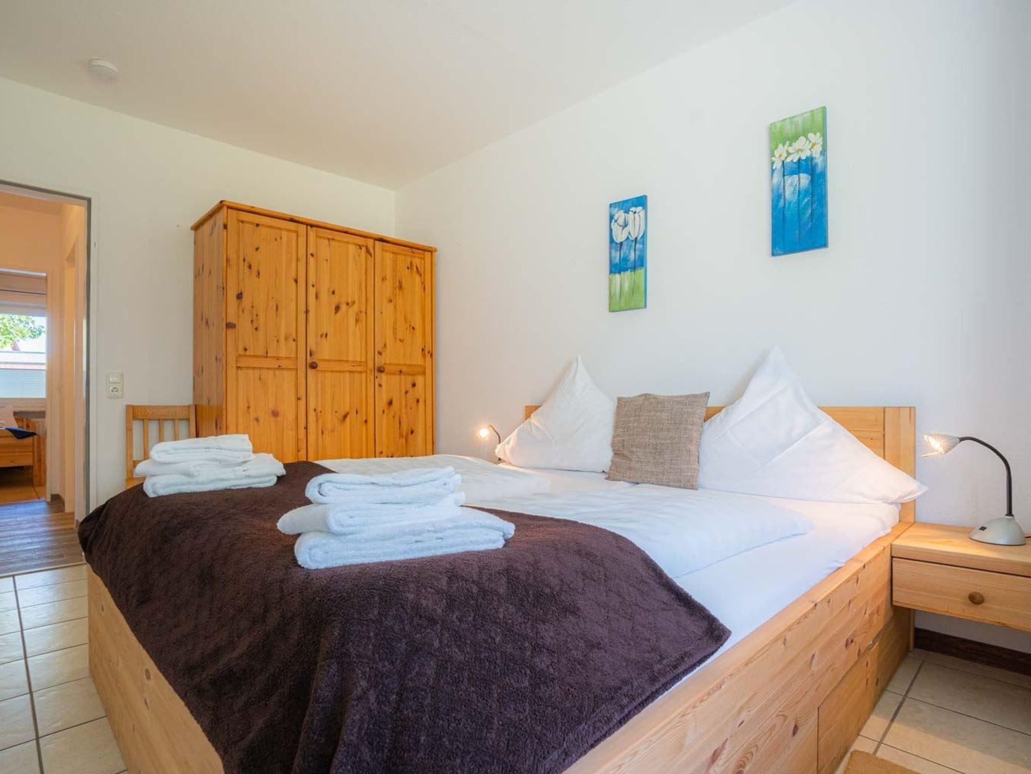 1. Schlafzimmer mit Doppelbett (2x 90x200cm), Kleiderschrank und 2 Stühlen.
