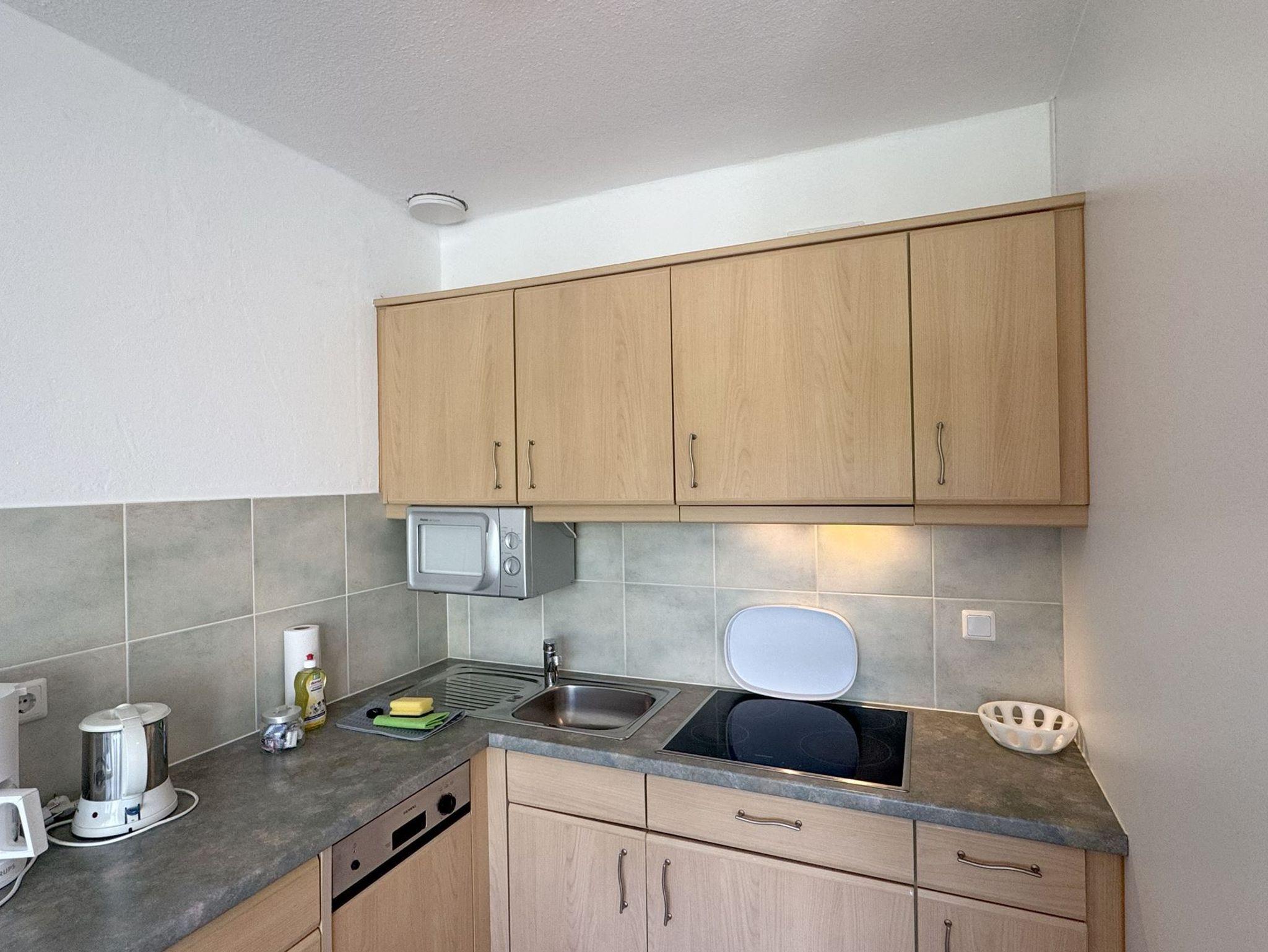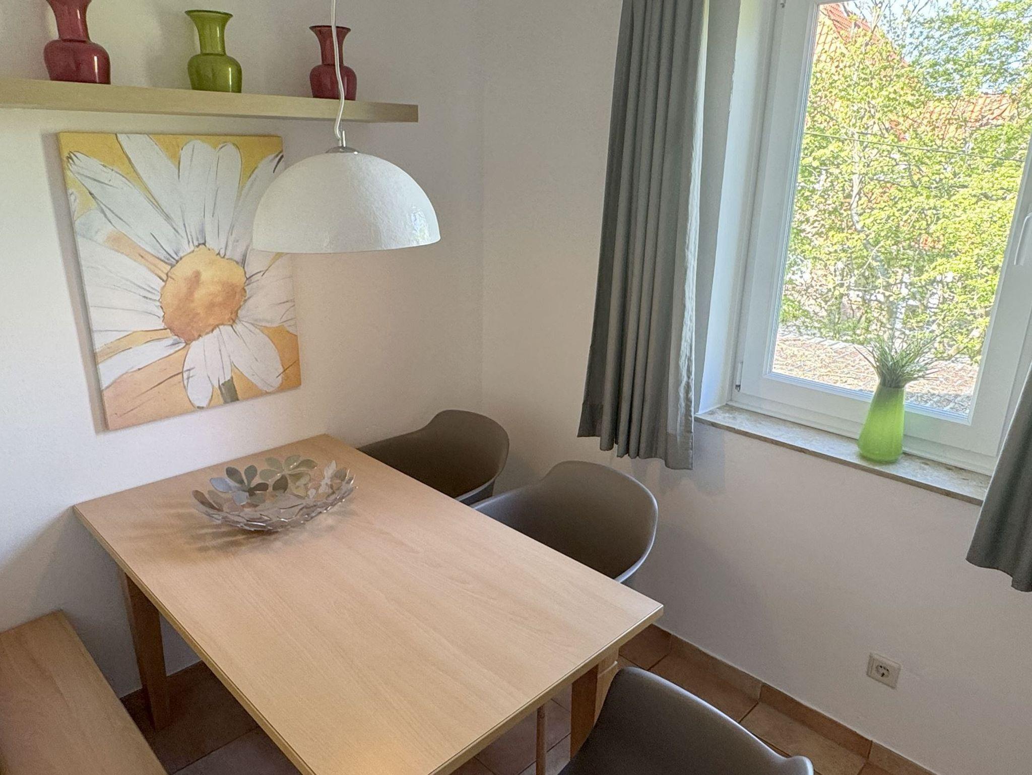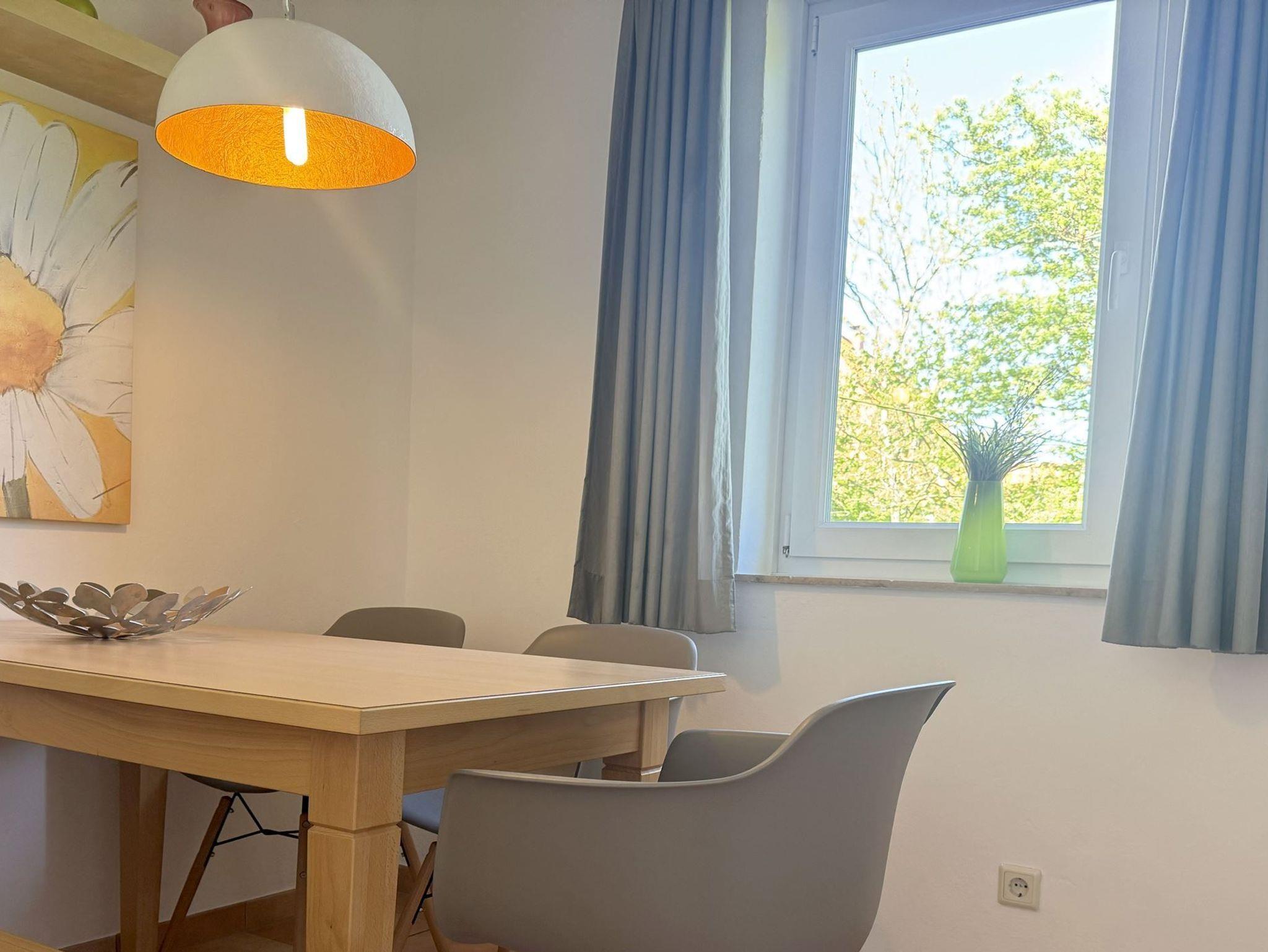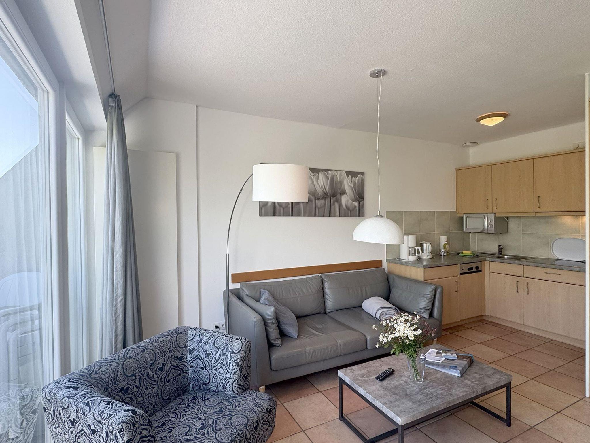 Die Wohnung 10 in der Anlage Luna I liegt im Obergeschoss des Hauses. Sie ist 70qm groß und geeignet für bis zu 5 Personen. Der Eingangsbereich ist mit einer Garderobe ausgestattet. Es gibt zwei Schlafzimmer mit Doppelbetten (180x200cm, getrennte Matratzen). In einem der beiden Schlafzimmer befindet sich zusätzlich ein Einzelbett für eine fünfte Person. Des weiteren sind zwei Duschbäder mit Waschbecken und WC vorhanden. Der Wohn-Essbereich verfügt über eine offene, umfangreich ausgestattete integrierte Einbauküche. Im Wohn-Esszimmer befinden sich ein Esstisch und ein Sitzbereich mit Fernseher. WLAN steht kostenlos zur Verfügung. Die Einrichtung ist modern und hochwertig. Die gesamte Wohnung ist durch ihren Bodenbelag mit Designerparkett und Fliesen geeignet für Allergiker. Vom Wohnbereich aus gelangen Sie auf den Balkon der Wohnung, der mit Gartenmöbeln ausgestattet ist und einen Blick in die wunderschöne Grünanlage mit Obstwiese bietet.