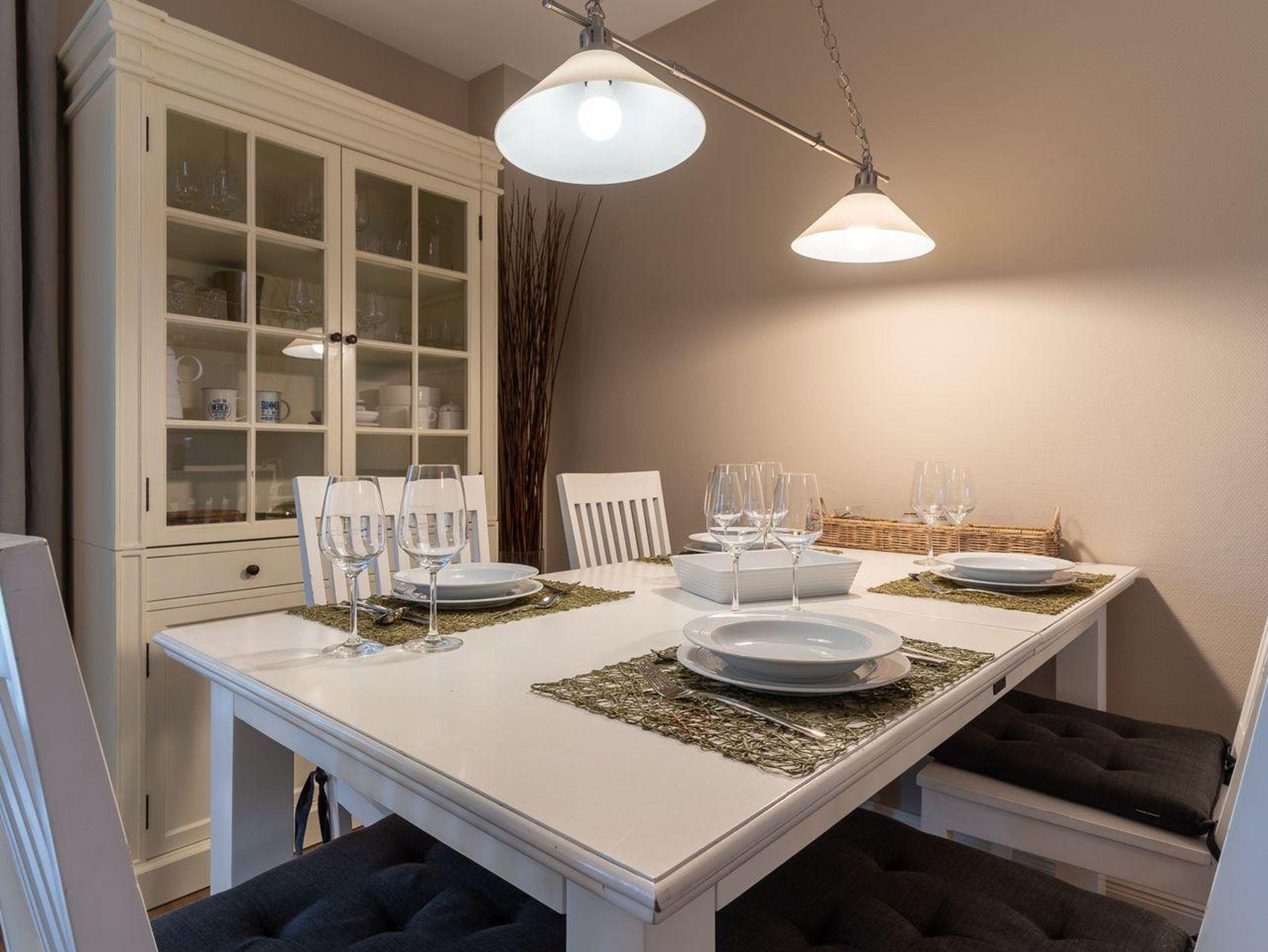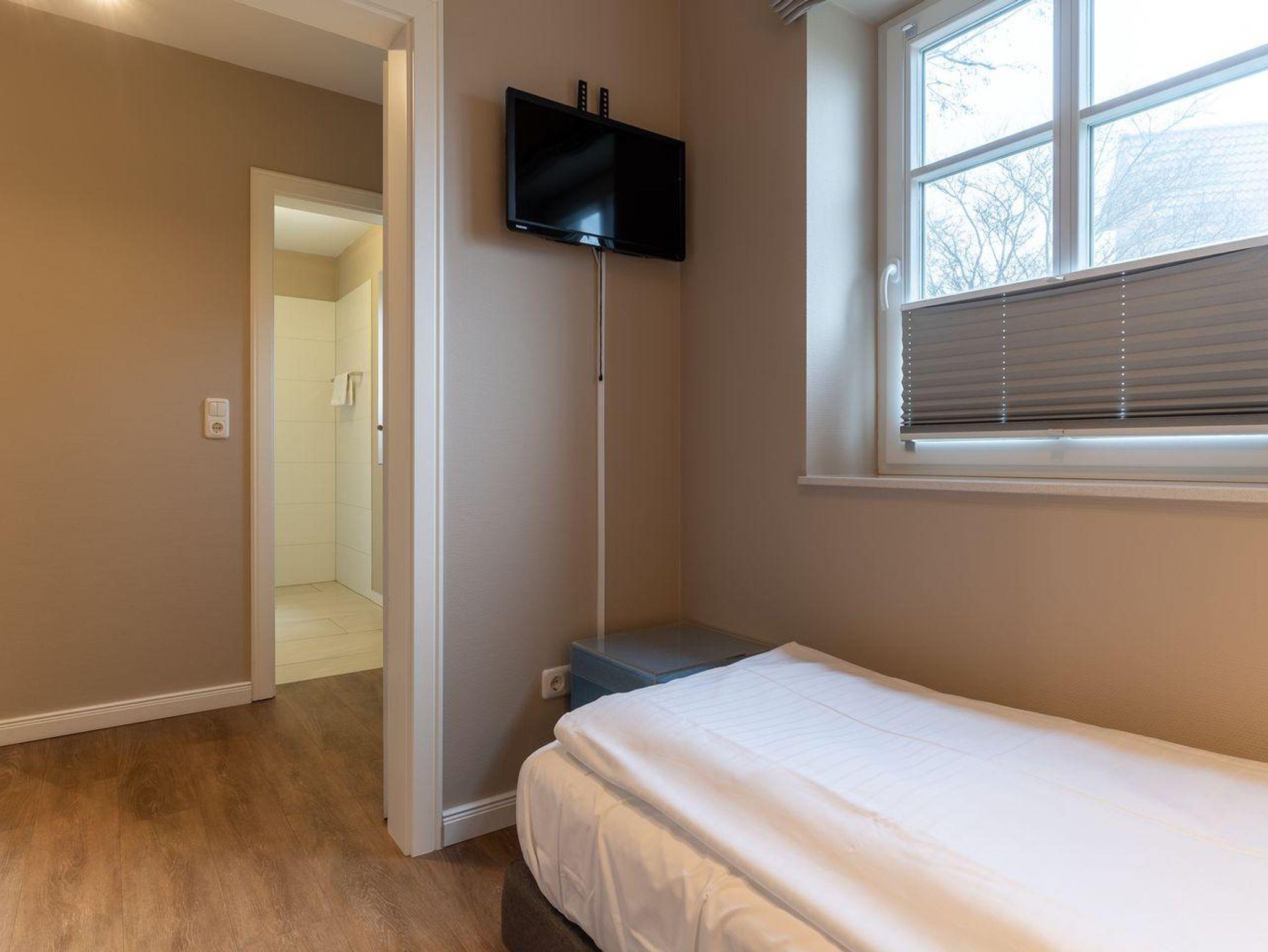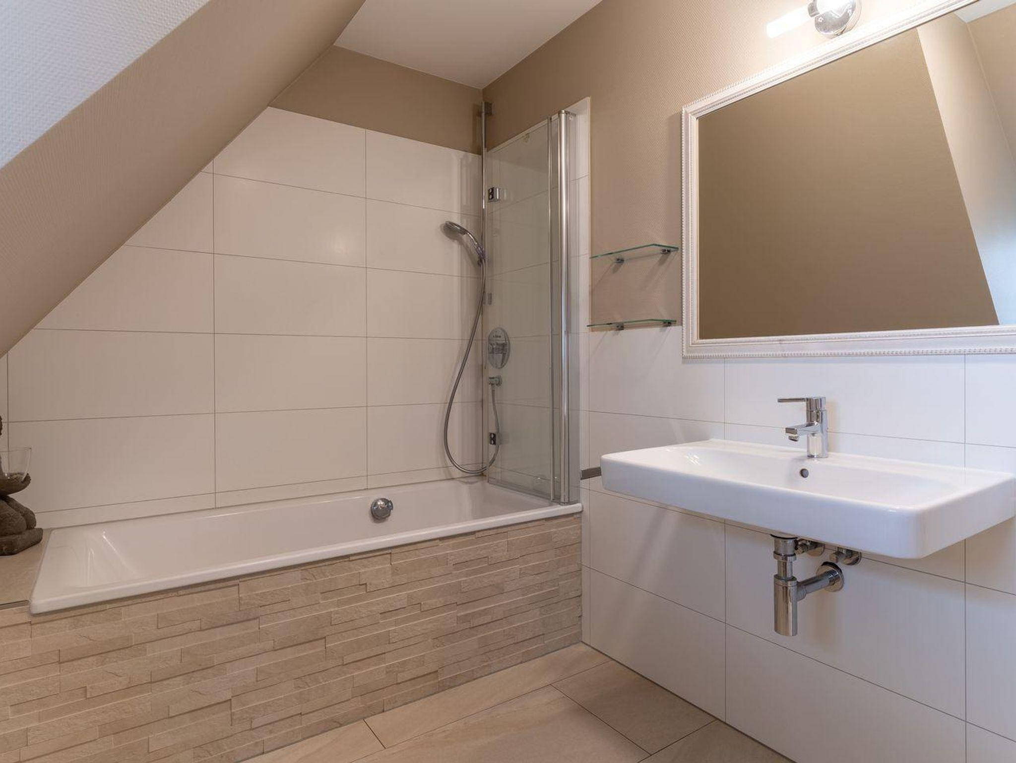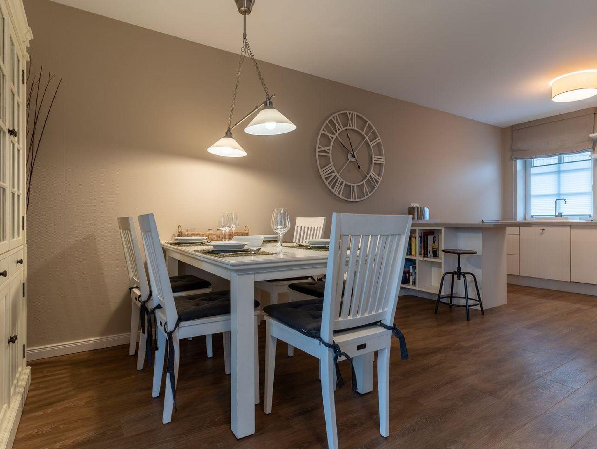 Im Erdgeschoss befindet sich der Wohnraum mit einer offenen Küche und einem gemütlichen Essbereich. Die Küche ist voll ausgestattet mit hochwertigen Geräten. Im Erdgeschoss ist ebenso ein großer Flur mit Garderobe, ein Duschbad und ein Chill-Out-Room mit TV. Wunderbarer Rückzugsort zum Lesen, TV schauen, Spielen oder Chillen. Das Sofa kann zu einem gemütlichen Schlafbett für 2 Personen umgebaut werden. Über eine Holztreppe im Flur gelangt man in das Obergeschoss mit zwei Schlafzimmern. Eines verfügt über ein 180er Bett mit TV und das andere über 2 x 90er Einzelbetten mit hochwertigen Matratzen (diese können auch zusammengeschoben werden). Außerdem ist im Obergeschoss ein Bad mit Badewanne. Beide Bäder verfügen über ein Fenster.