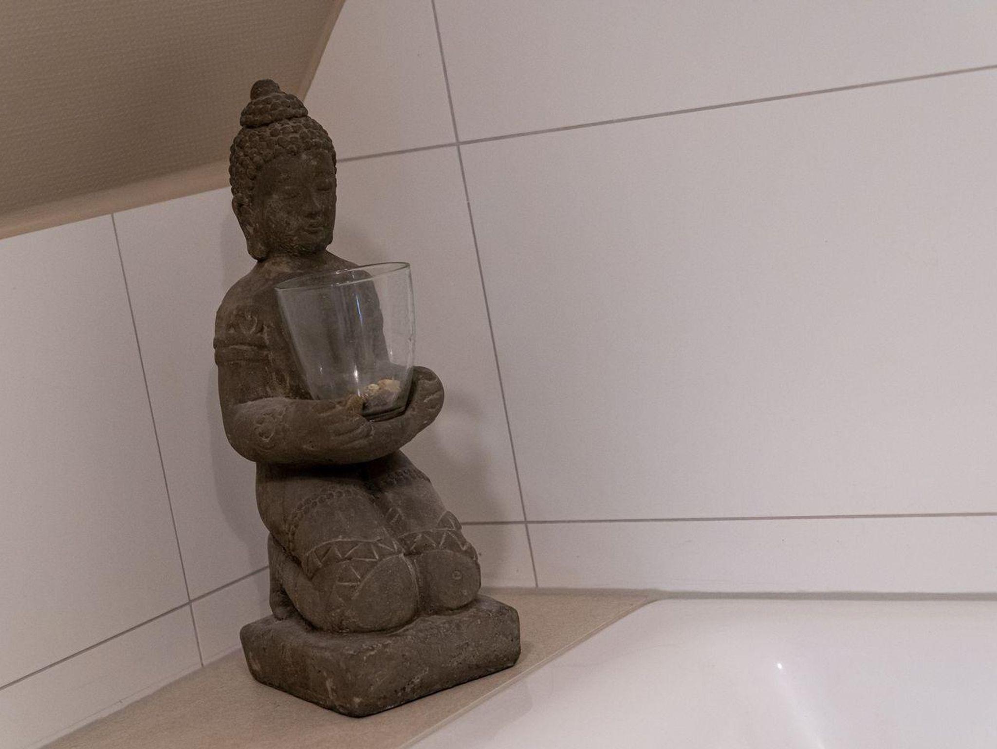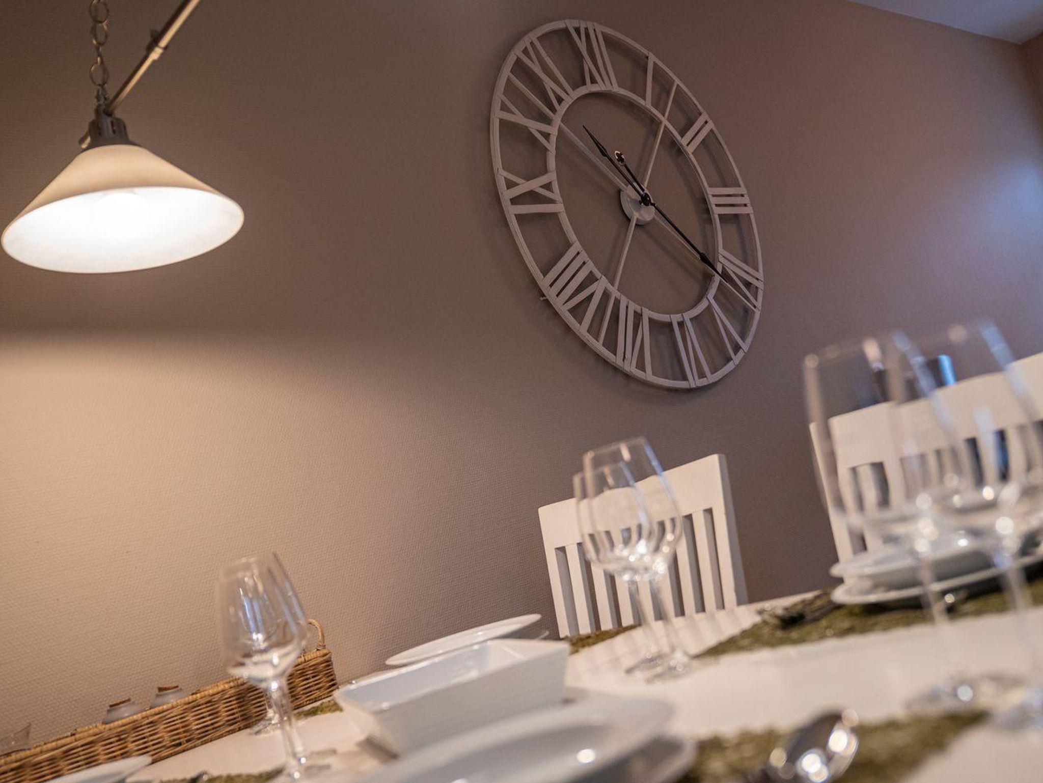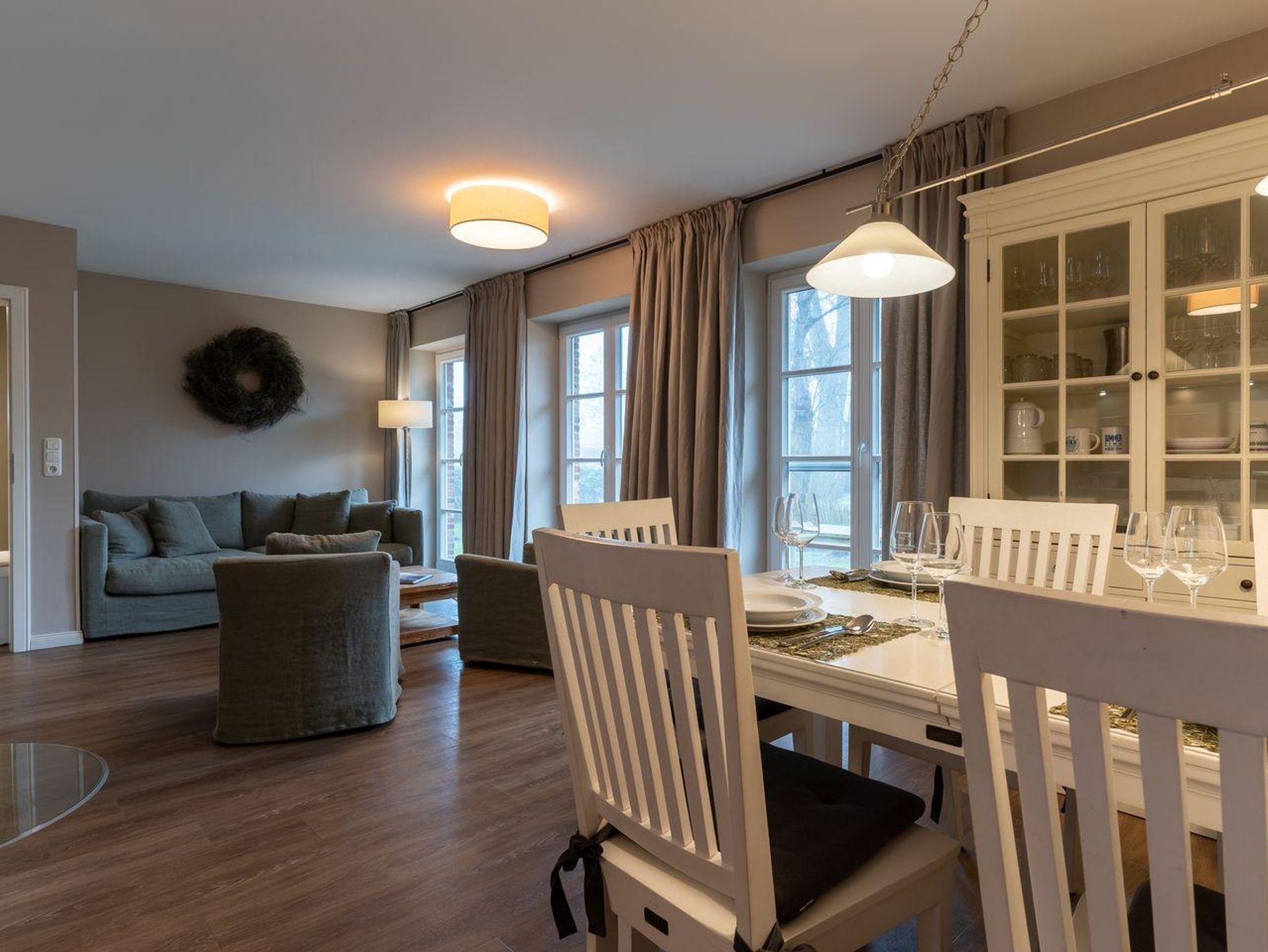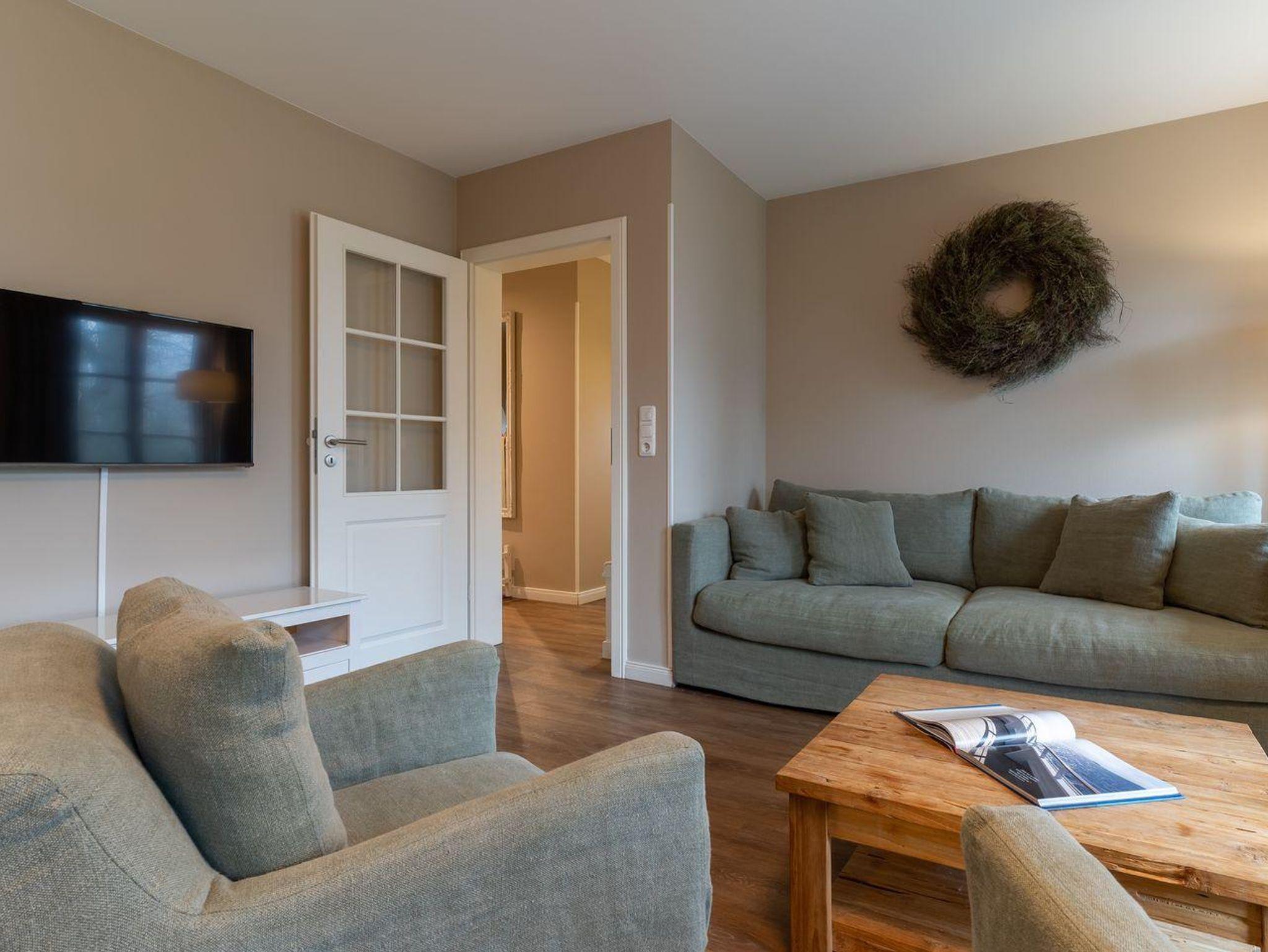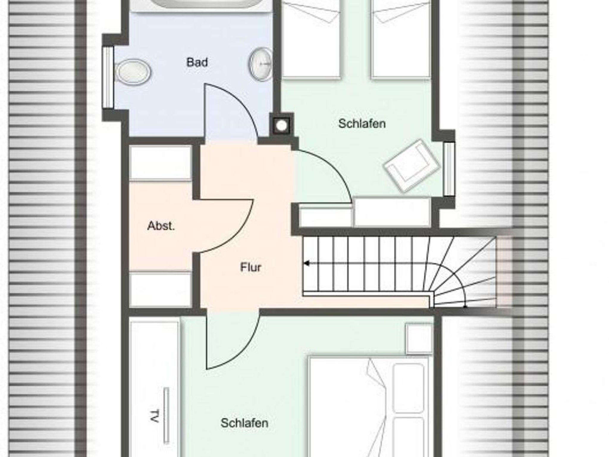 Im Erdgeschoss befindet sich der Wohnraum mit einer offenen Küche und einem gemütlichen Essbereich. Die Küche ist voll ausgestattet mit hochwertigen Geräten. Im Erdgeschoss ist ebenso ein großer Flur mit Garderobe, ein Duschbad und ein Chill-Out-Room mit TV. Wunderbarer Rückzugsort zum Lesen, TV schauen, Spielen oder Chillen. Das Sofa kann zu einem gemütlichen Schlafbett für 2 Personen umgebaut werden. Über eine Holztreppe im Flur gelangt man in das Obergeschoss mit zwei Schlafzimmern. Eines verfügt über ein 180er Bett mit TV und das andere über 2 x 90er Einzelbetten mit hochwertigen Matratzen (diese können auch zusammengeschoben werden). Außerdem ist im Obergeschoss ein Bad mit Badewanne. Beide Bäder verfügen über ein Fenster.