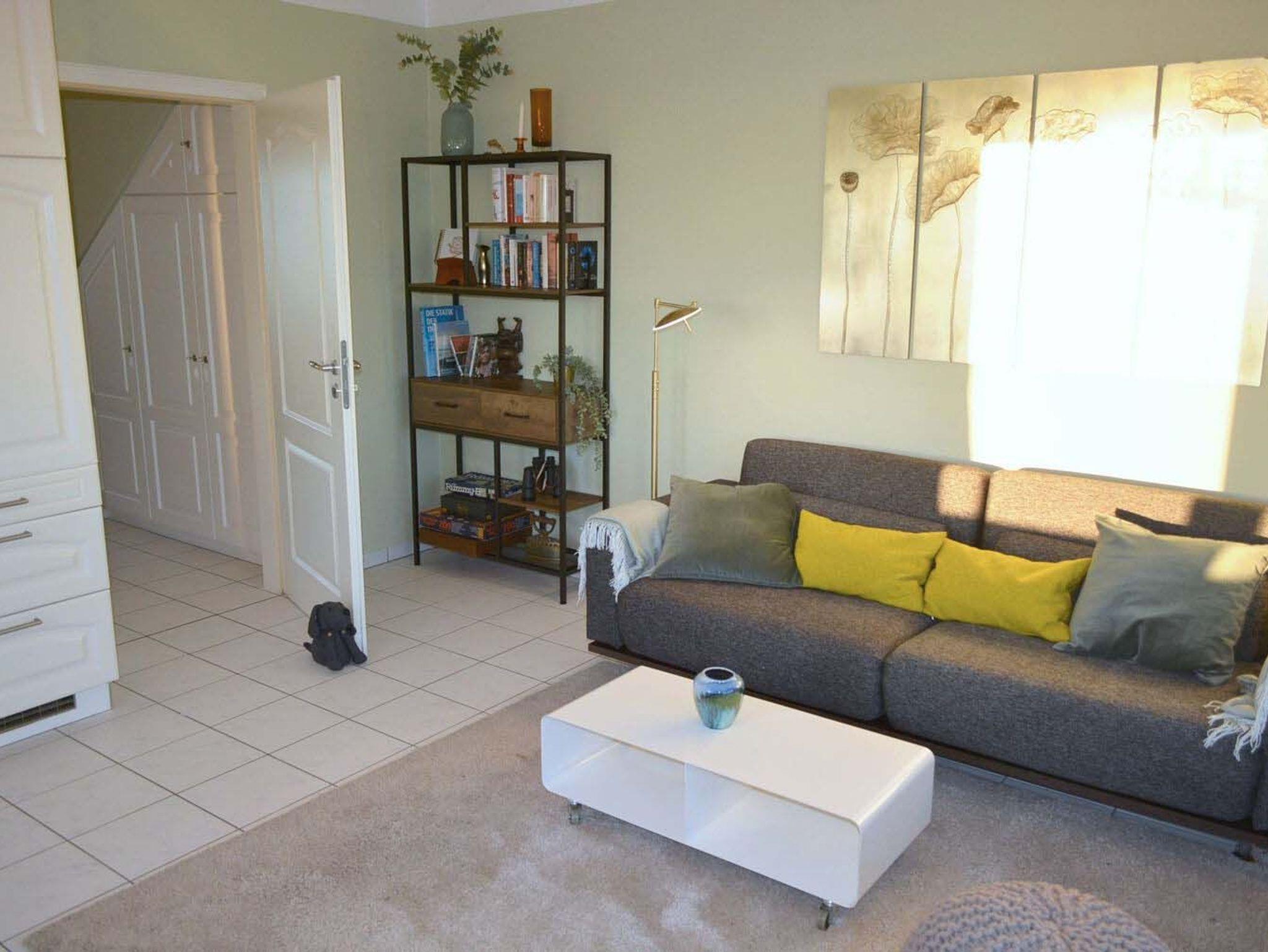 Wohnzimmer: 2 Stühle, 4 Plattenherd mit Ceranfeld und Backofen, Beistelltisch, Couch,