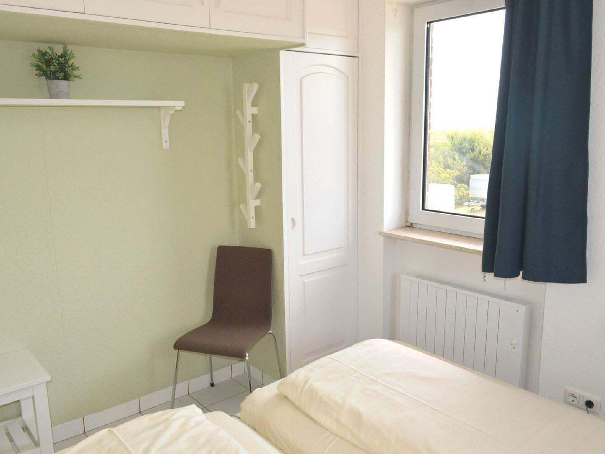 Schlafzimmer: 2 Ablagen, 2 Einzelbetten, E-Heizung, Einbaukleiderschrank,