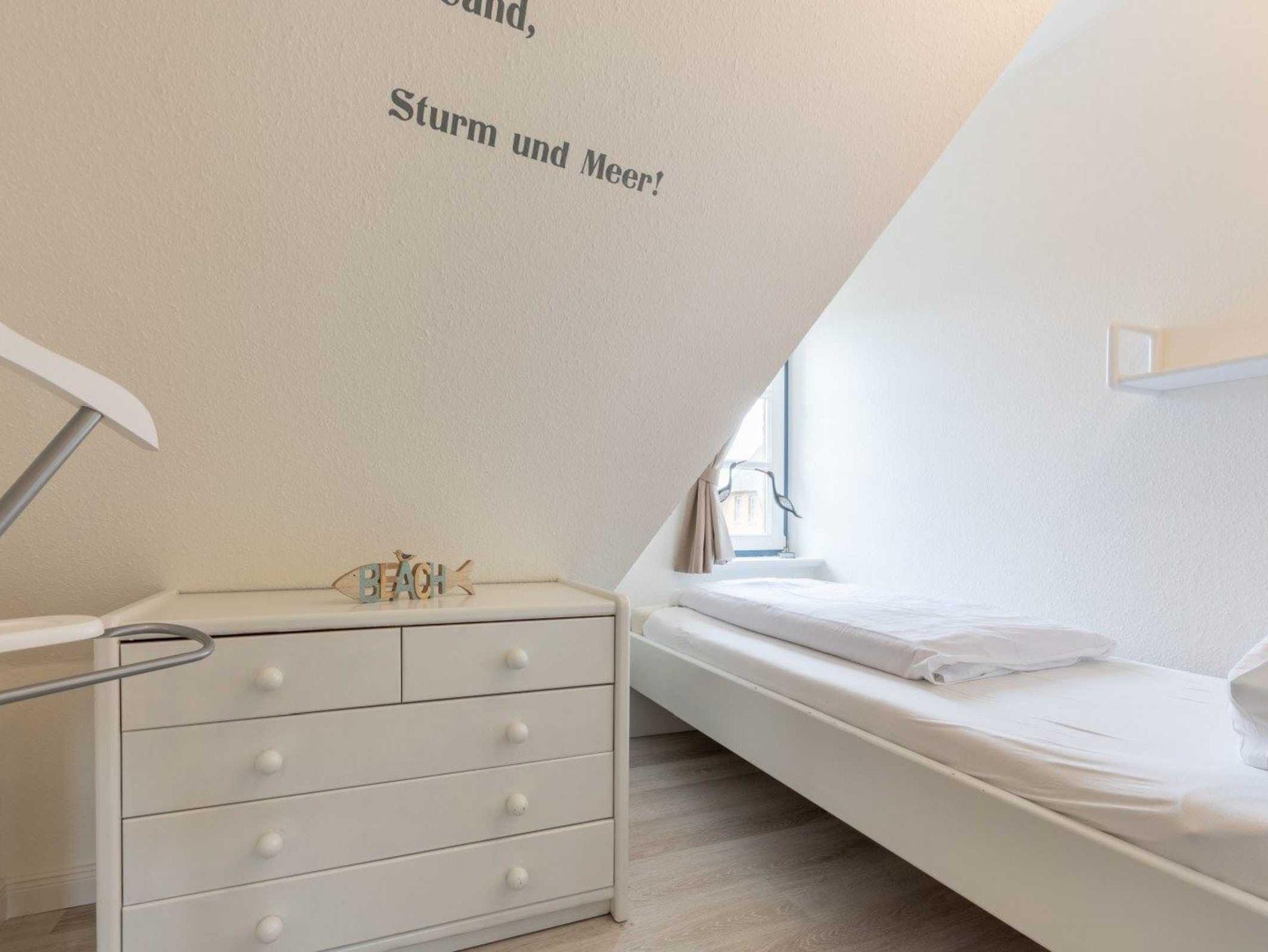 3. Schlafzimmer mit Einzelbett (90x200cm) mit Kommode.
